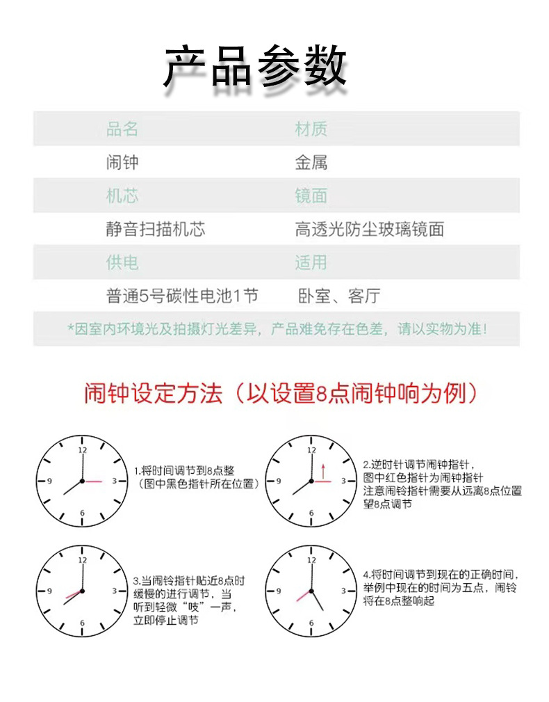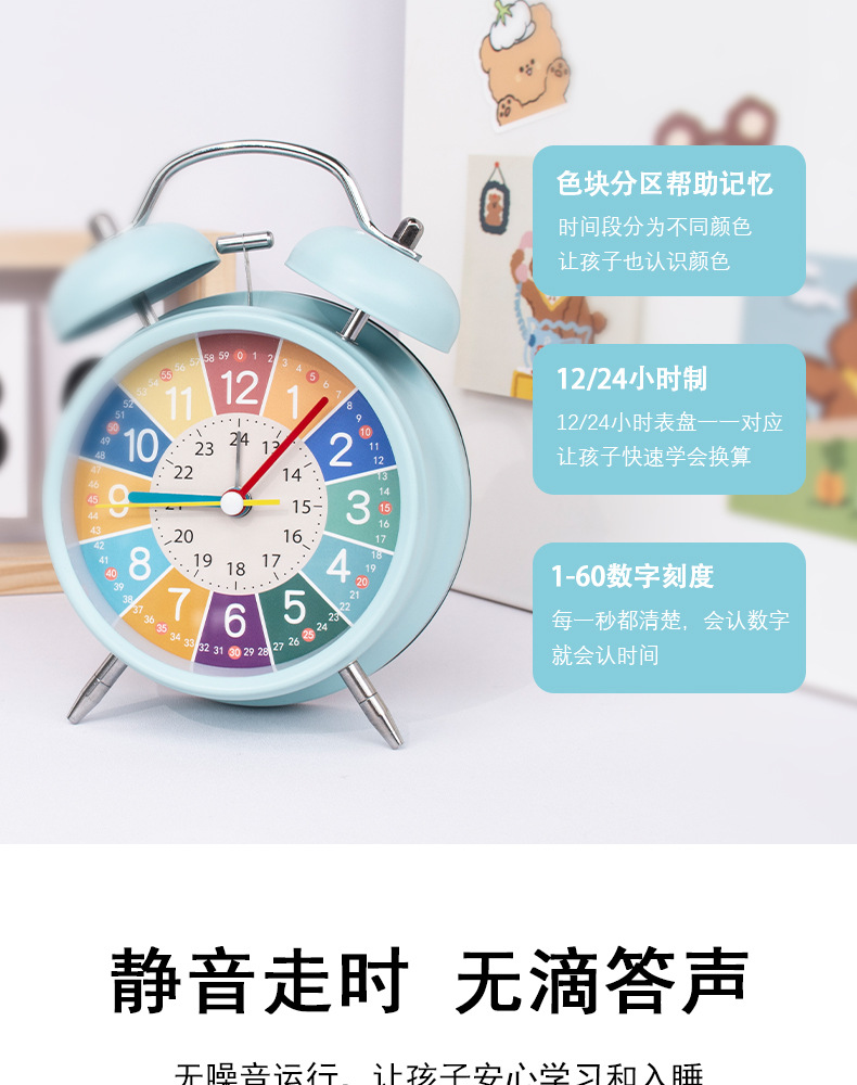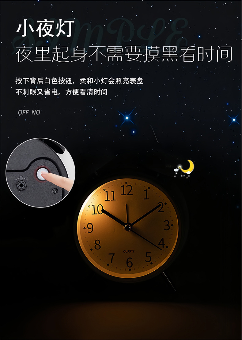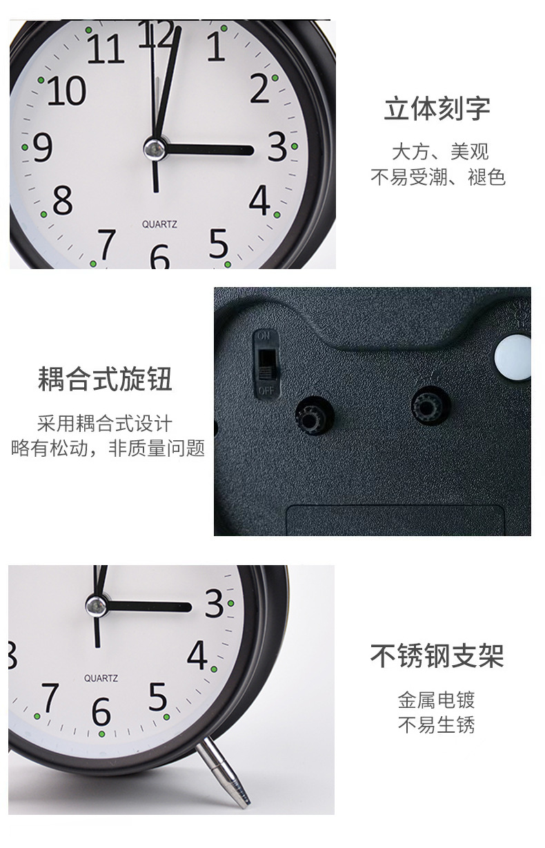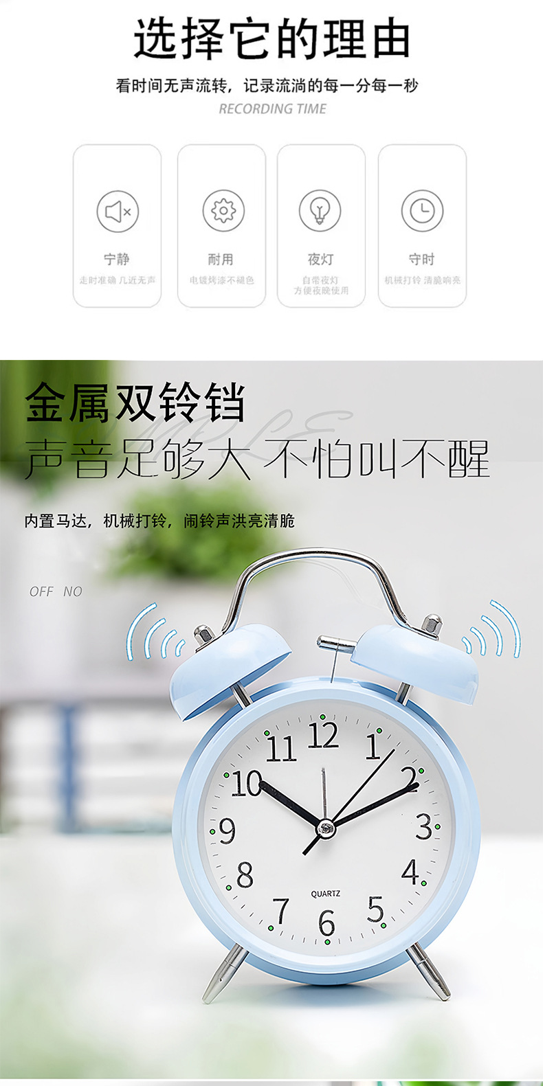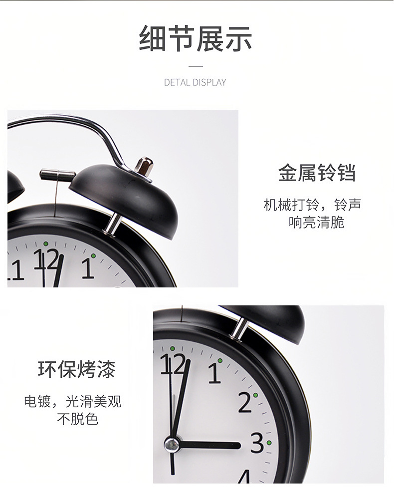 超大声复古打铃闹钟静音儿童电子闹钟简约客厅卧室学生早教石英钟