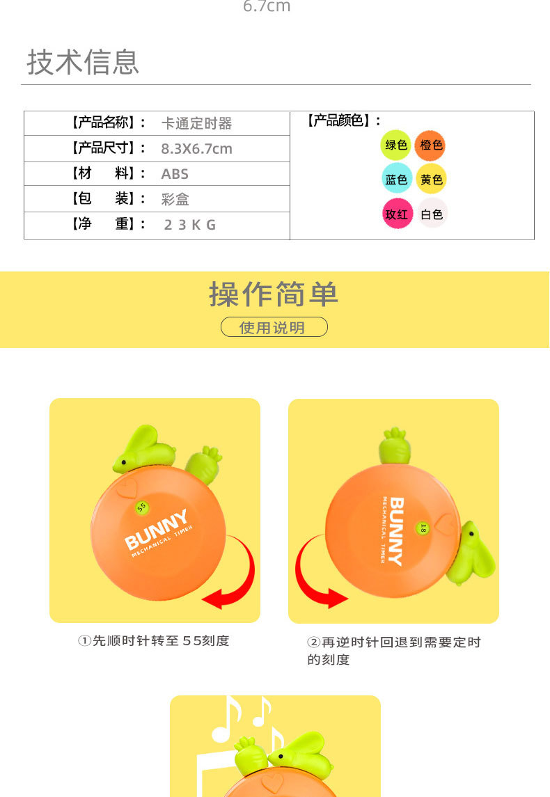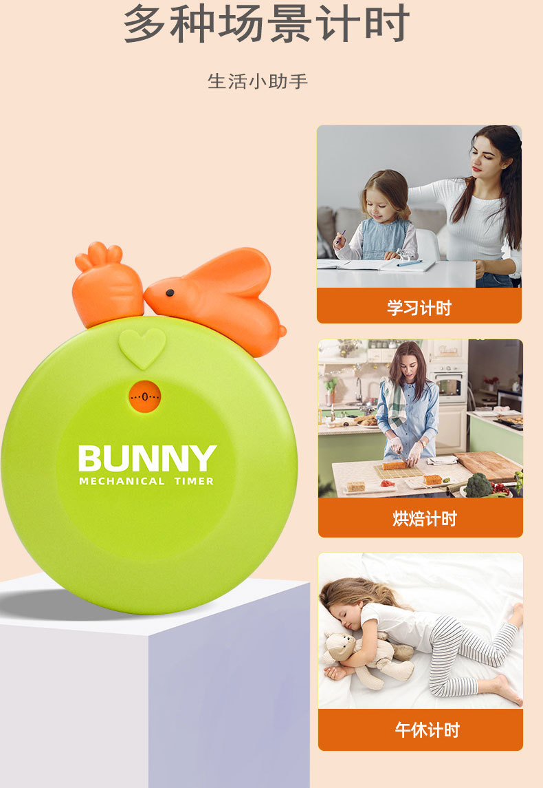 儿童卡通机械定时器兔子松鼠磁吸机械定时器学生计时器烹饪提醒器