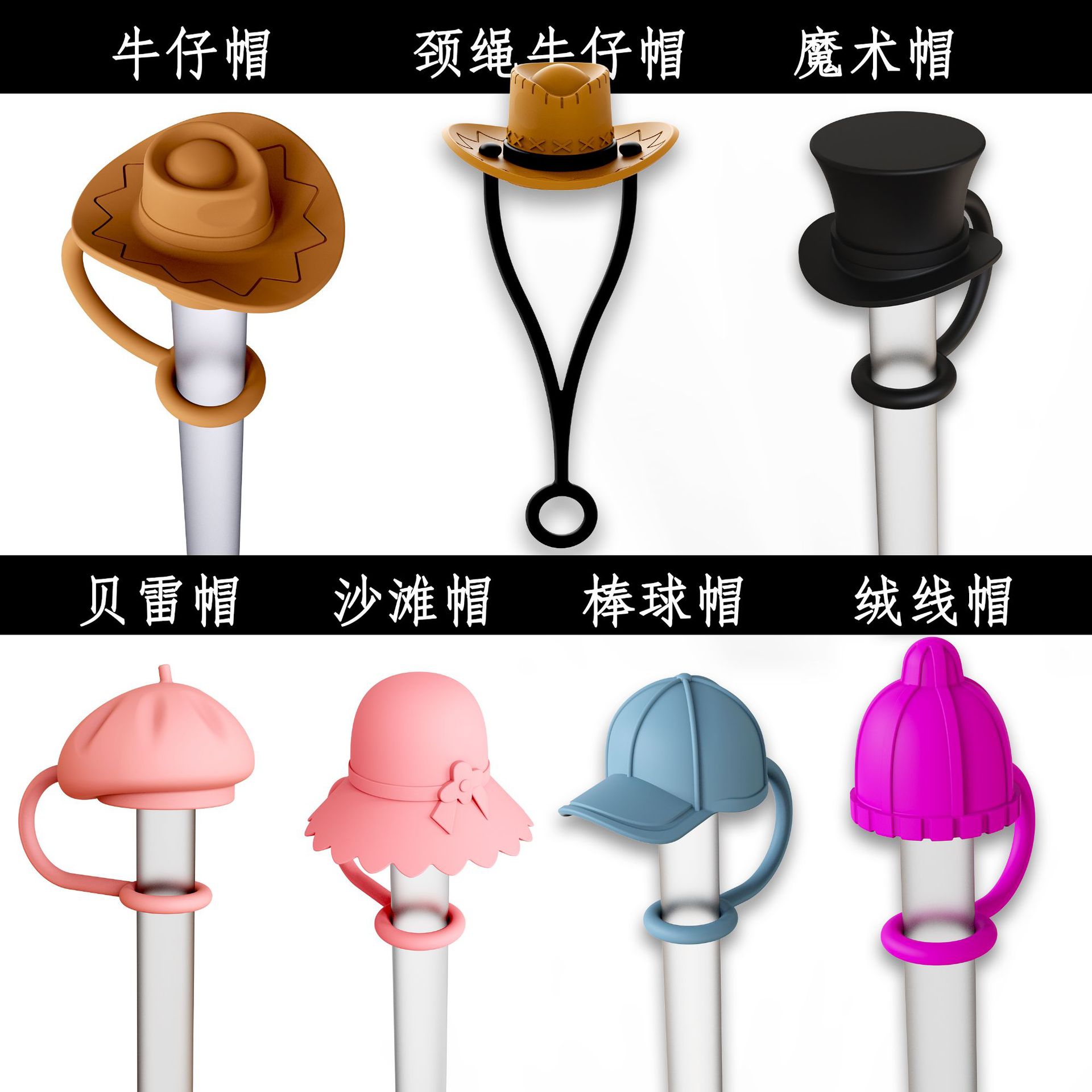 亚马逊Stanley玫瑰花、魔术帽、牛仔帽、棒球帽、沙滩帽、礼帽、贝雷帽,绒线帽等吸管帽,兼容6-10MM,防尘吸管塞。