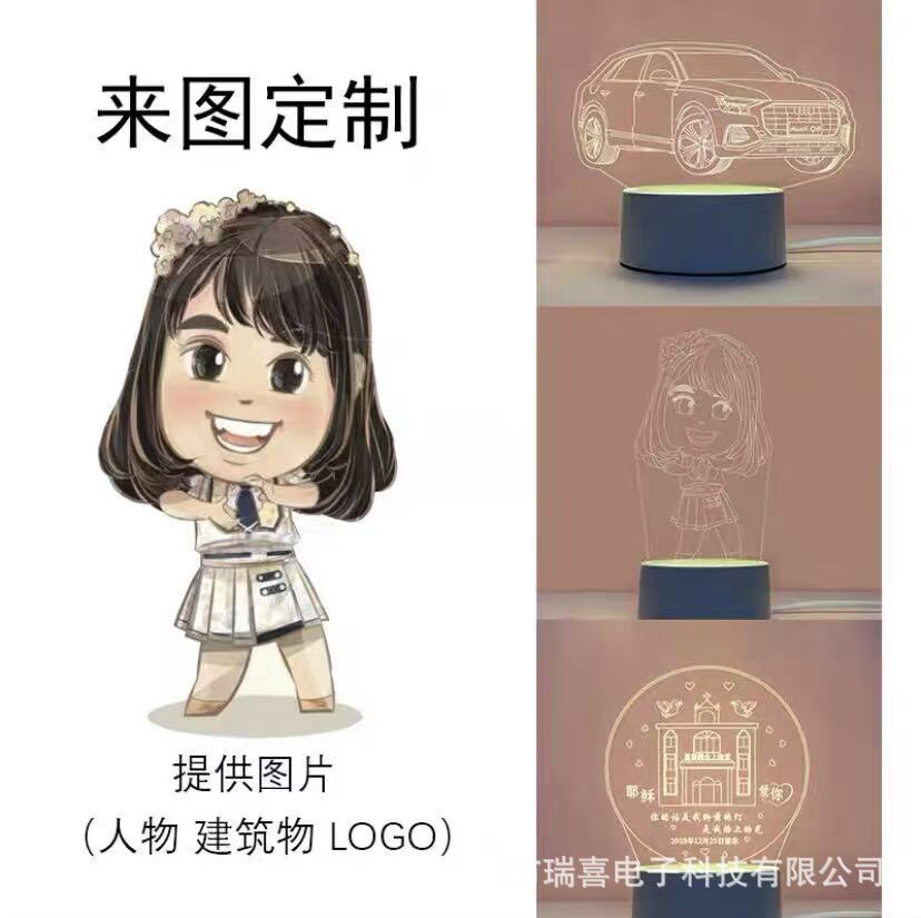 创意3D小夜灯批发节日学生毕业礼品公司儿童卡通LOGO生日礼物台灯