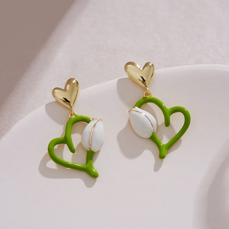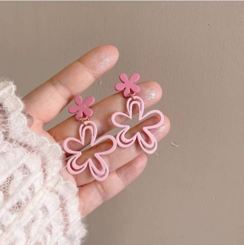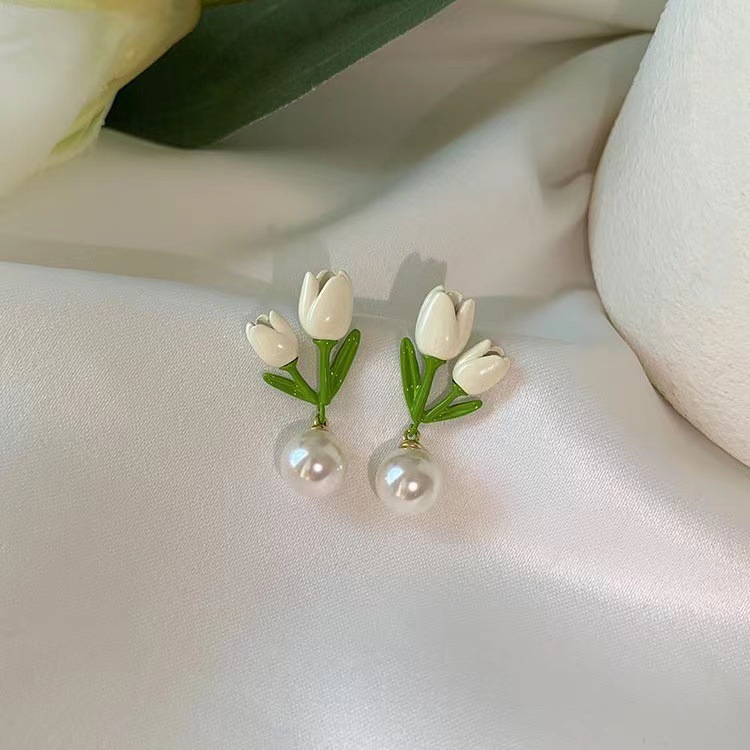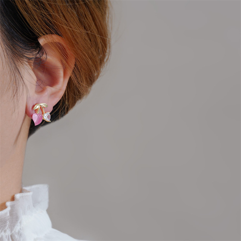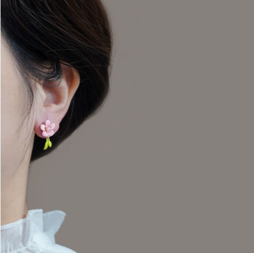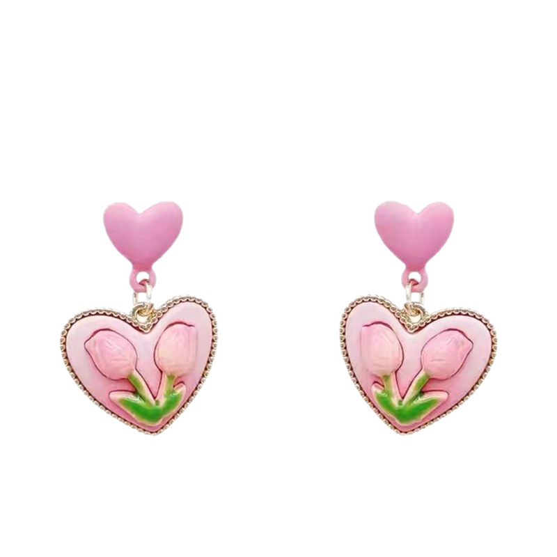 设计感粉色花朵S925银针耳钉珐琅釉郁金香耳环仙气精致女耳饰