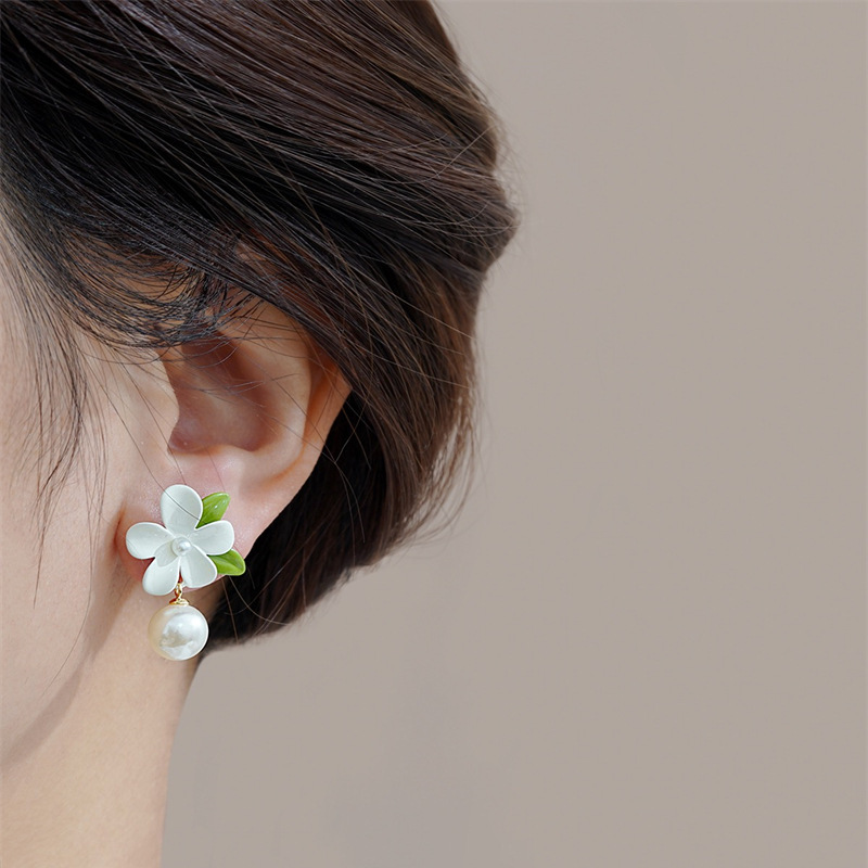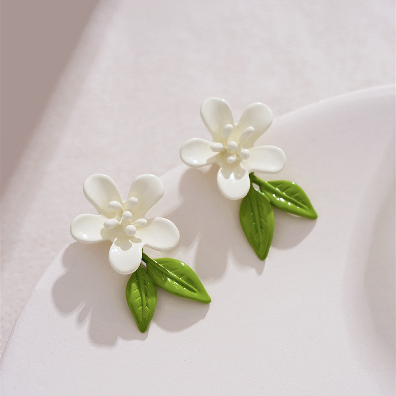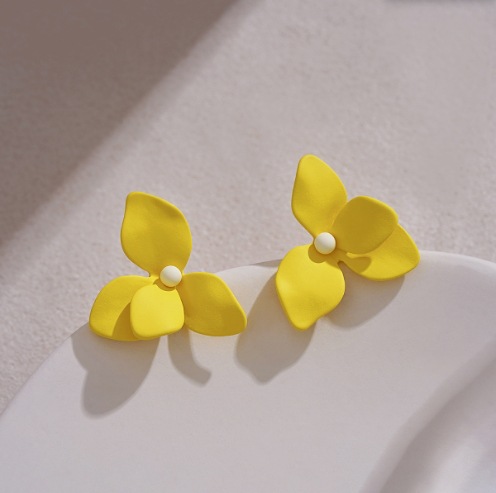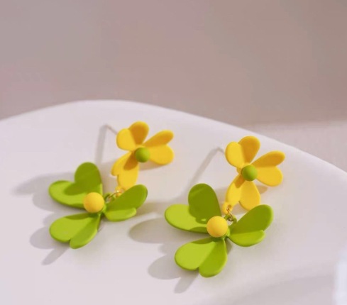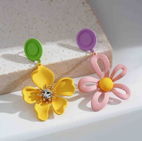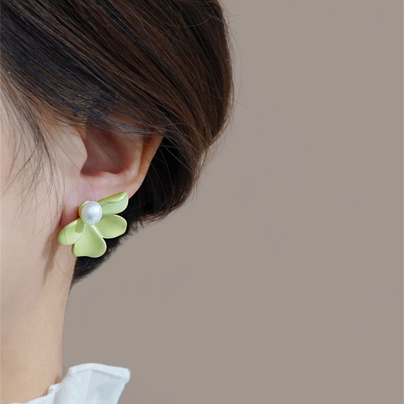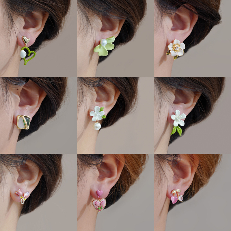 设计感粉色花朵S925银针耳钉珐琅釉郁金香耳环仙气精致女耳饰