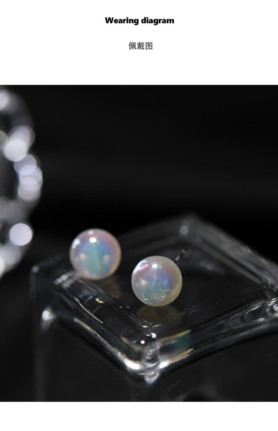 小众感耳环星空幻彩人鱼姬珍珠耳钉梦幻轻奢甜美百搭正圆大