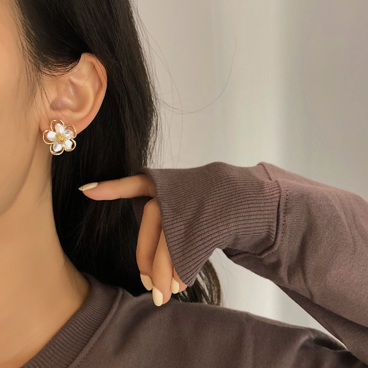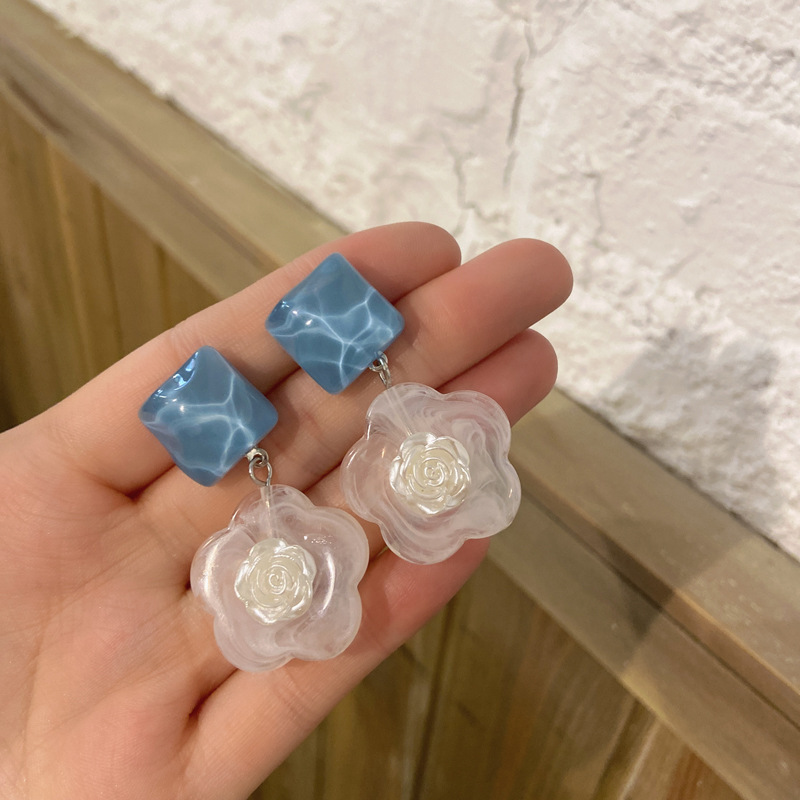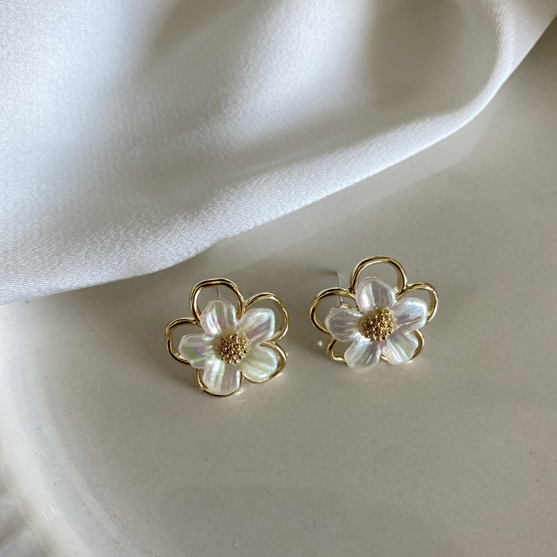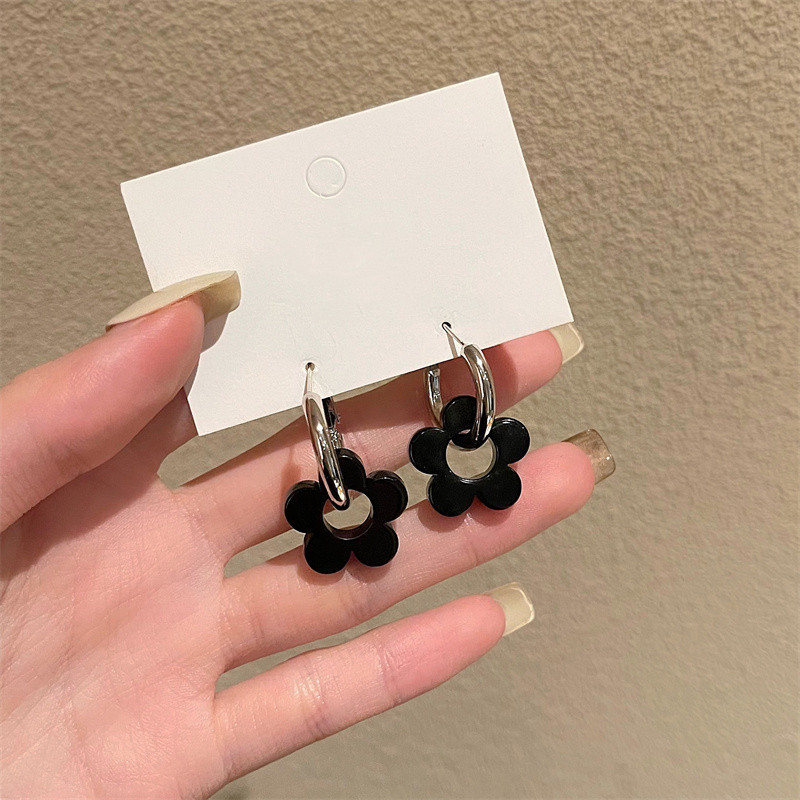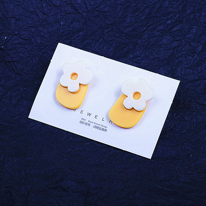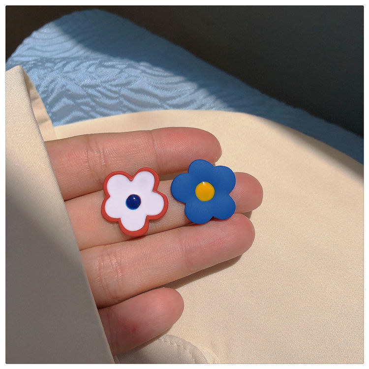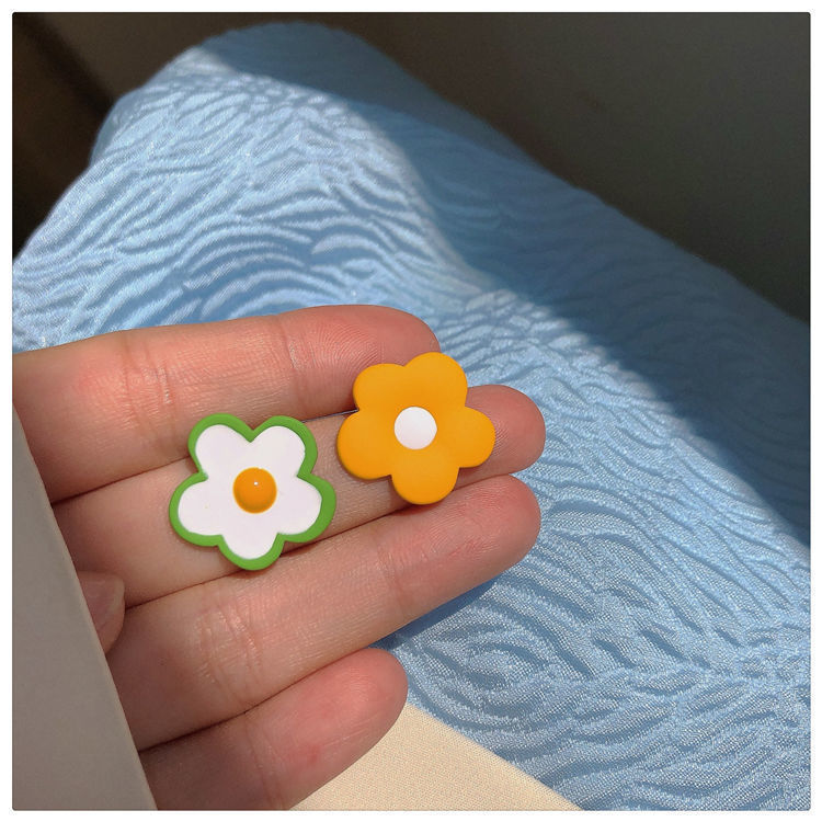 s925彩色花朵耳钉2025年夏季新款撞色耳环女小清新简约百搭耳饰品