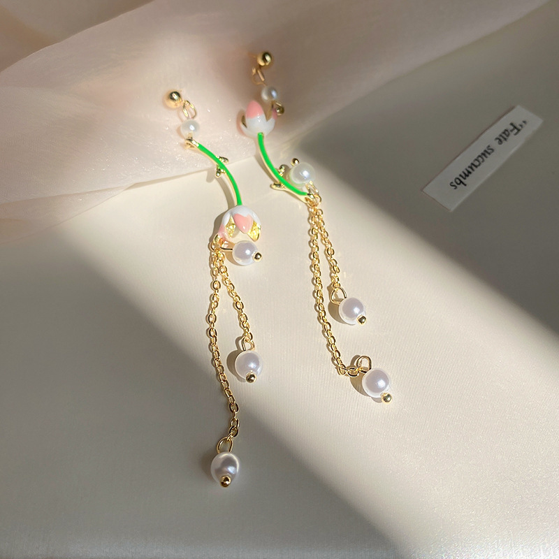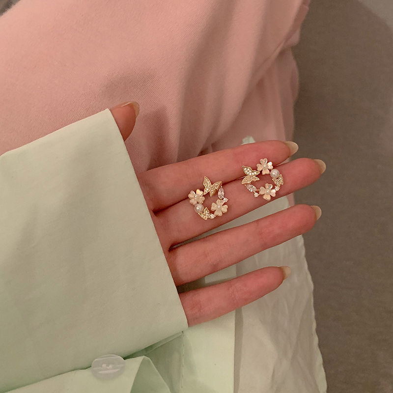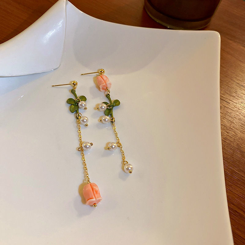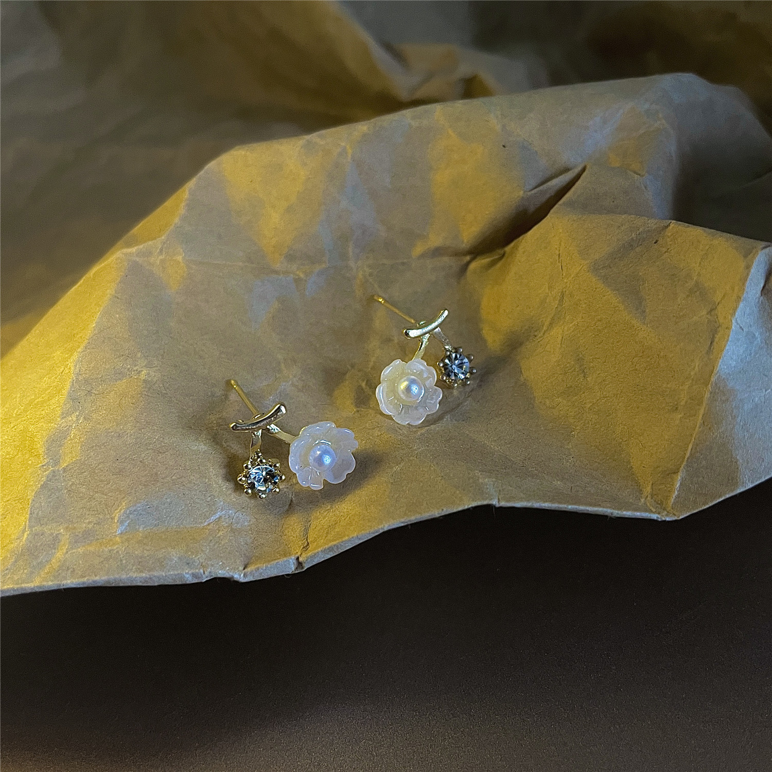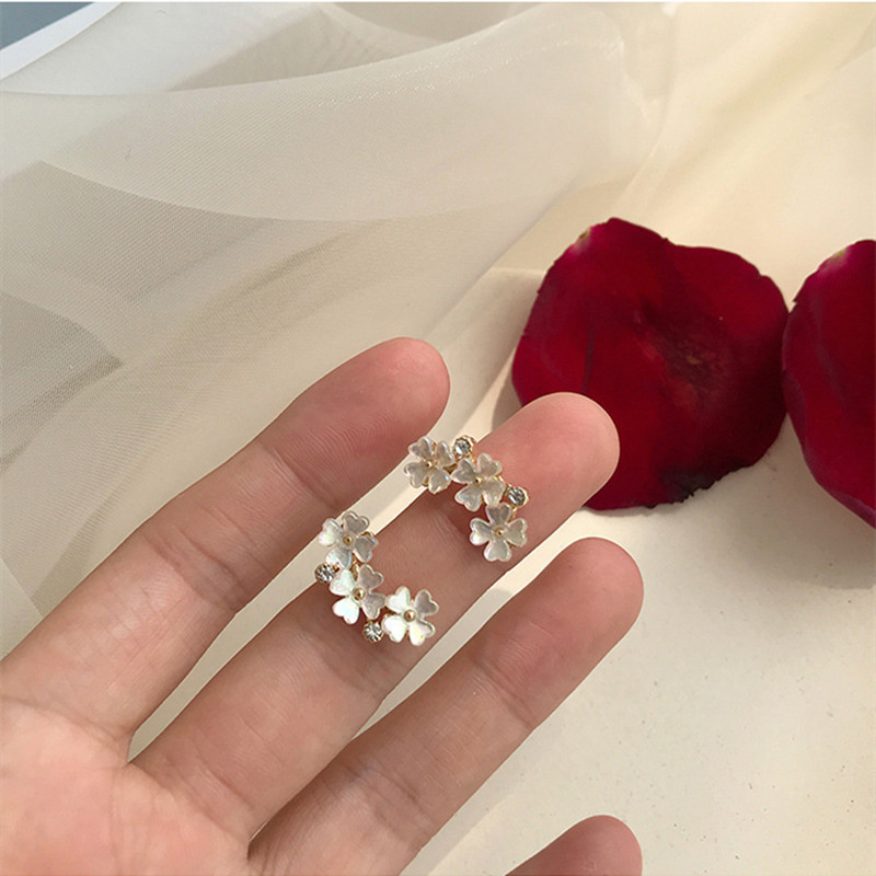 s925彩色花朵耳钉2025年夏季新款撞色耳环女小清新简约百搭耳饰品
