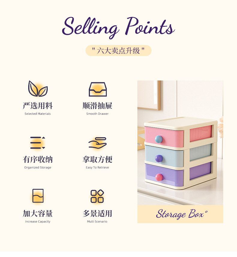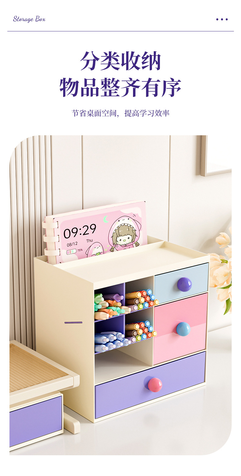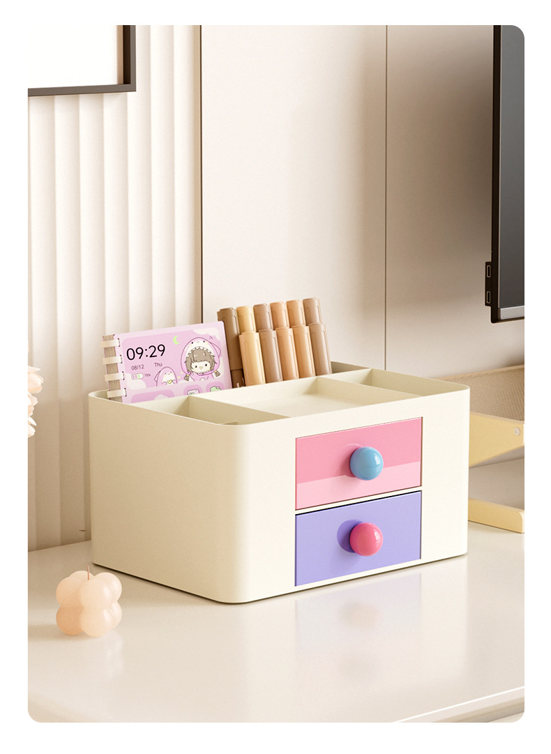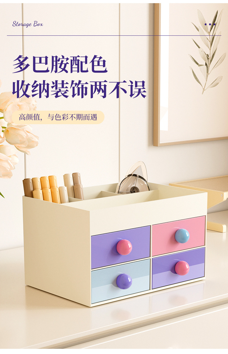 桌面抽屉式收纳盒学生课桌文具笔筒大容量可叠加置物整理巴黎浪漫