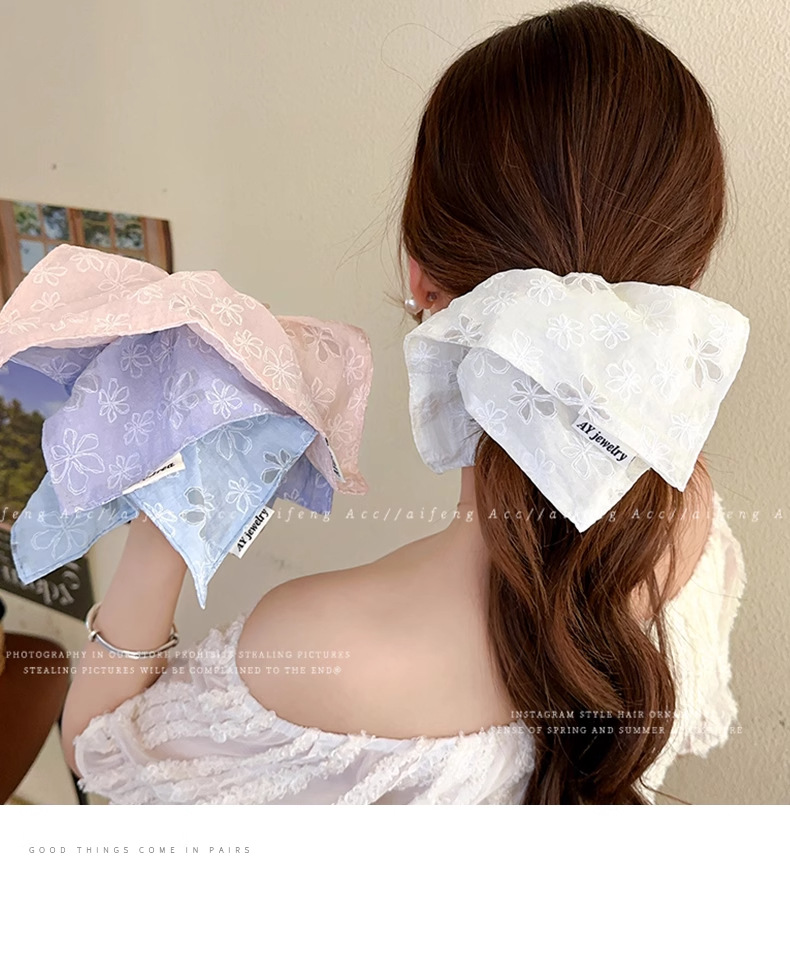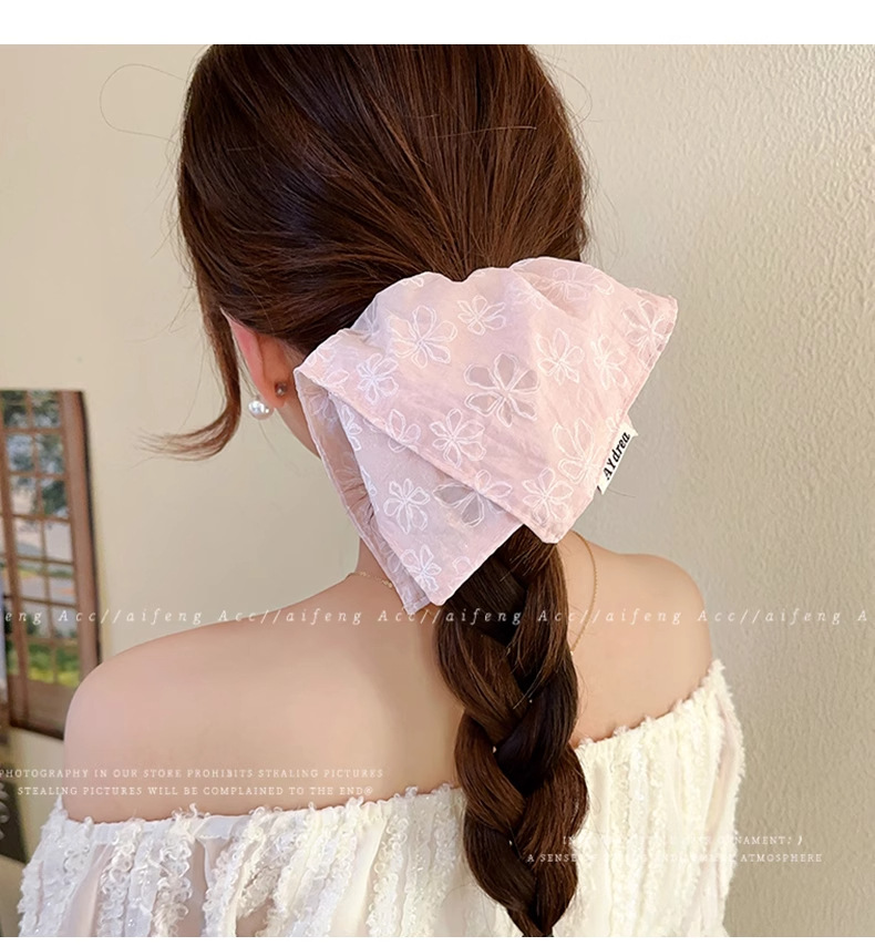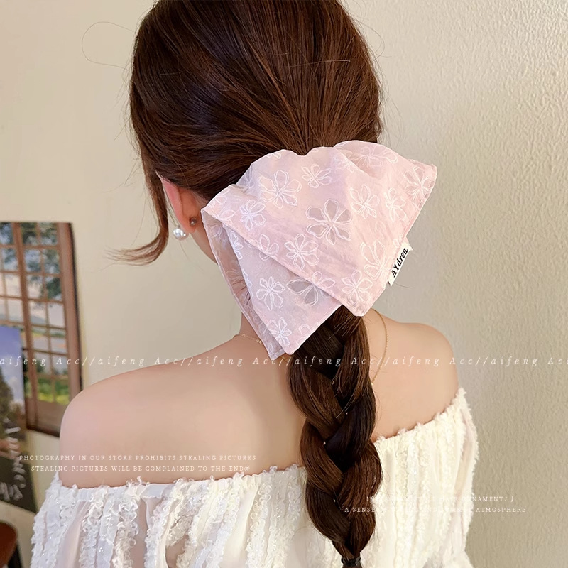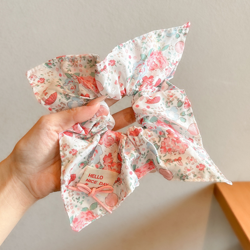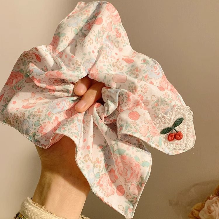 粉色花朵方巾发圈女感森系扎头发大肠头绳方形低马尾发绳皮筋