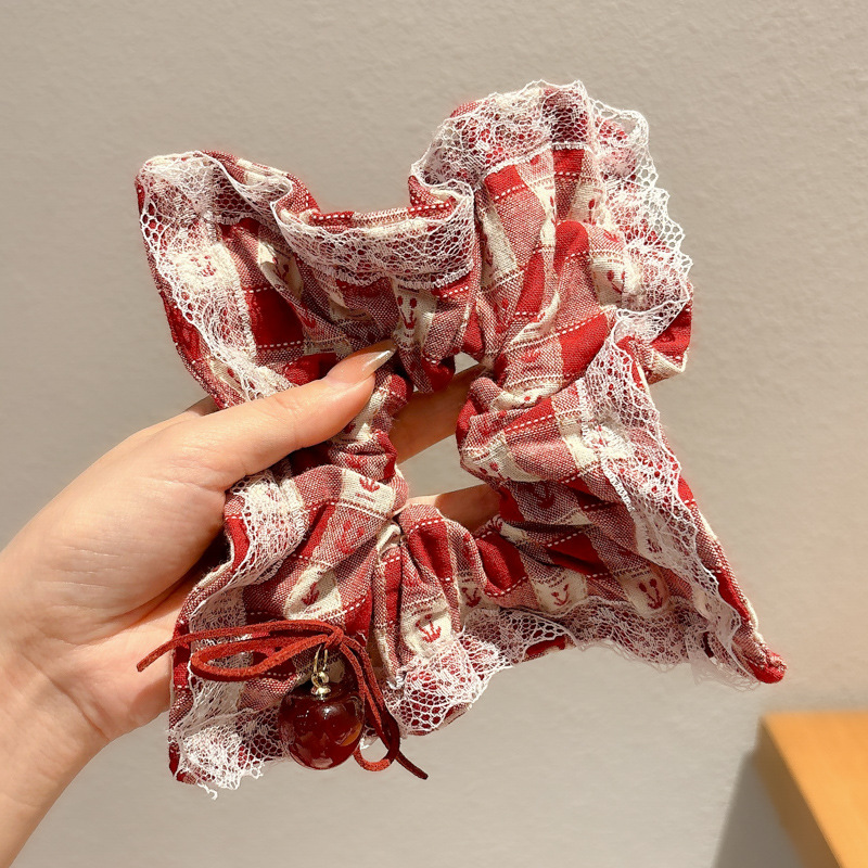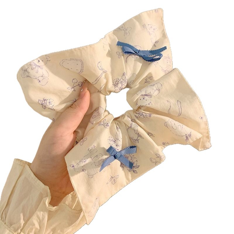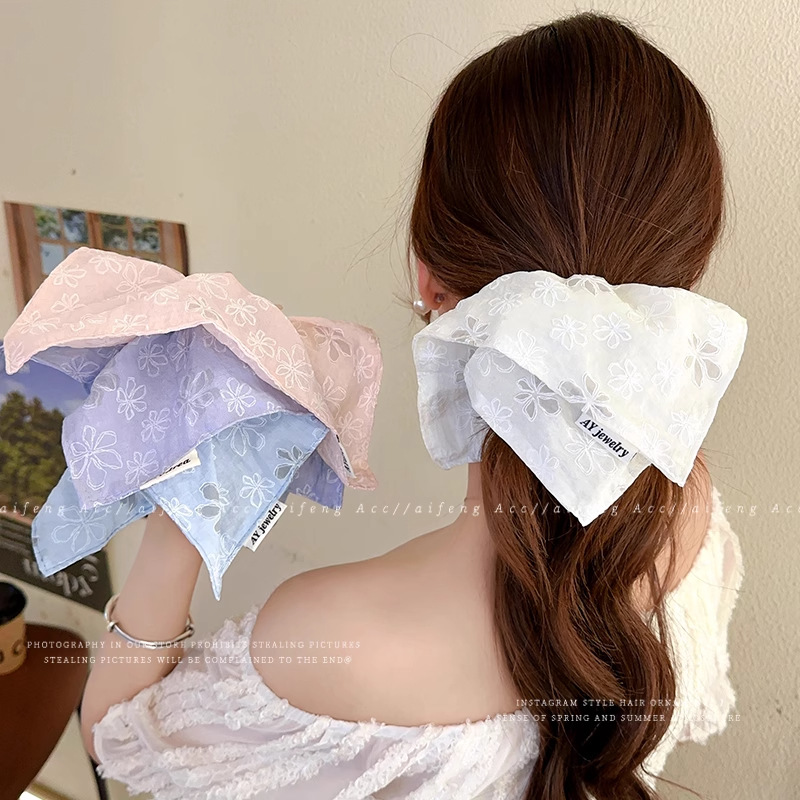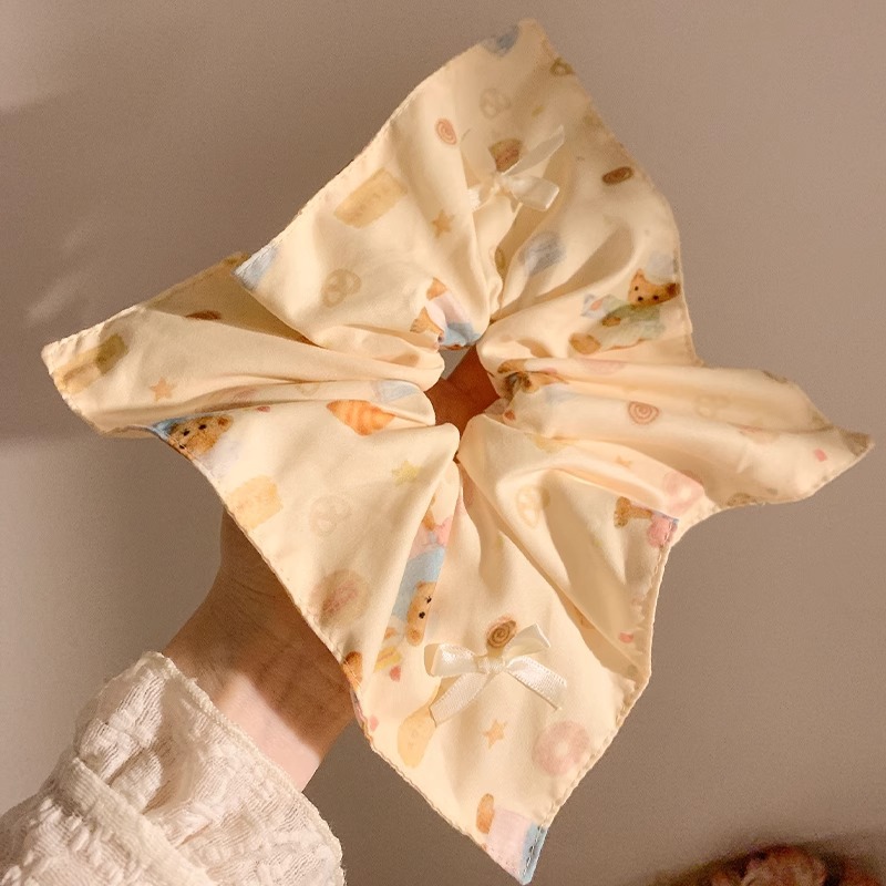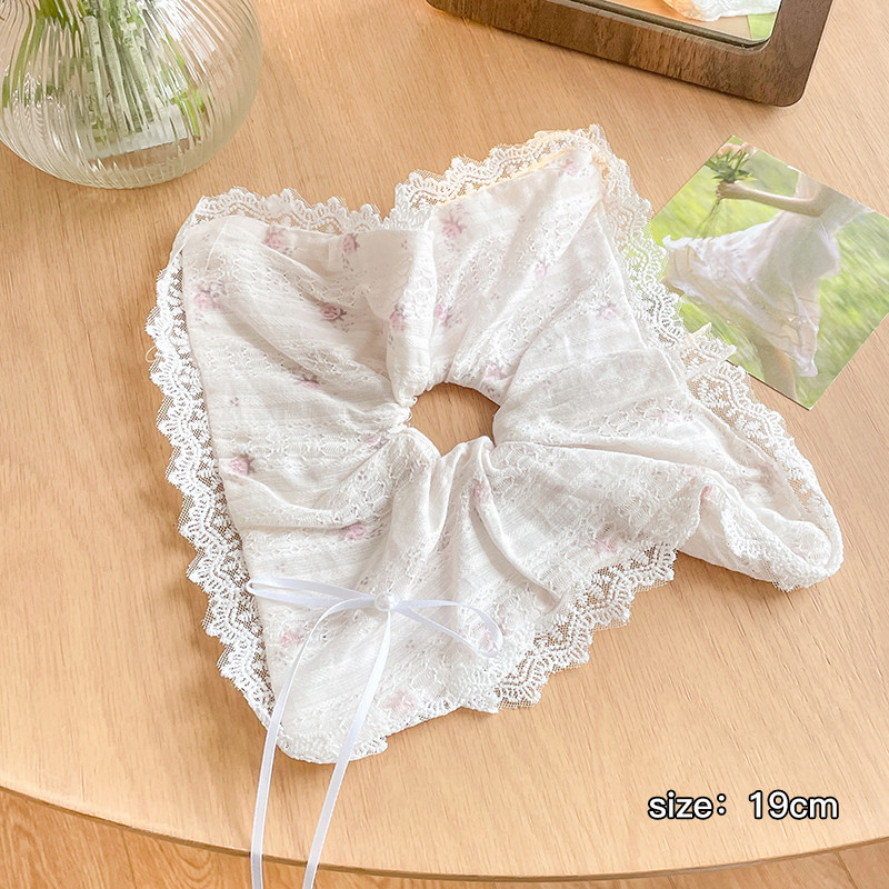 粉色花朵方巾发圈女感森系扎头发大肠头绳方形低马尾发绳皮筋