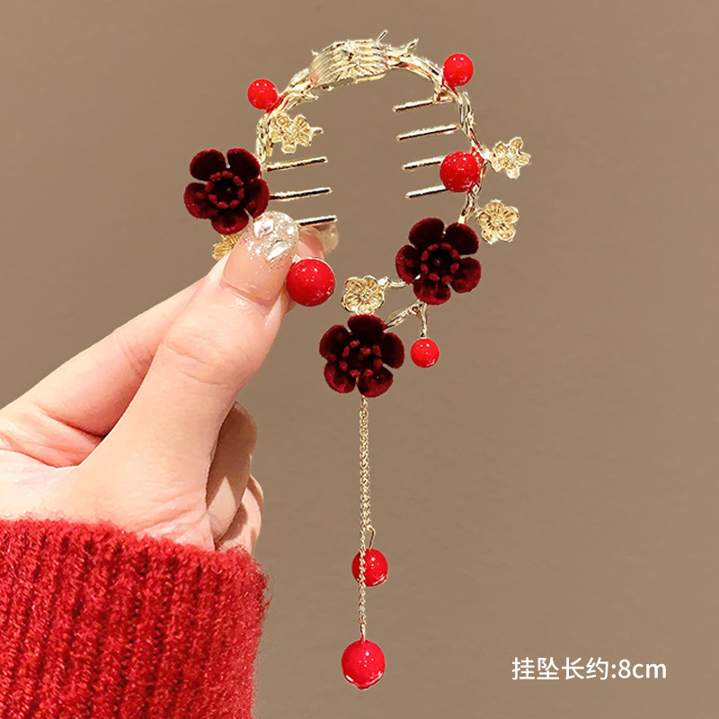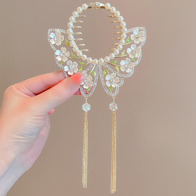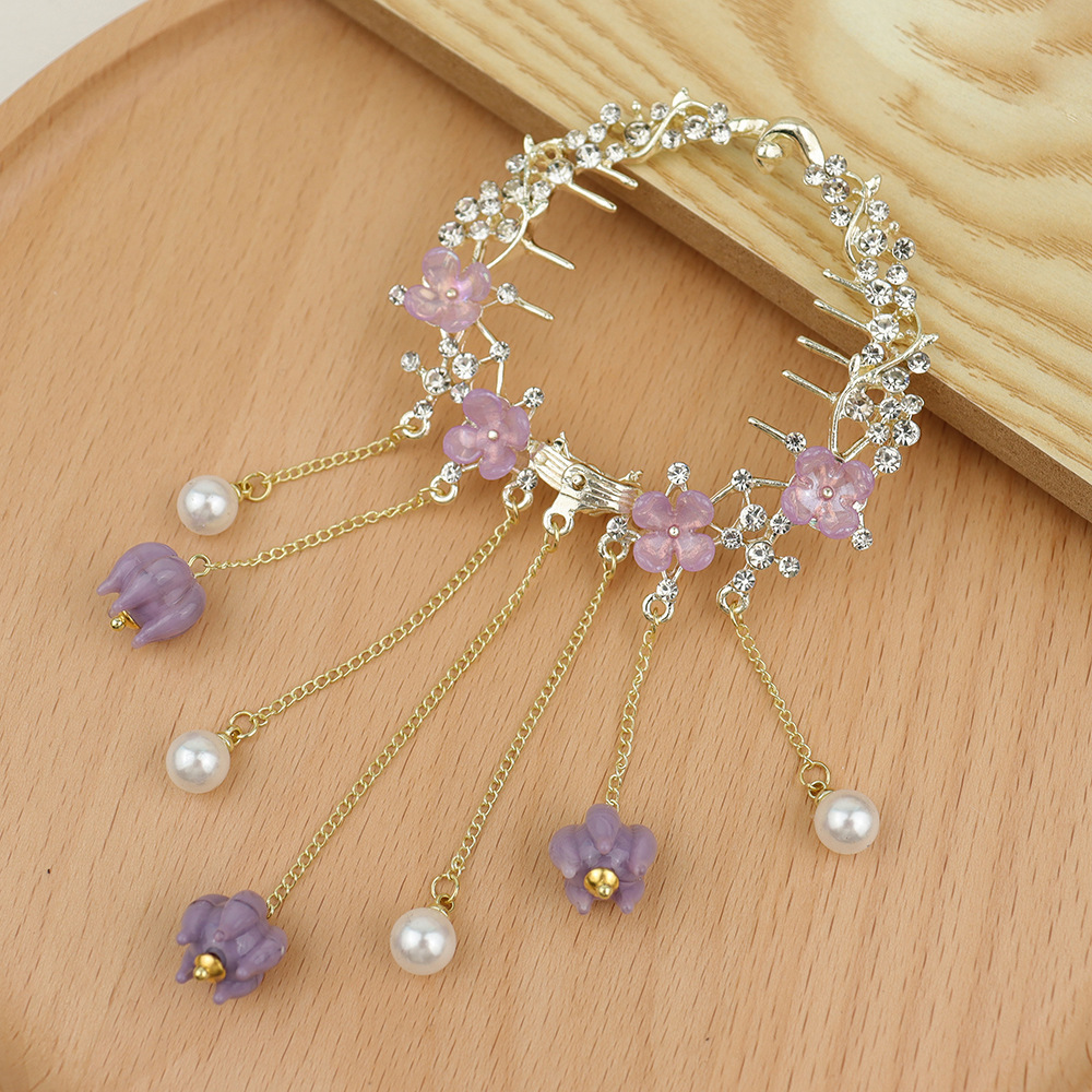 古风铃兰花流苏发夹感丸子头固定抓夹夏季花朵顶夹气质盘发抓