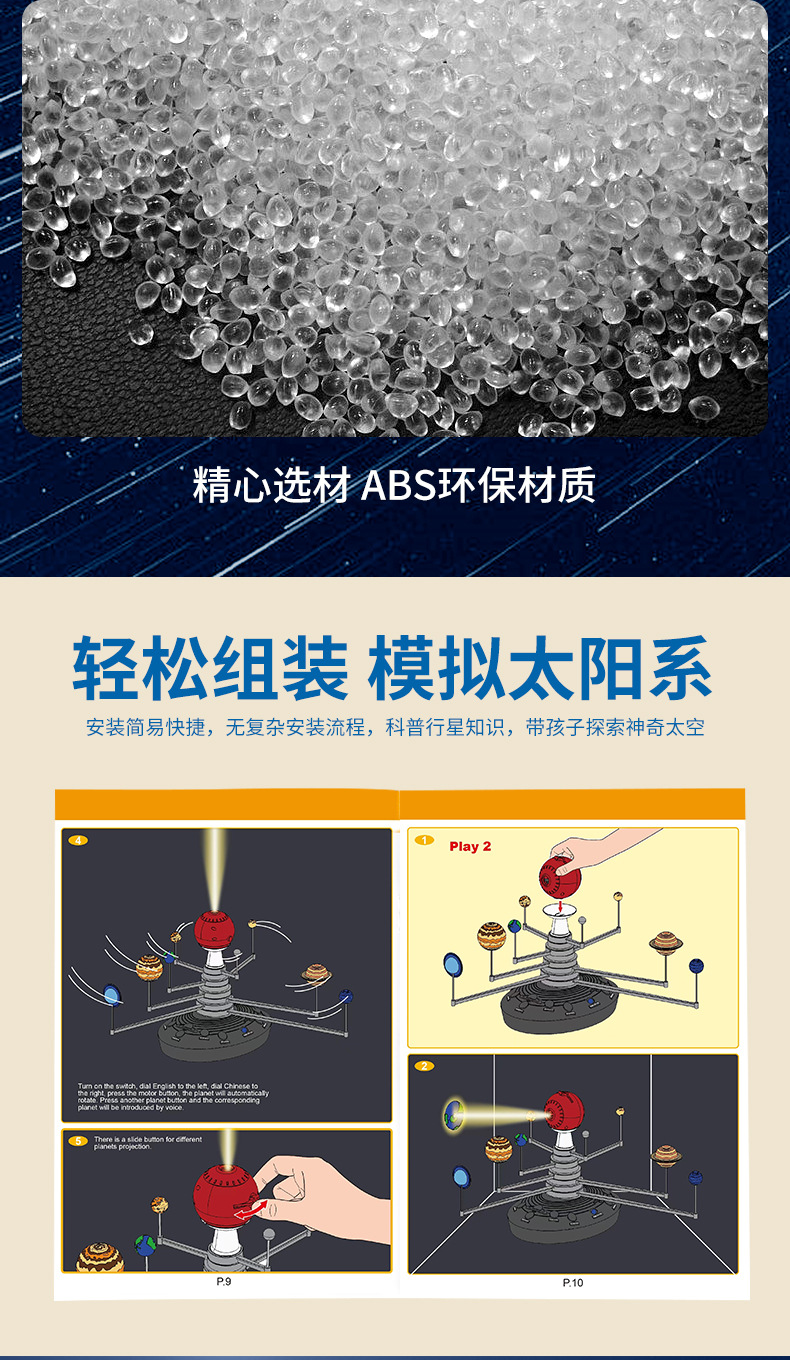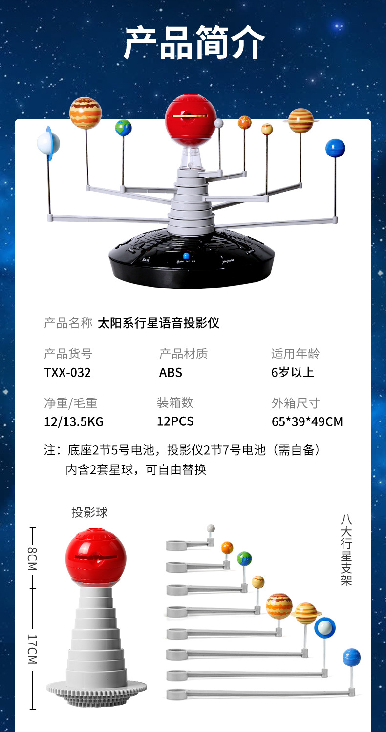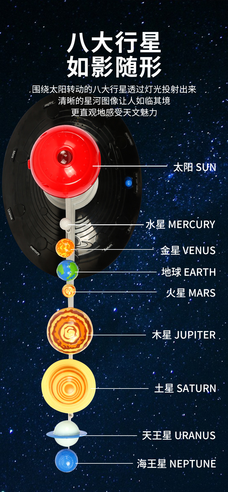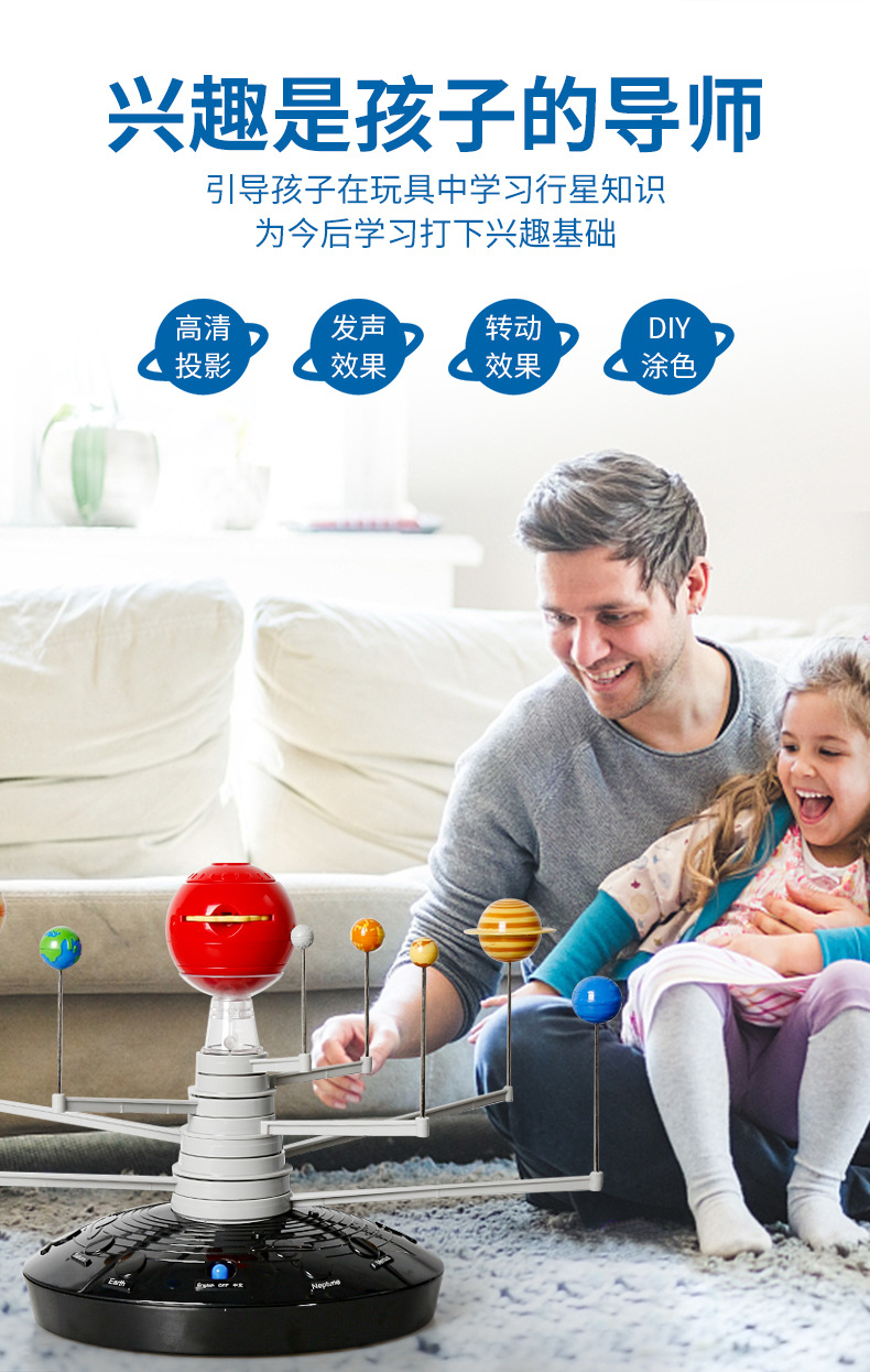 太阳系八大行星模型3D投影电动玩具儿童早教益智学习科学diy教具