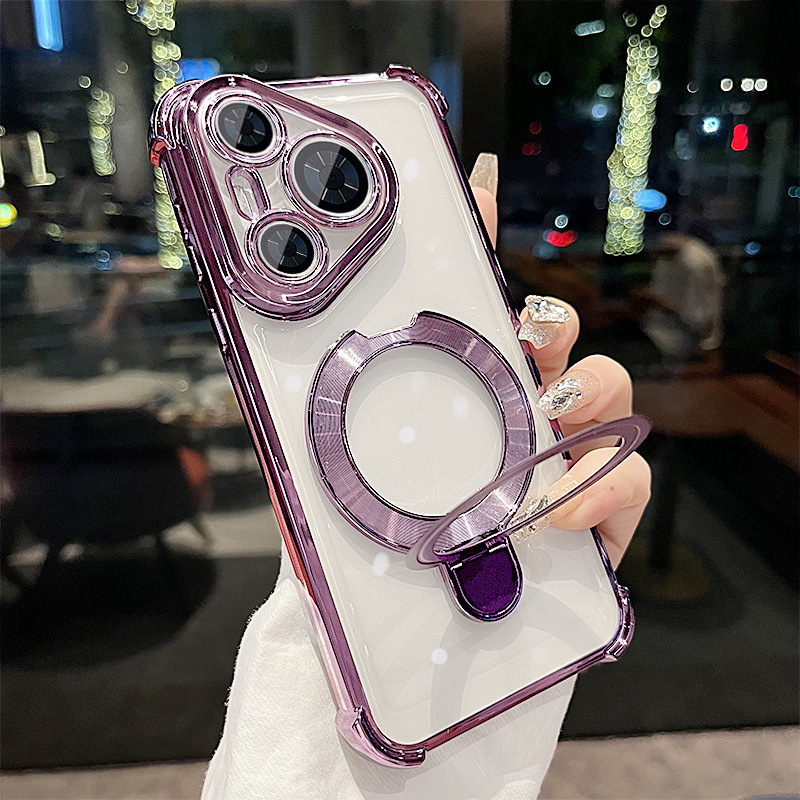 适用华为mate70Pro气囊防摔手机壳磁吸支架nova14新款60P80透明套