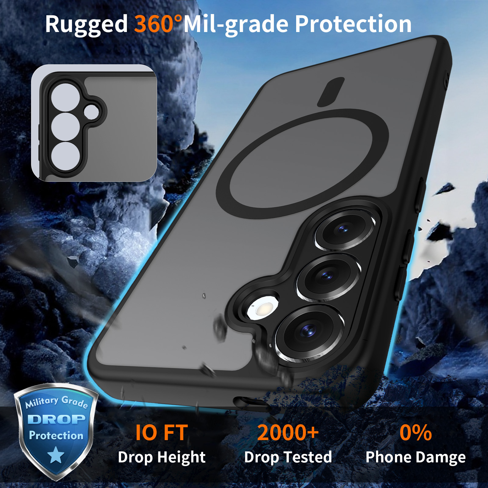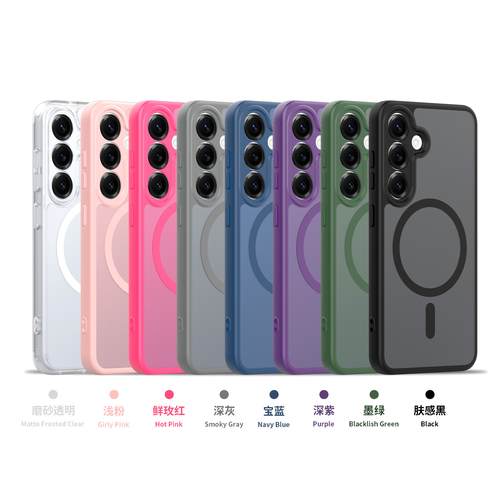 跨境新款三星s25 edge摄像头精孔二合一手机壳黑色磁吸半透保护壳