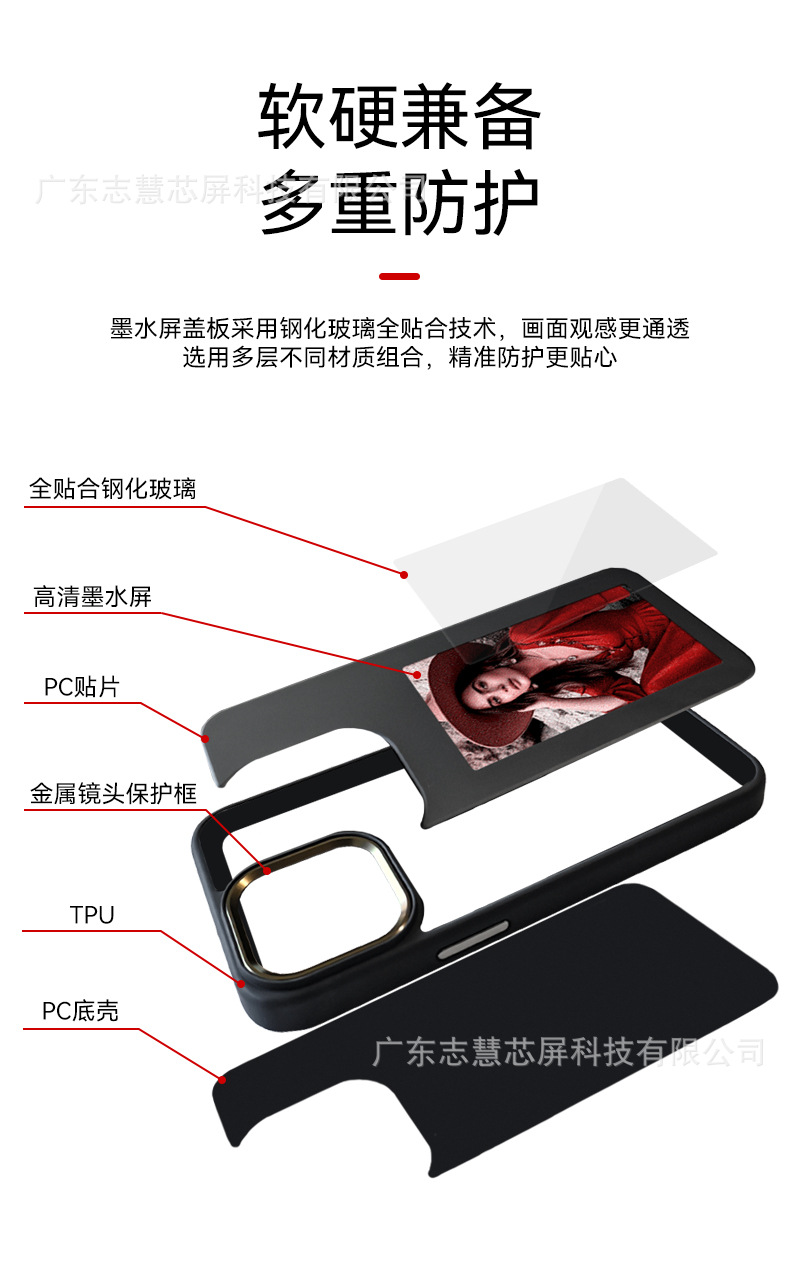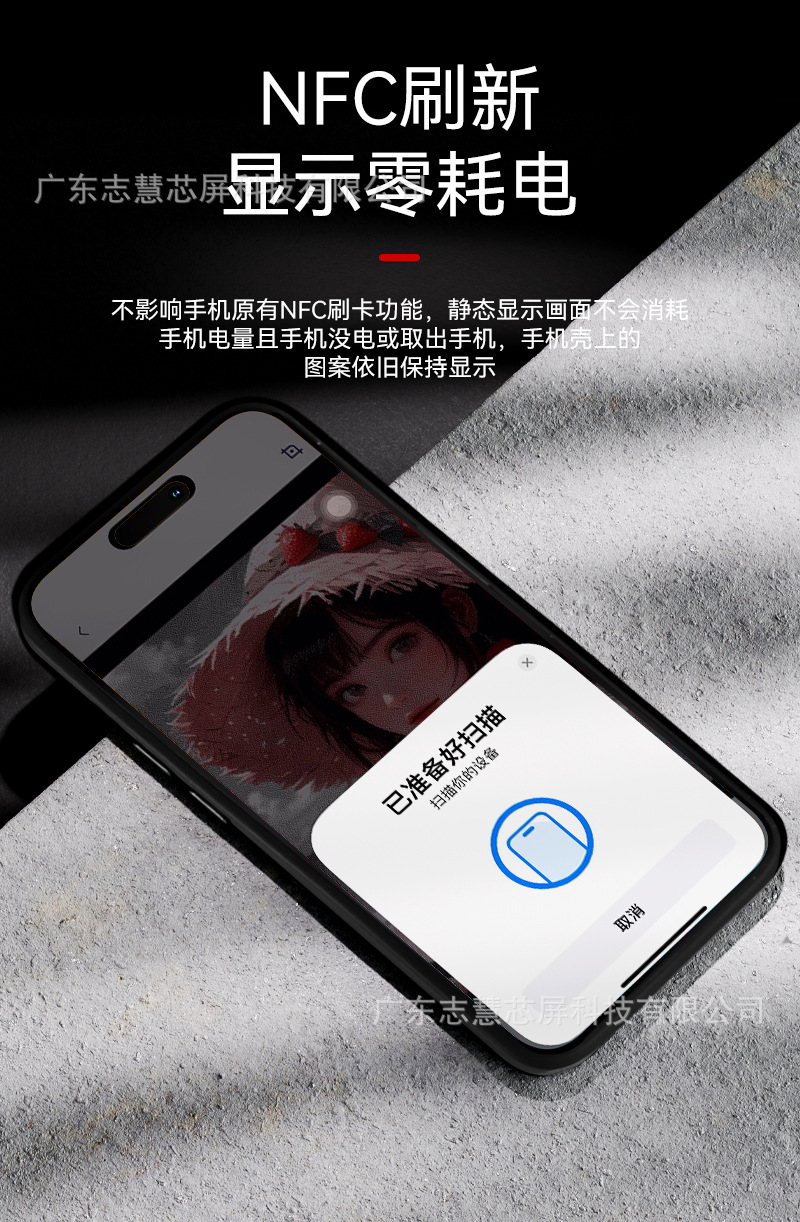 高清DIY投影墨水屏彩色屏手机壳NFC无源手机保护壳适用于iphone16