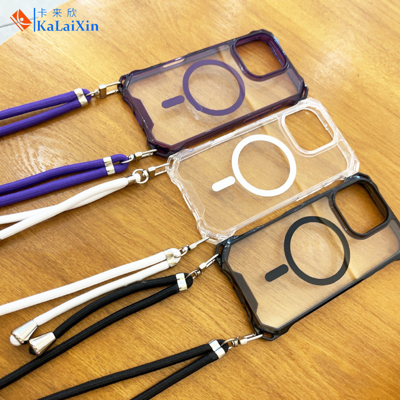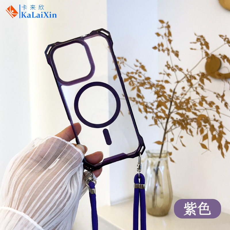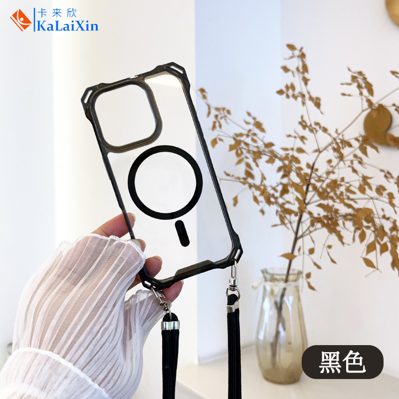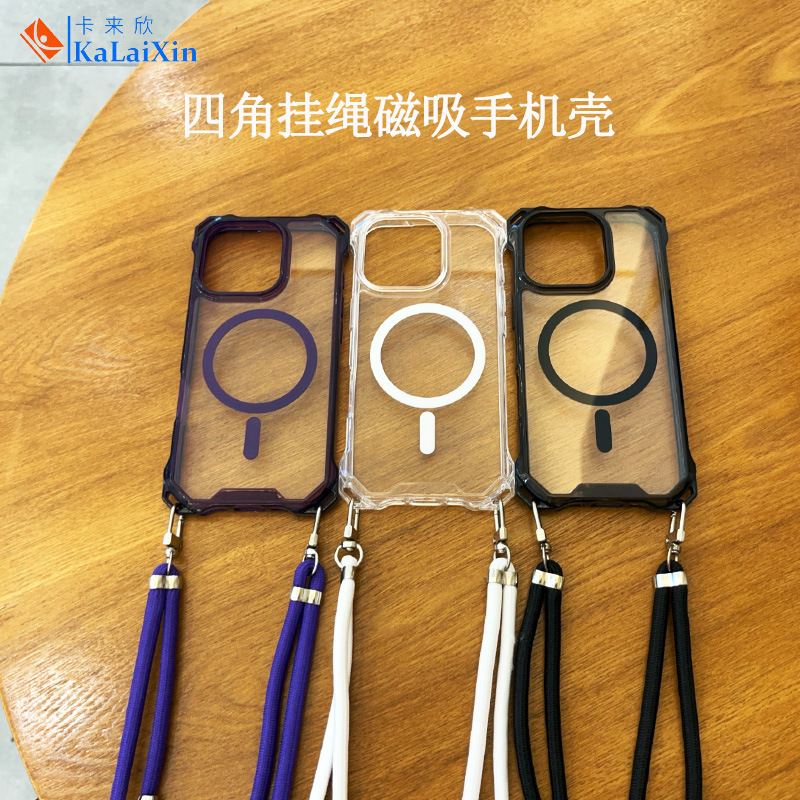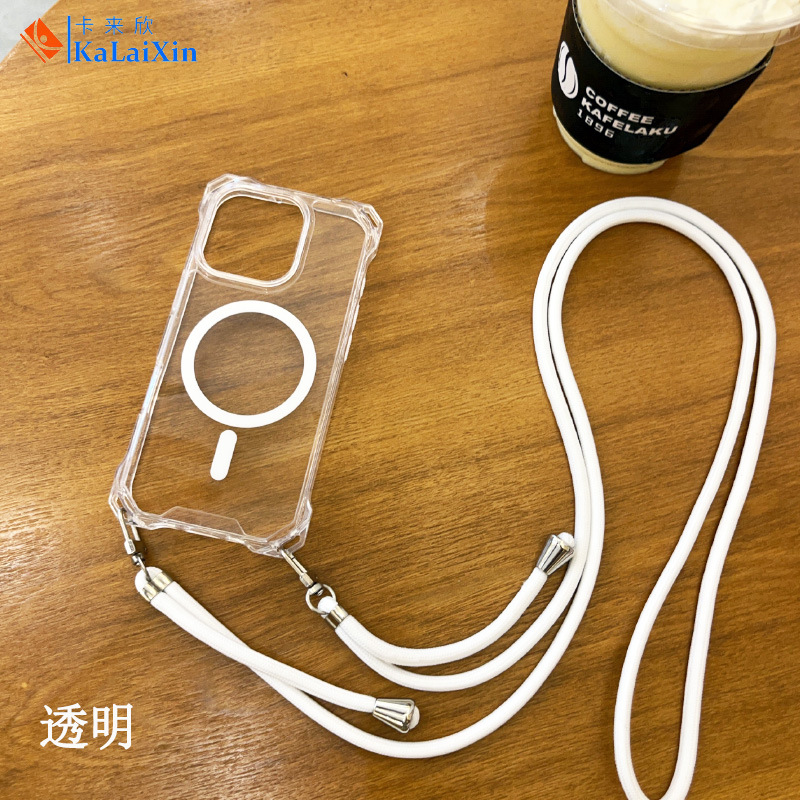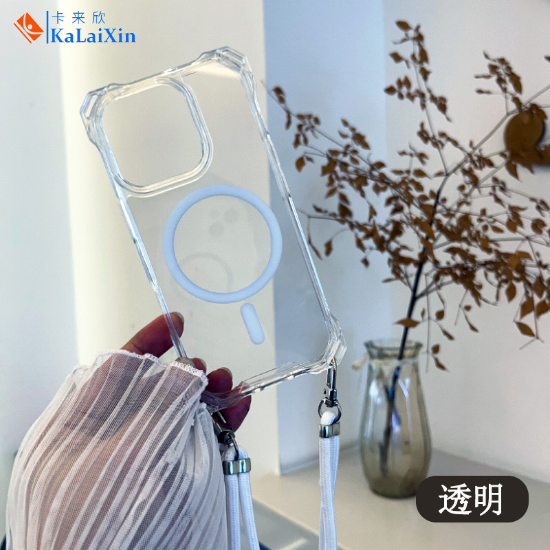 跨境四角挂绳无线充电磁吸防摔手机壳二合一适用苹果16透明壳S25