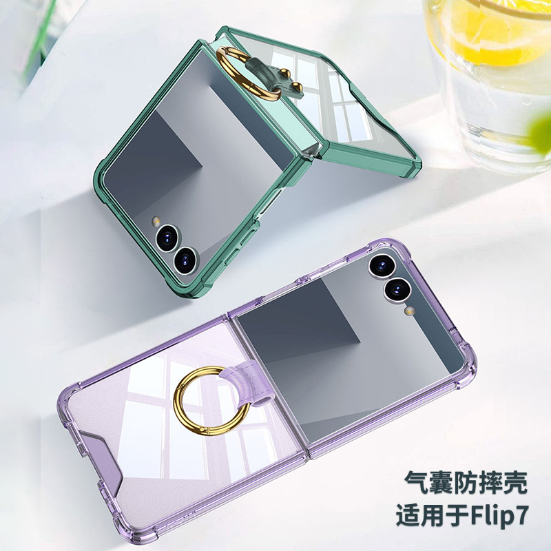 新款适用三星Flip7手机壳透明气囊指环zflip7简约折叠手机保护套