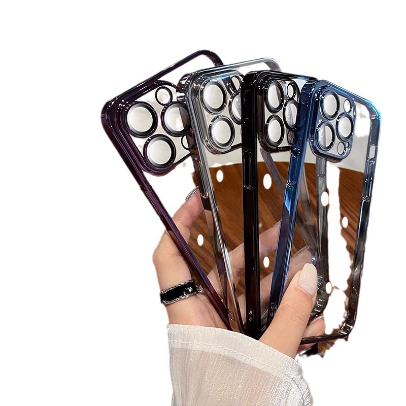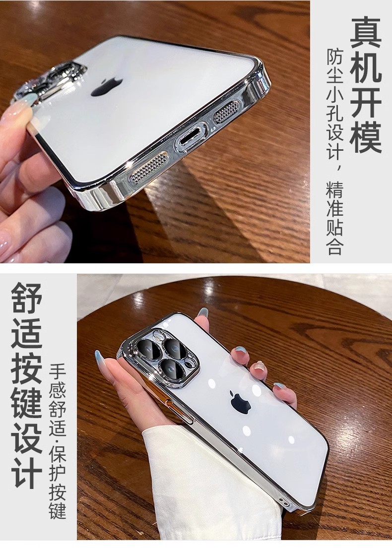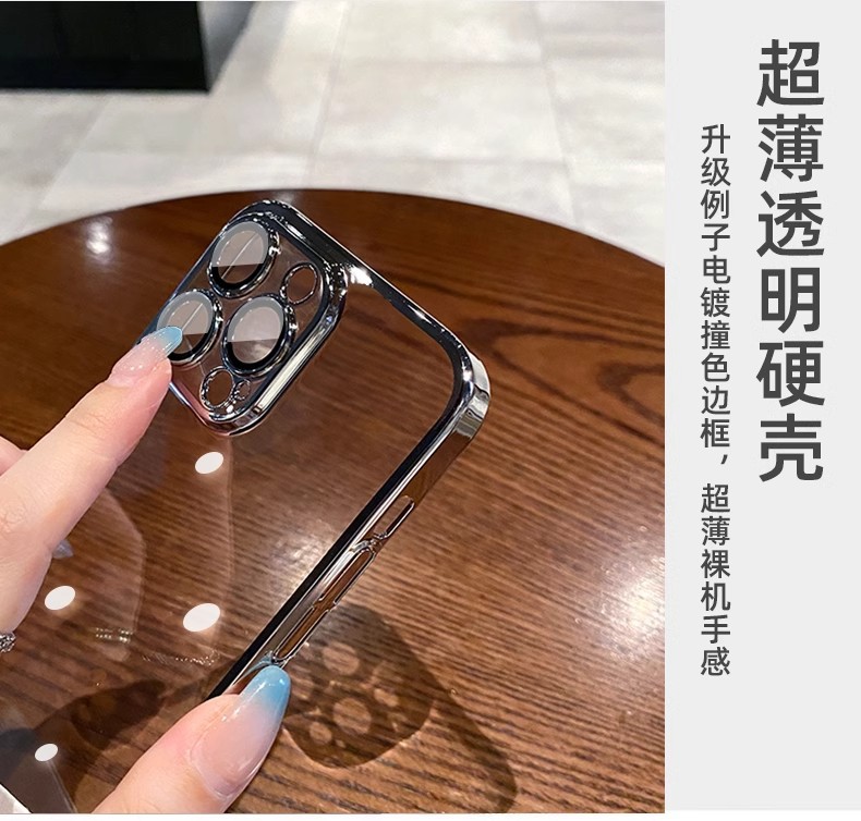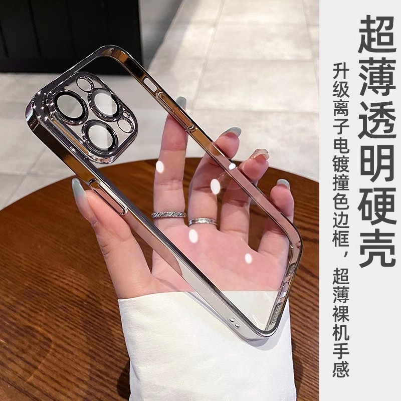 适用iPhone16ProMAX手机壳电镀硬壳苹果15透明全包14自带镜头膜13