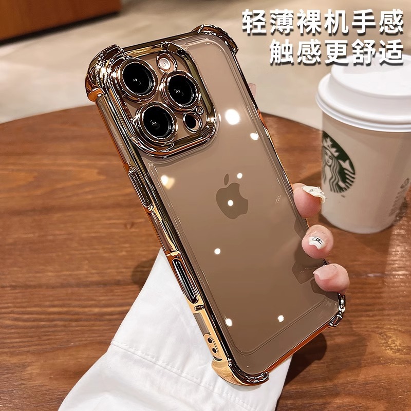 适用iPhone16四角气囊防摔手机壳苹果15PROMAX透明镜头膜16E护套X