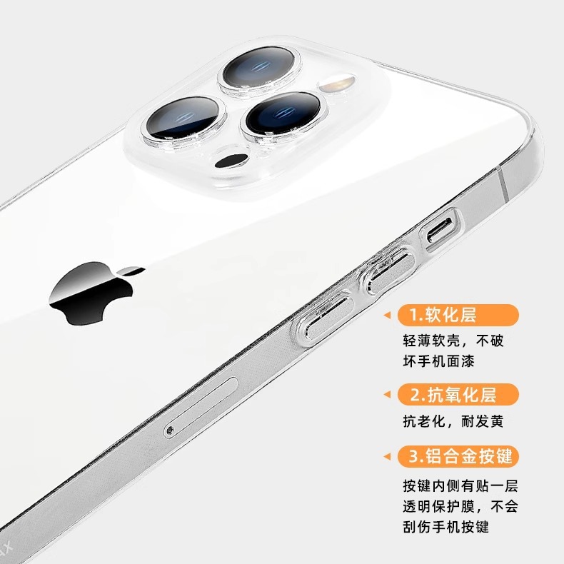 拜尔透明软壳适用iPhone16promax超薄手机壳苹果15金属按键精孔套