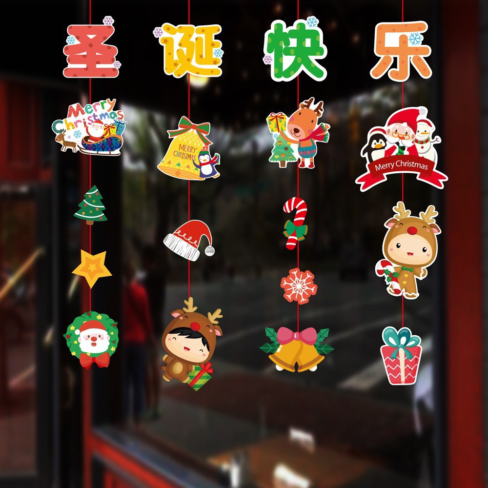 圣诞快乐字母纸质挂串挂饰派对布置彩色卡通丝带老人挂件装饰品