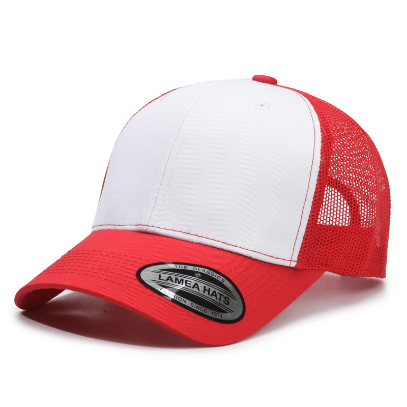 跨境拼色鸭舌网帽可调节卡车司机帽子男遮阳帽 亚马逊弯檐棒球帽