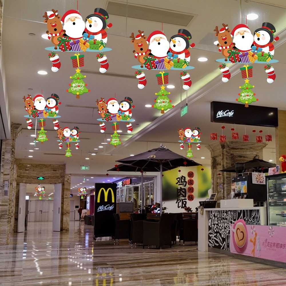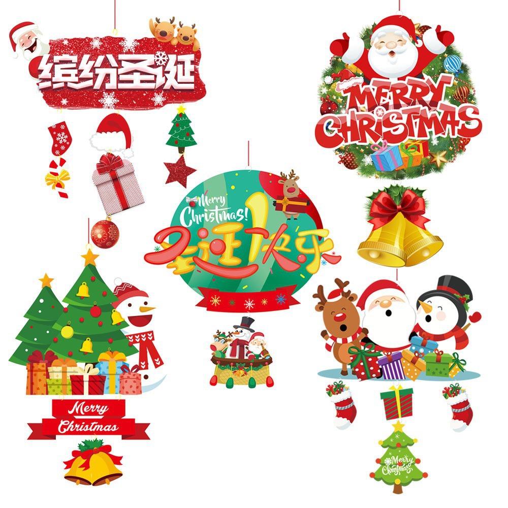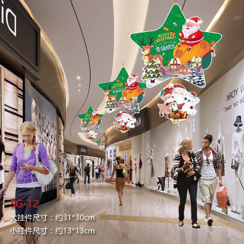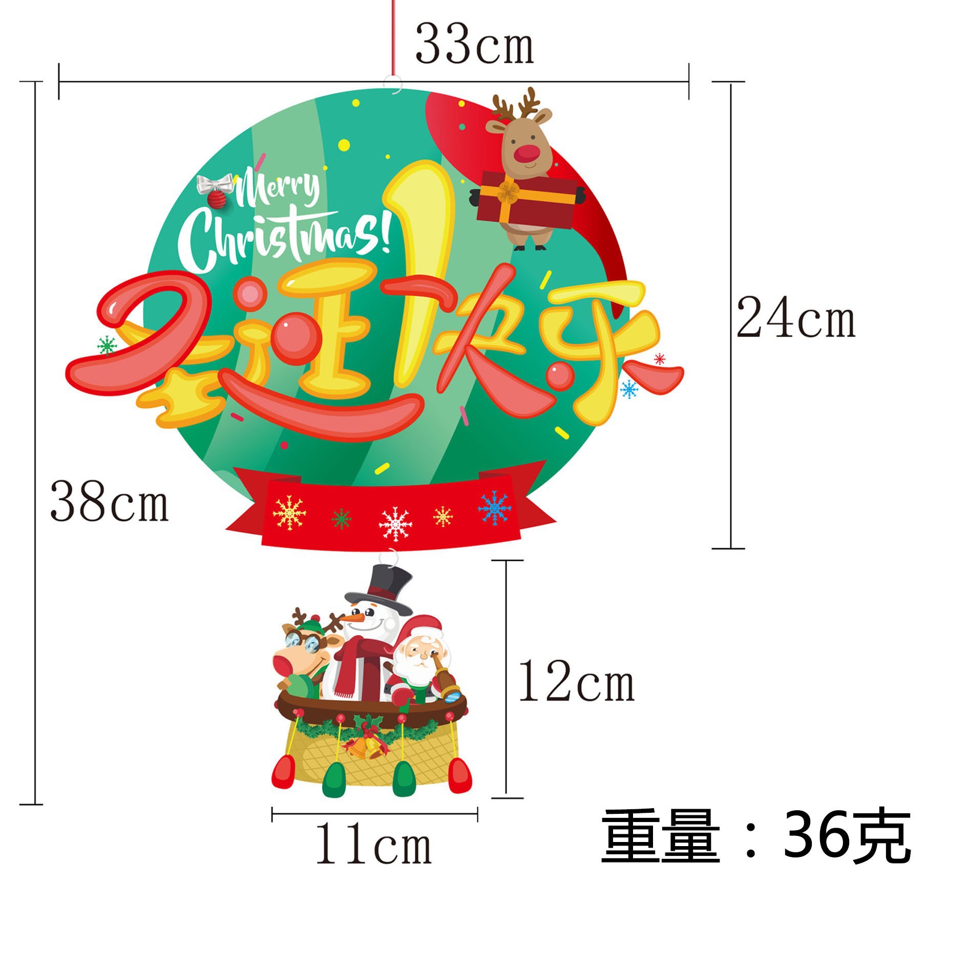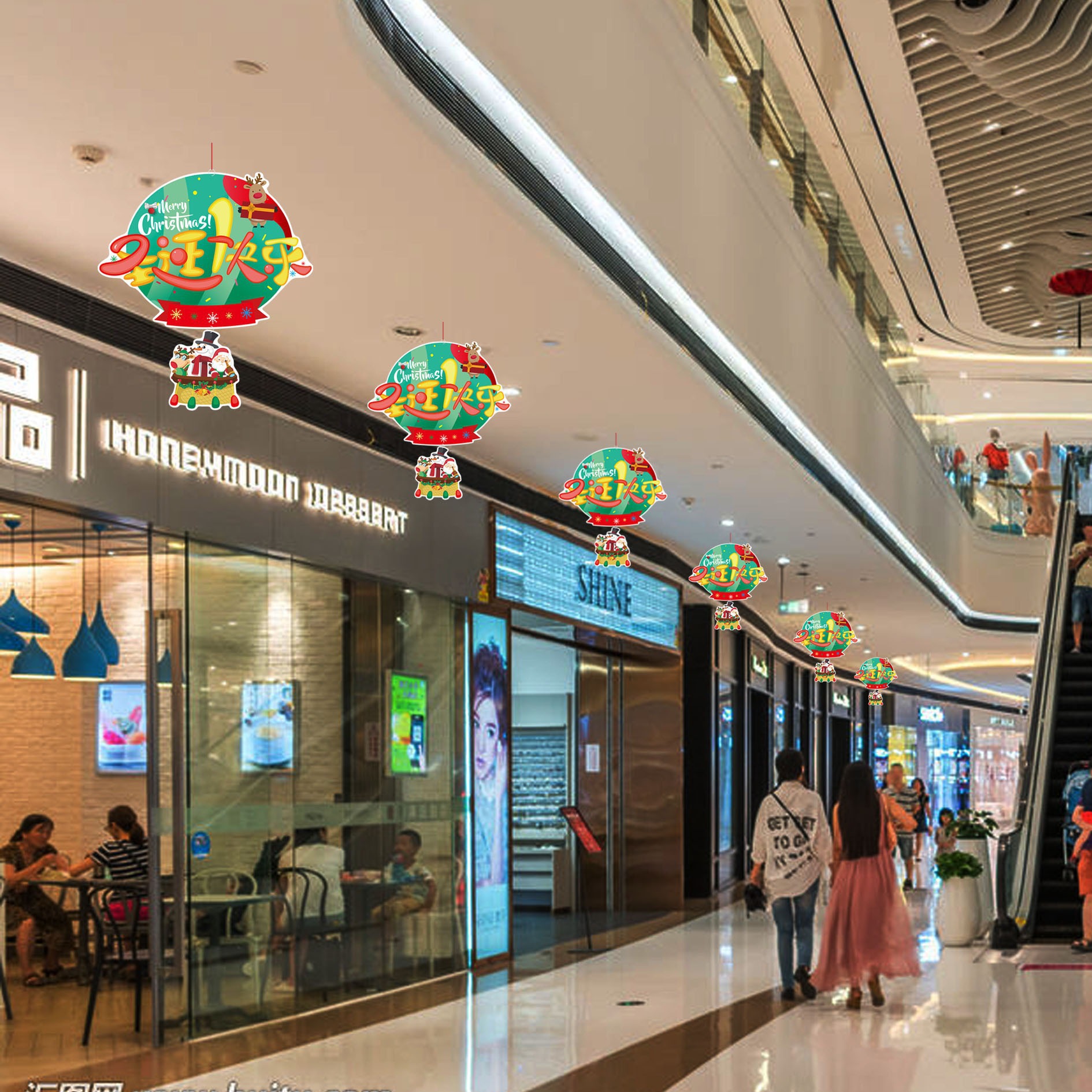 圣诞节商场橱窗场景布置彩印挂饰圣诞老人麋鹿纸质卡通挂件吊饰