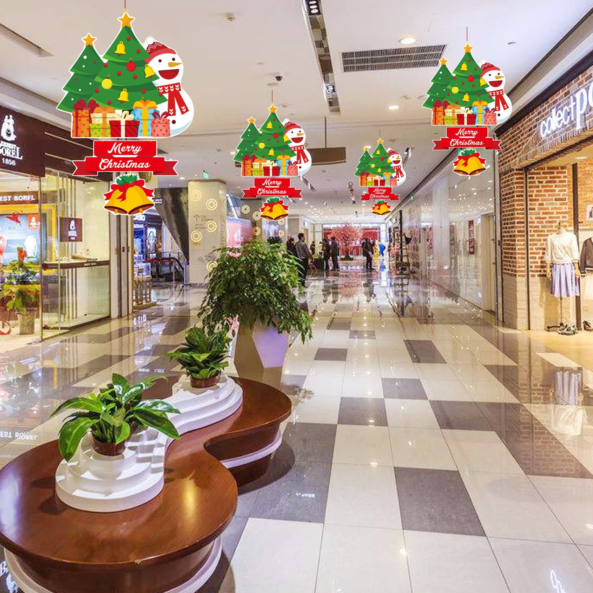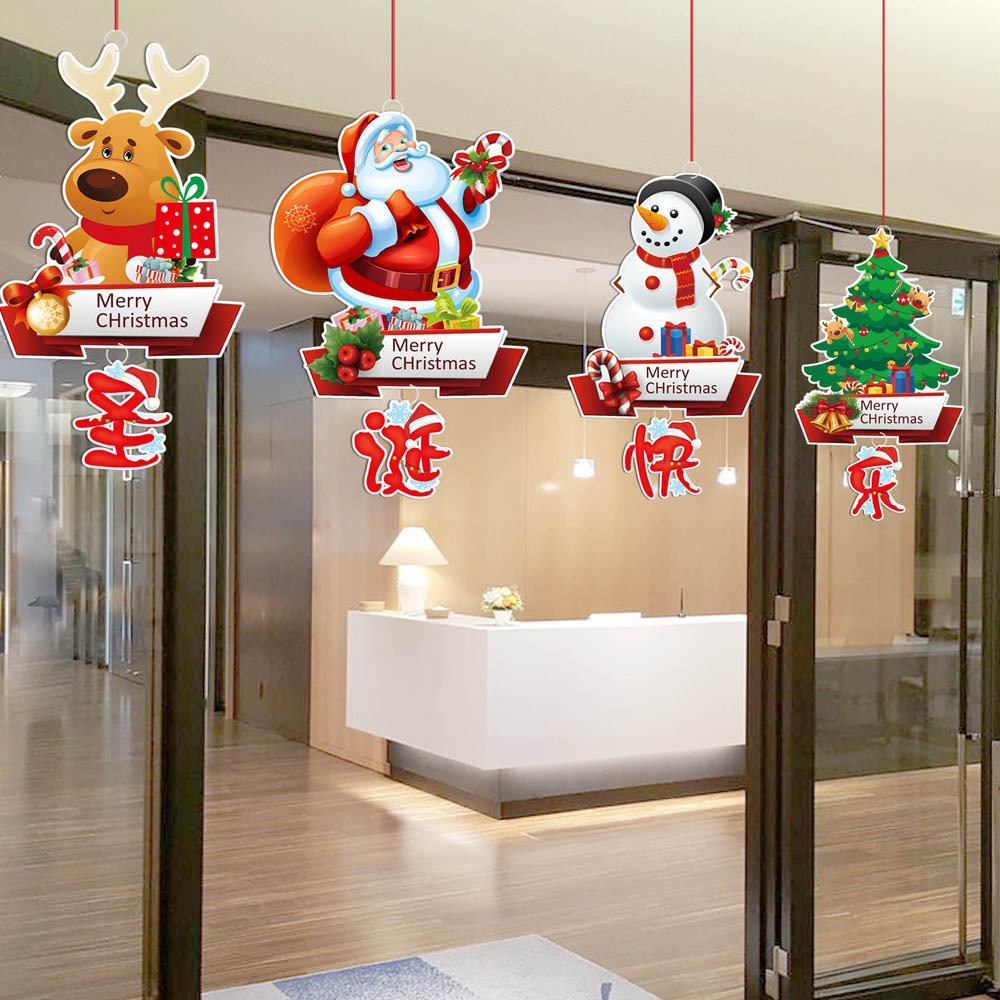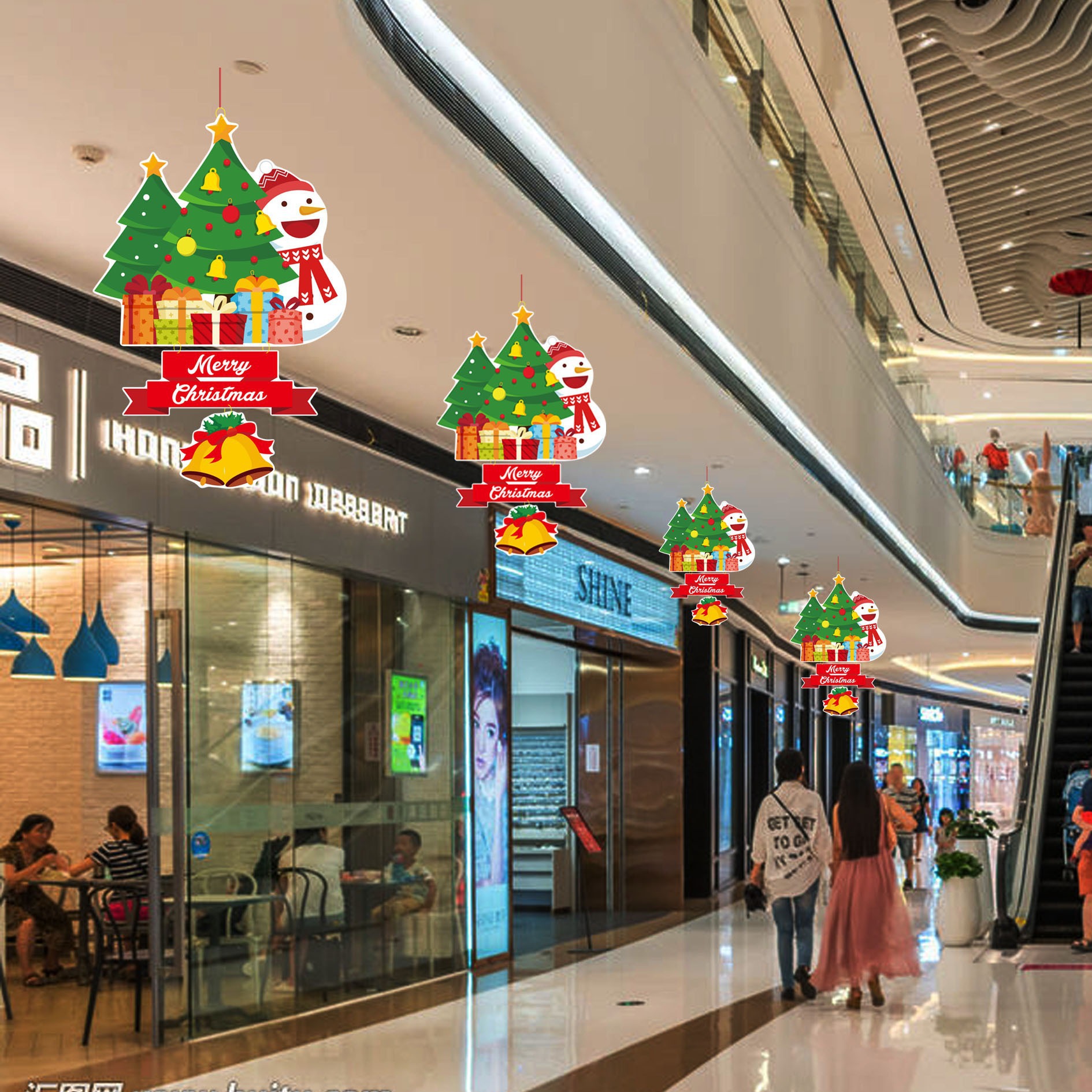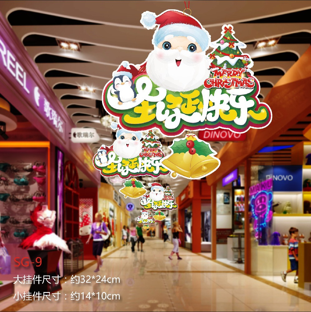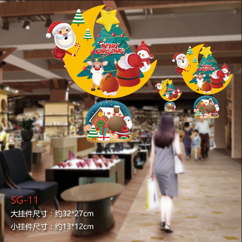 圣诞节商场橱窗场景布置彩印挂饰圣诞老人麋鹿纸质卡通挂件吊饰