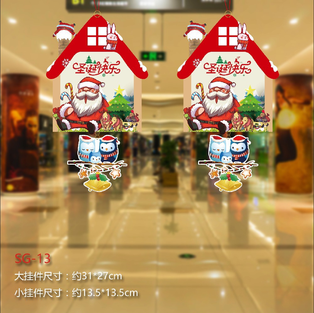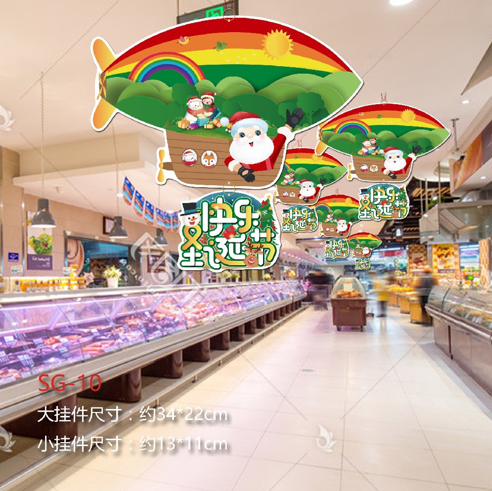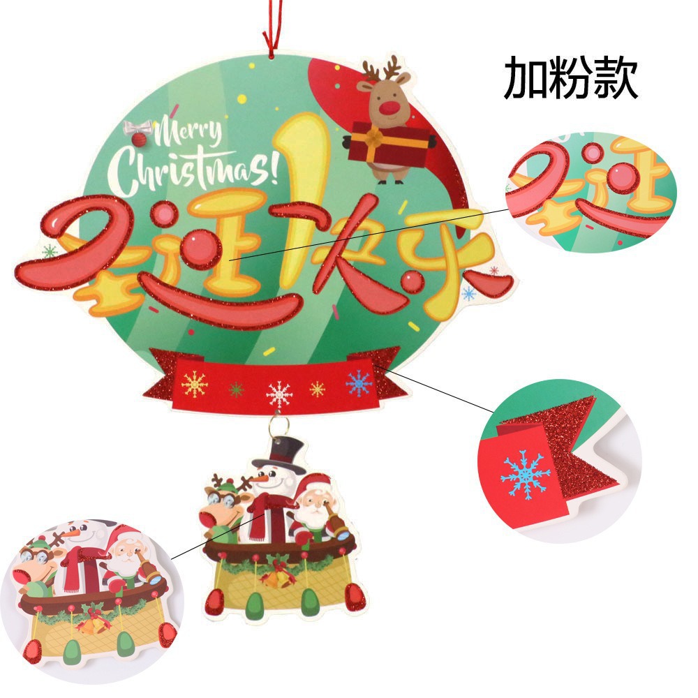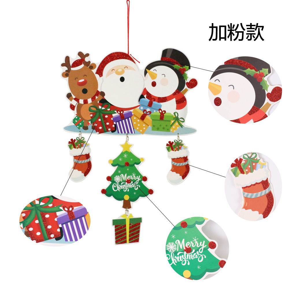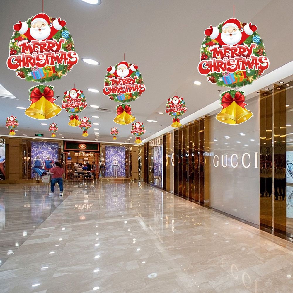 圣诞节商场橱窗场景布置彩印挂饰圣诞老人麋鹿纸质卡通挂件吊饰