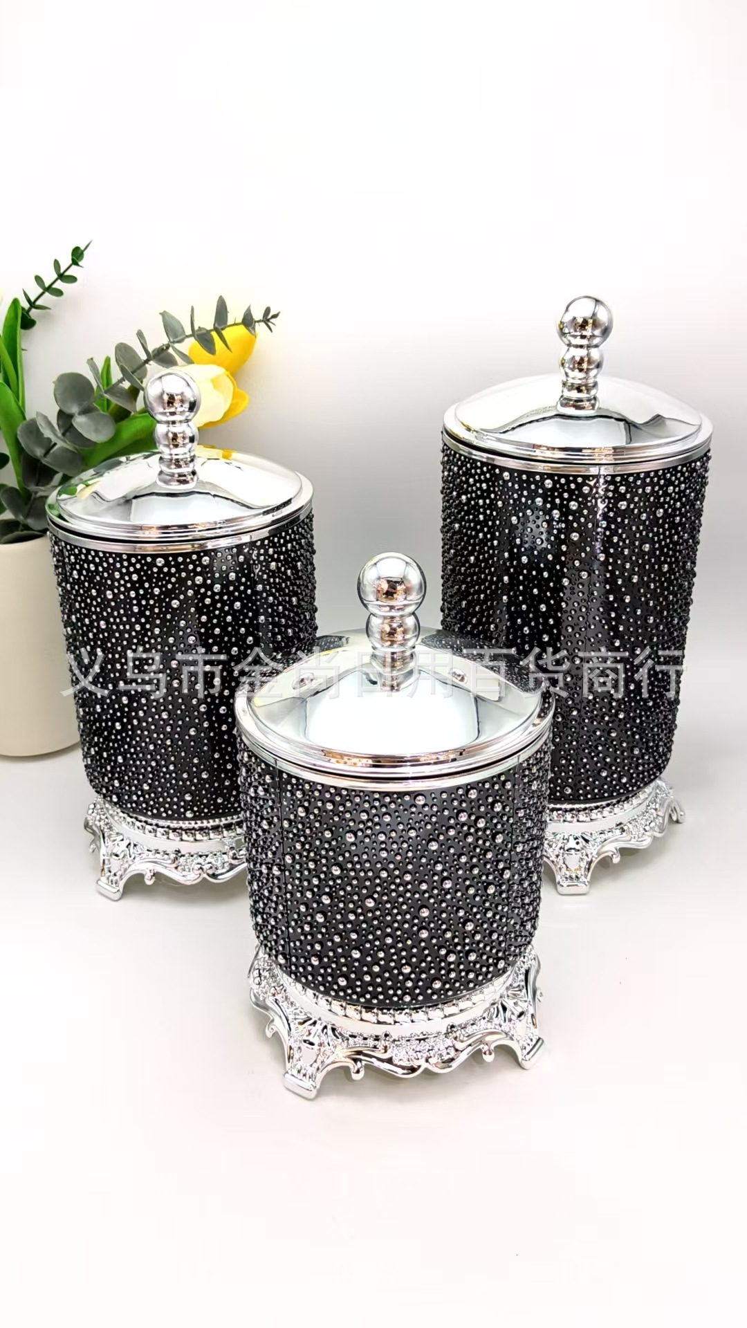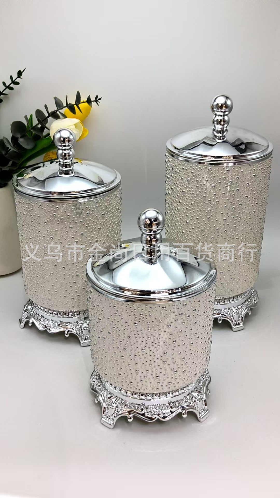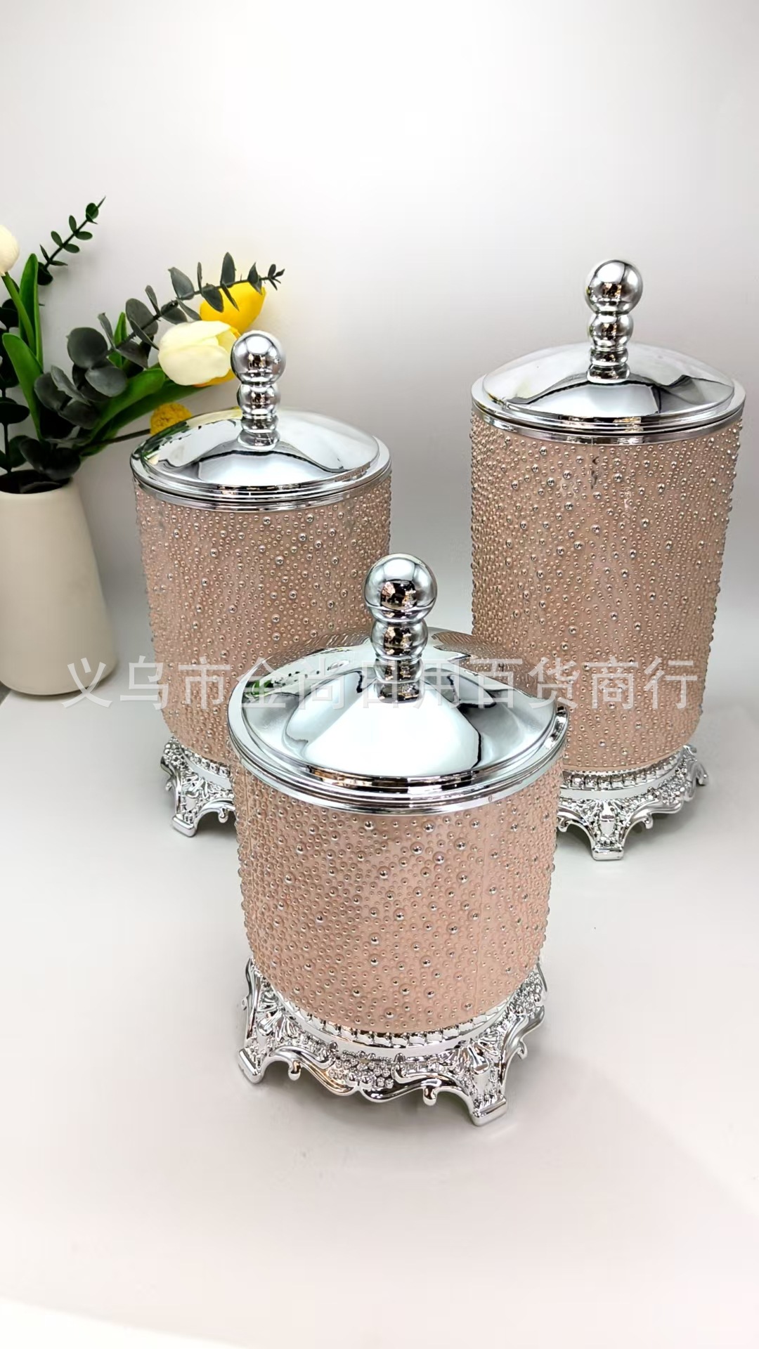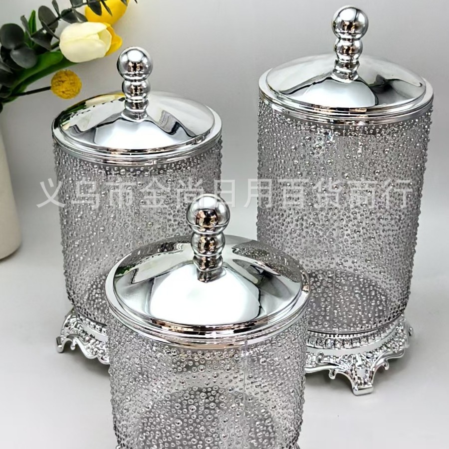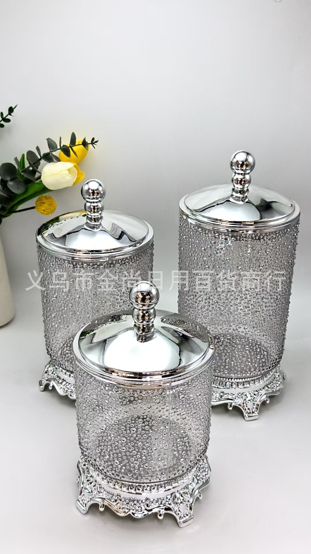 塑料圆珠米珠实色透明带托台储物罐创意高颜值饼干密封罐带彩盒