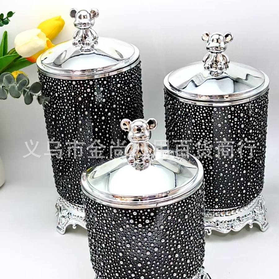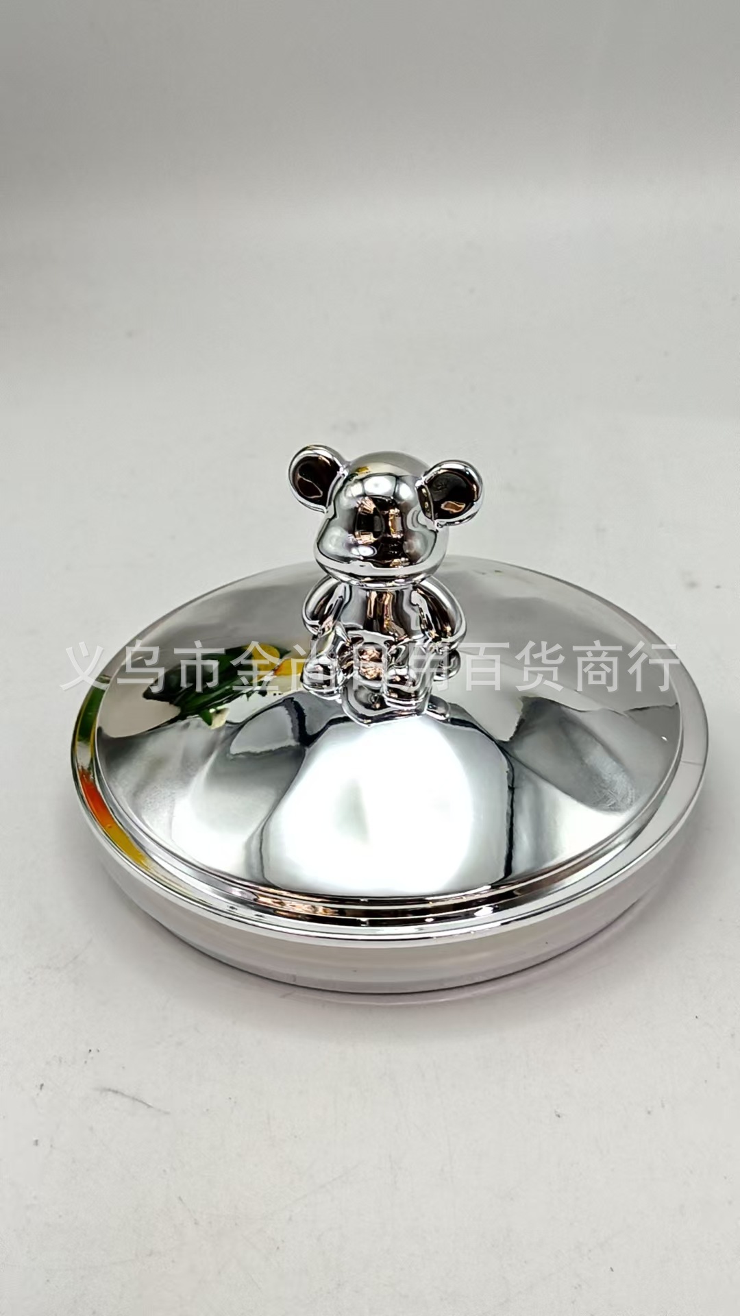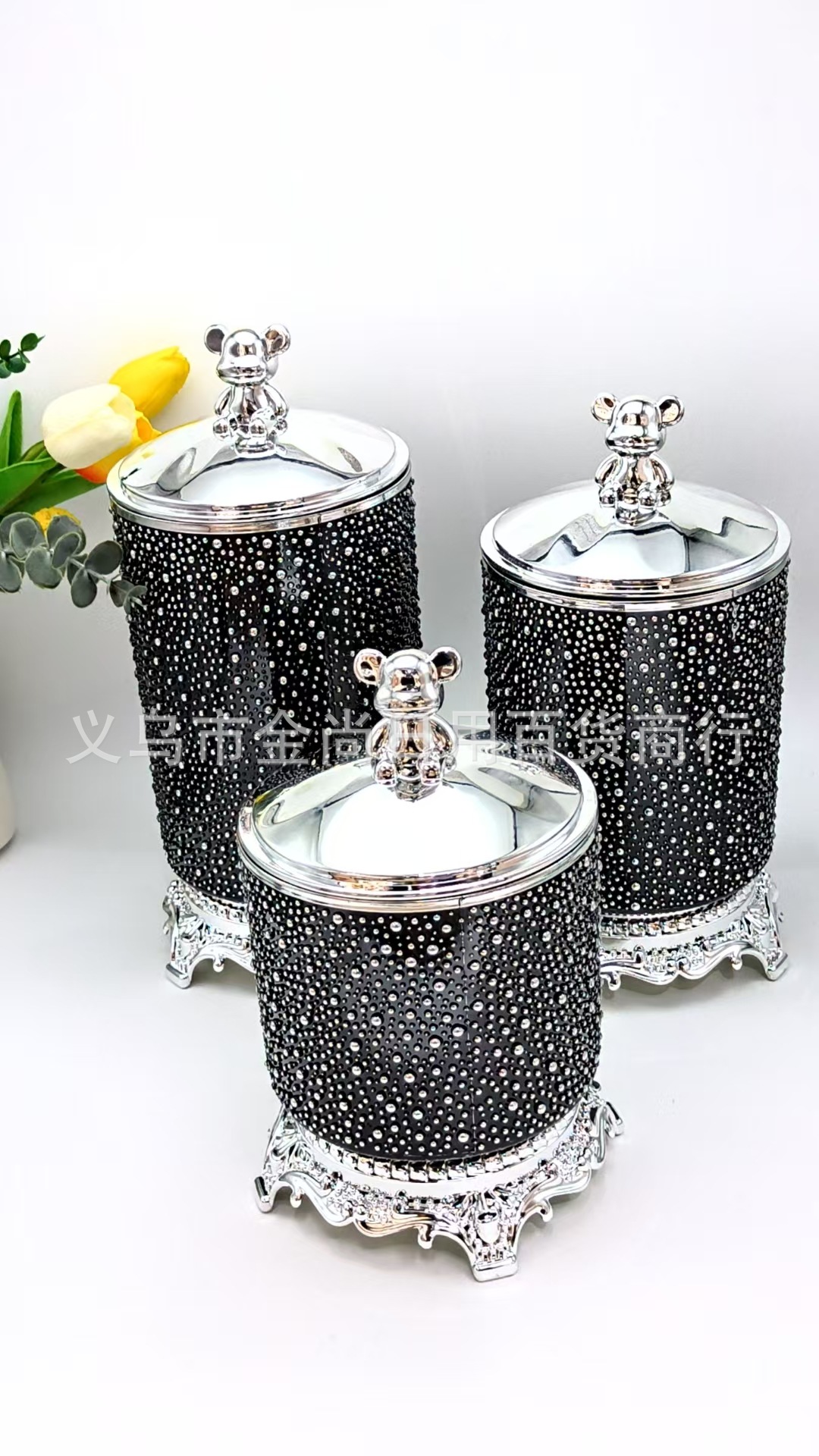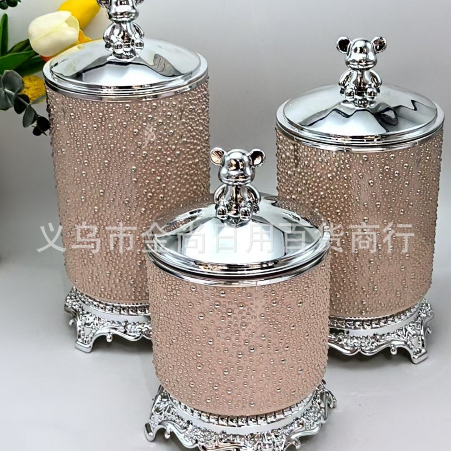 小熊盖米珠圆形银边塑料储物罐厨房干粮密封罐客厅糖果罐带彩盒