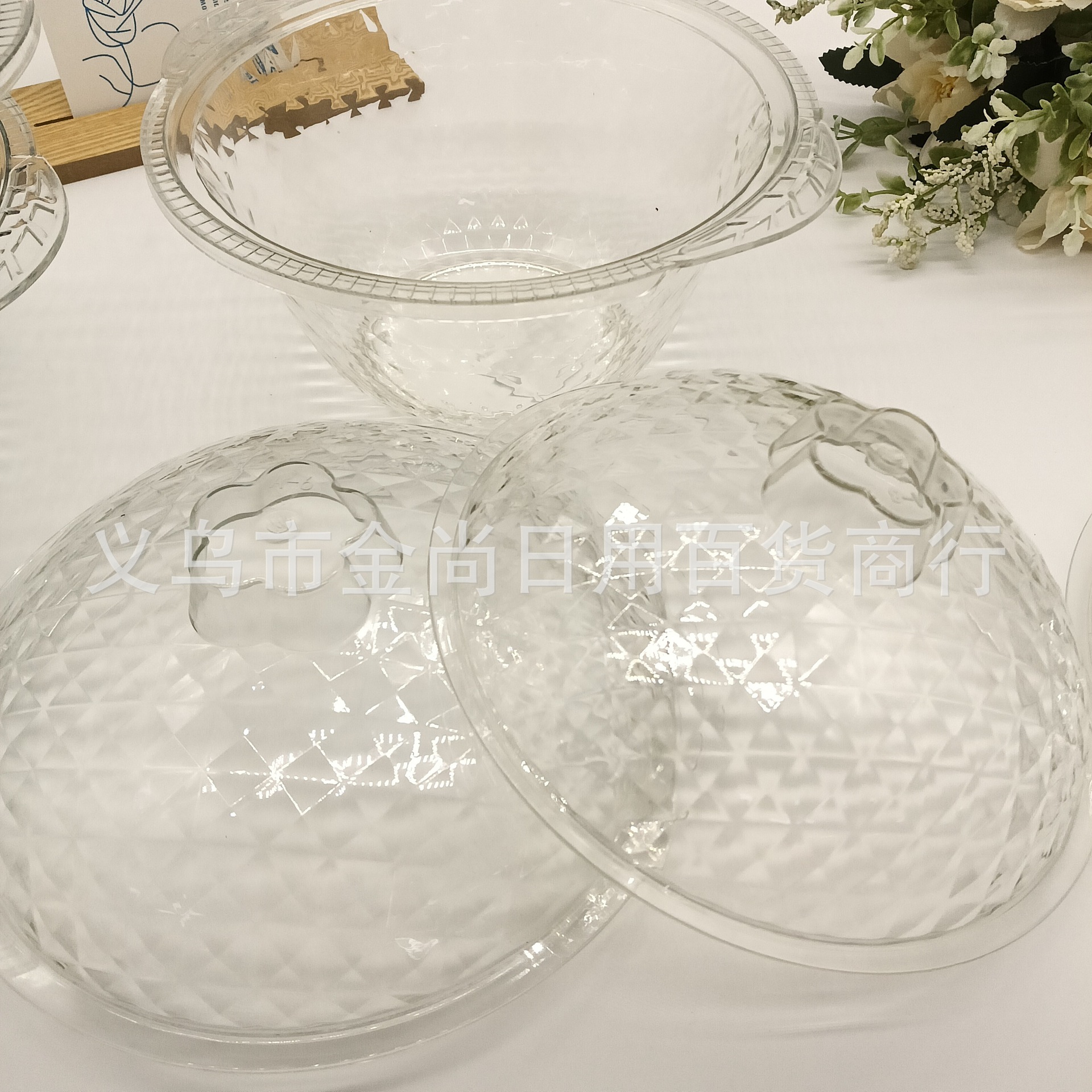 跨境PET碗带盖甜品碗燕窝盅水果沙拉碗批发餐具创意家用PET盘子