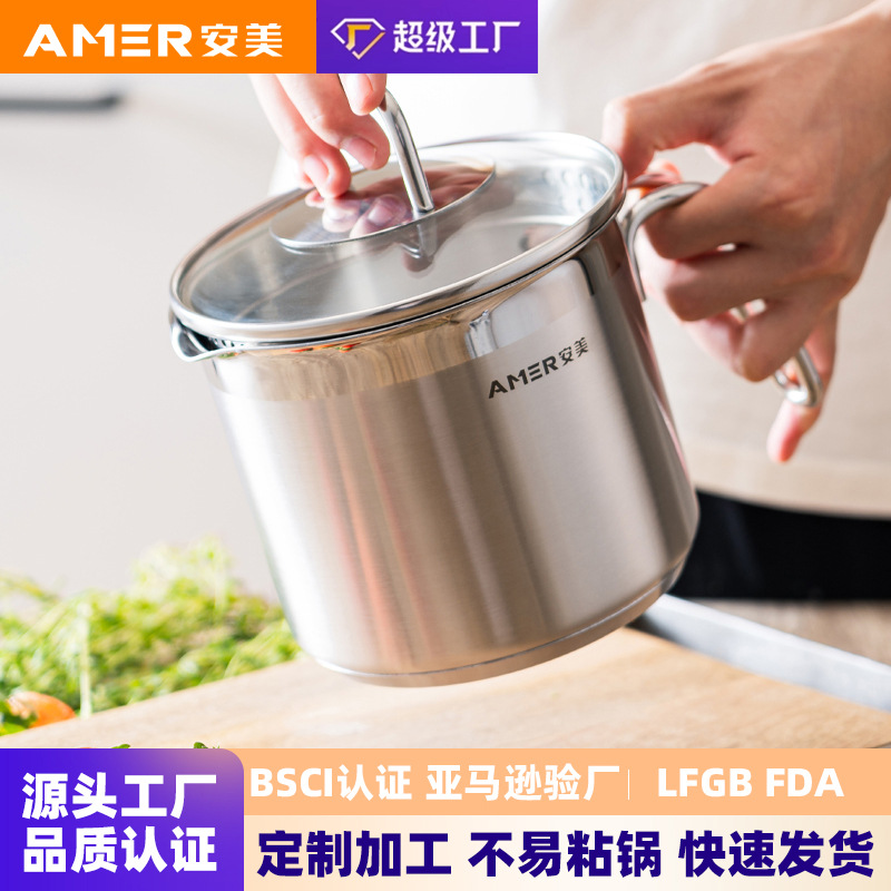 跨境热卖304加深不锈钢奶锅宝宝婴儿多功能辅食锅一人是煮面锅