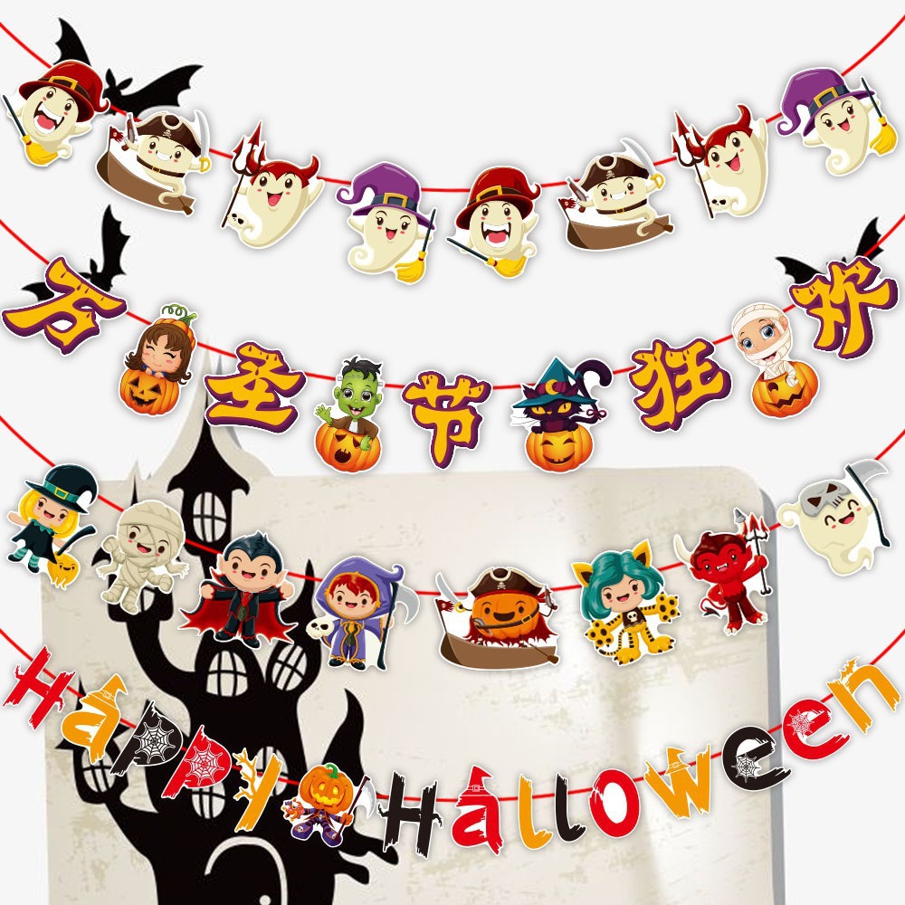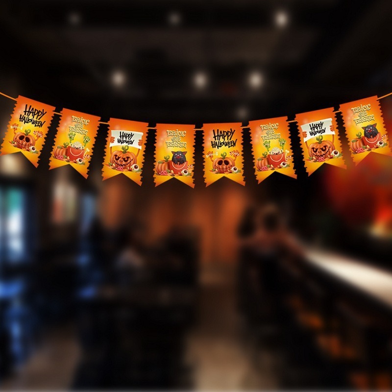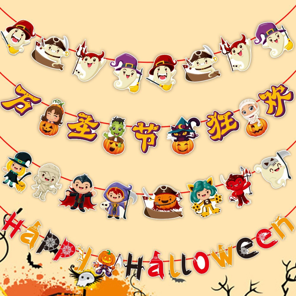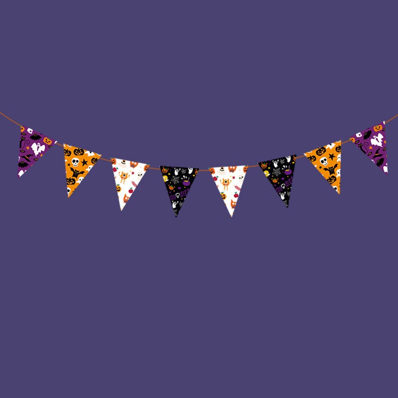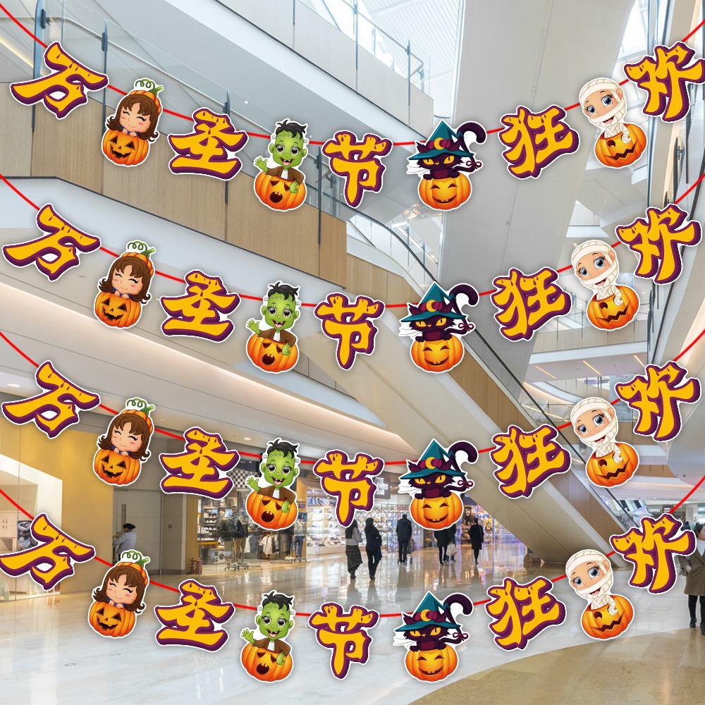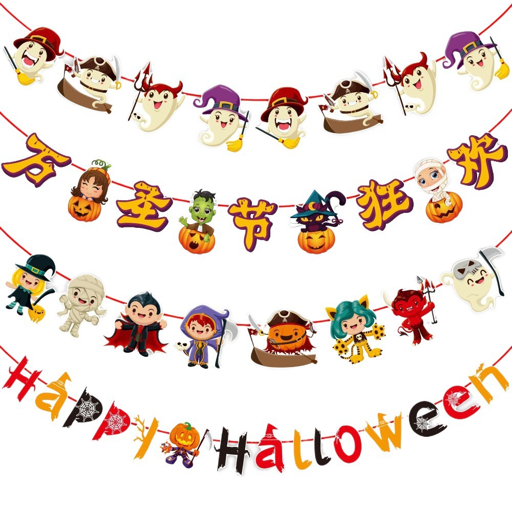 万圣节装饰卡通拉旗横幅派对场景布置南瓜幽灵纸质三角旗字母彩旗