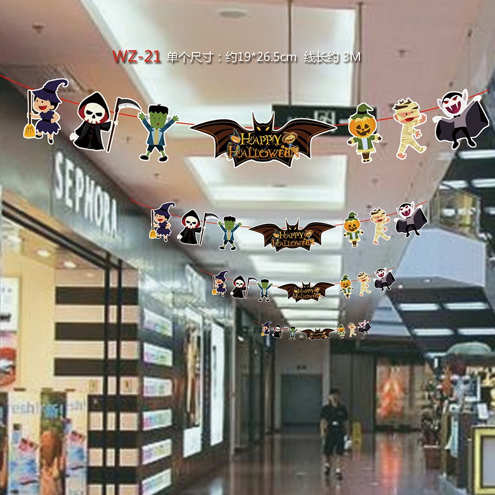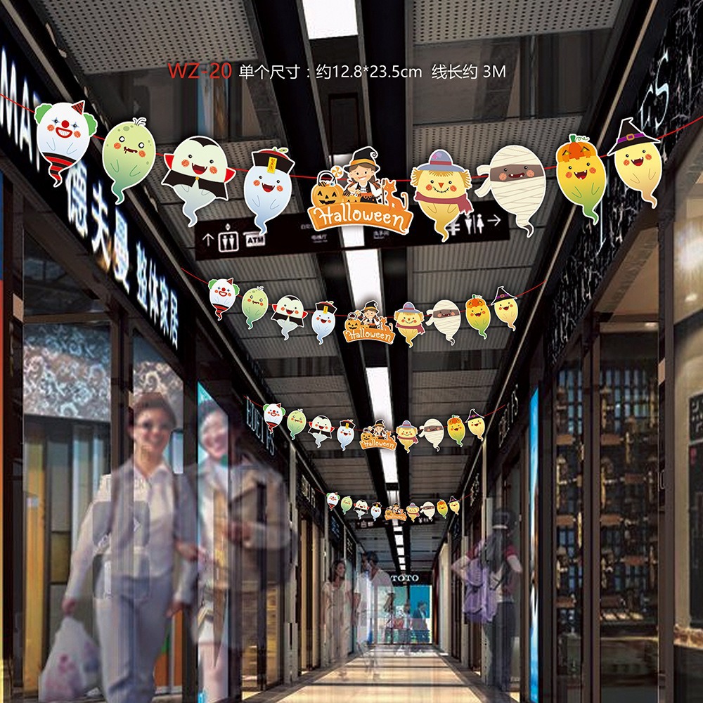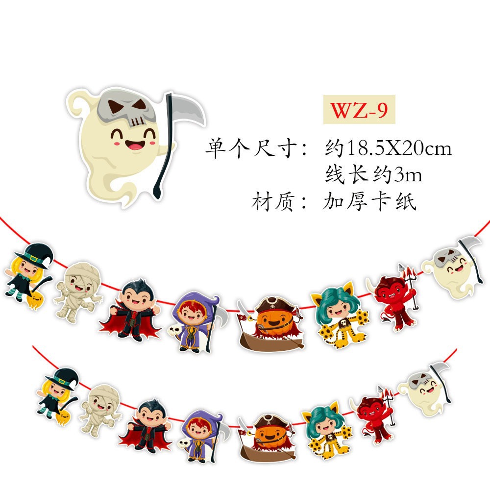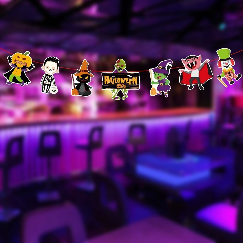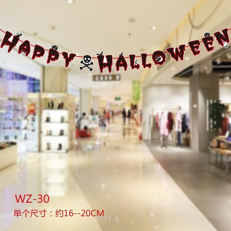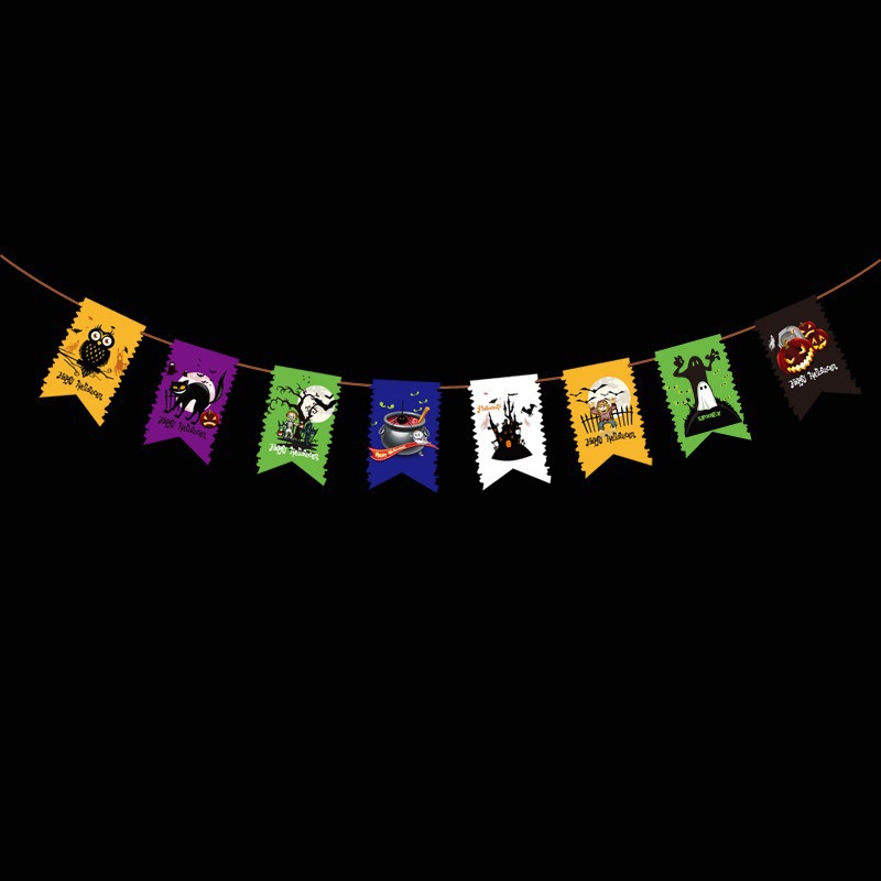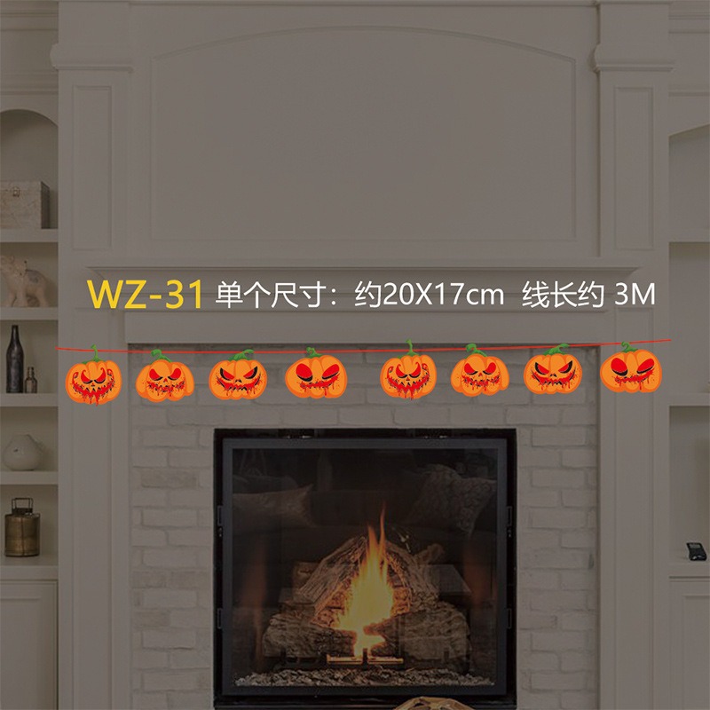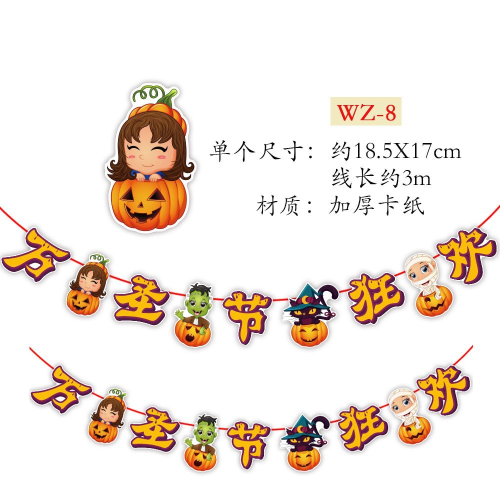万圣节装饰卡通拉旗横幅派对场景布置南瓜幽灵纸质三角旗字母彩旗