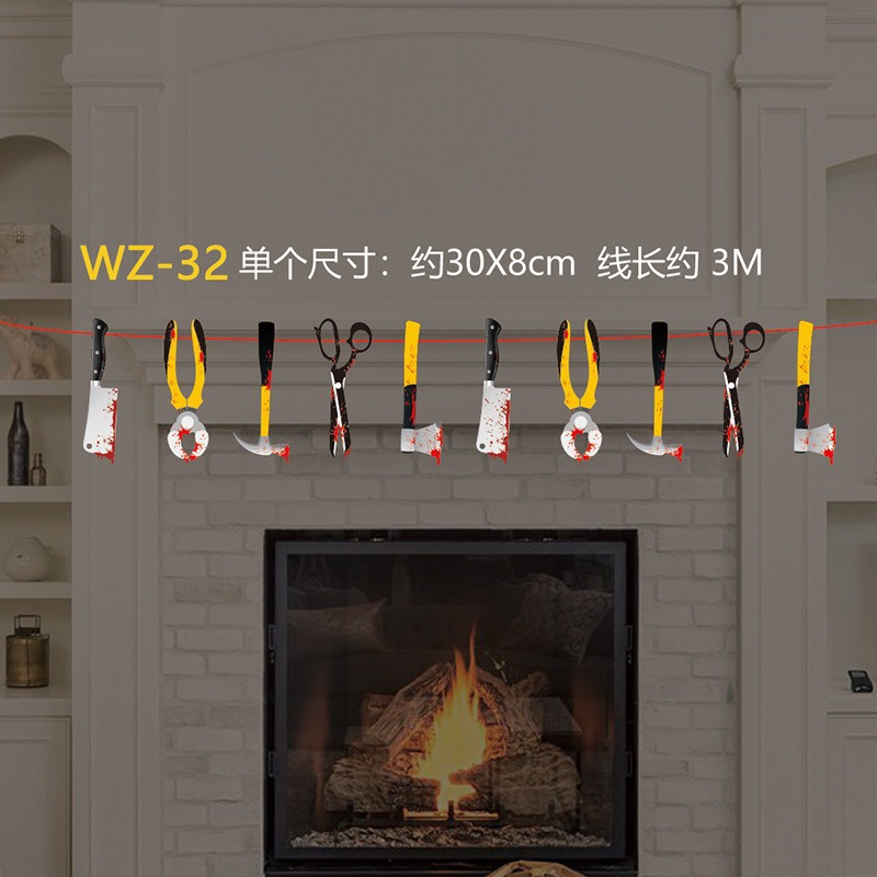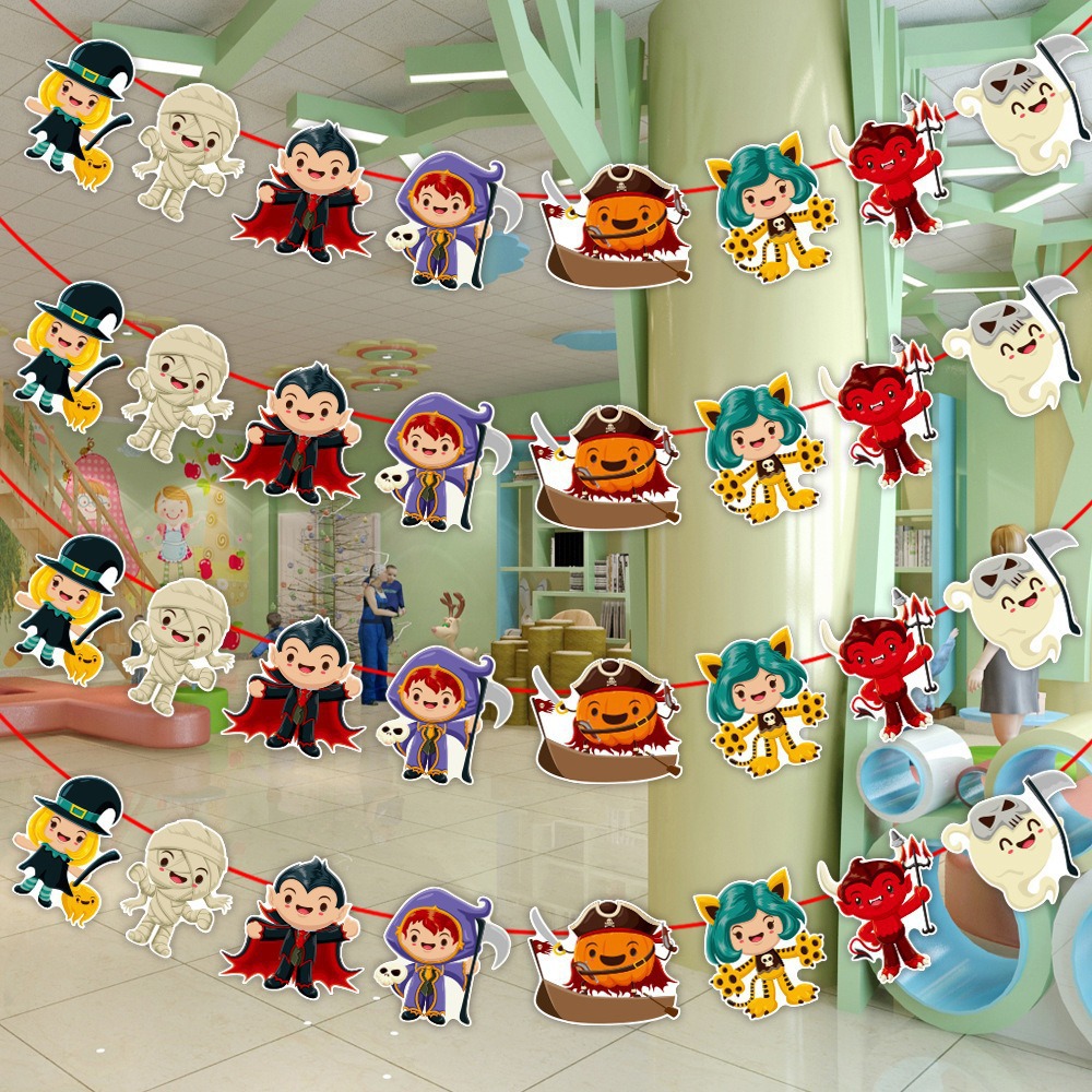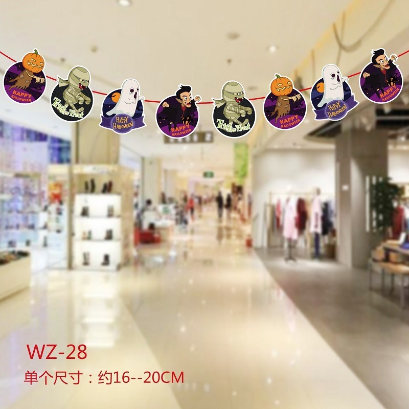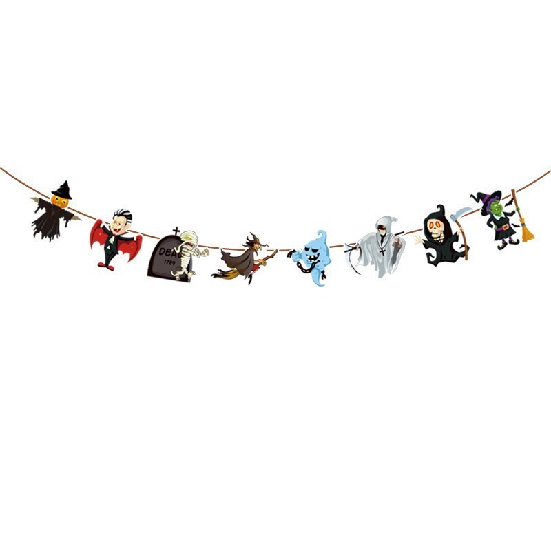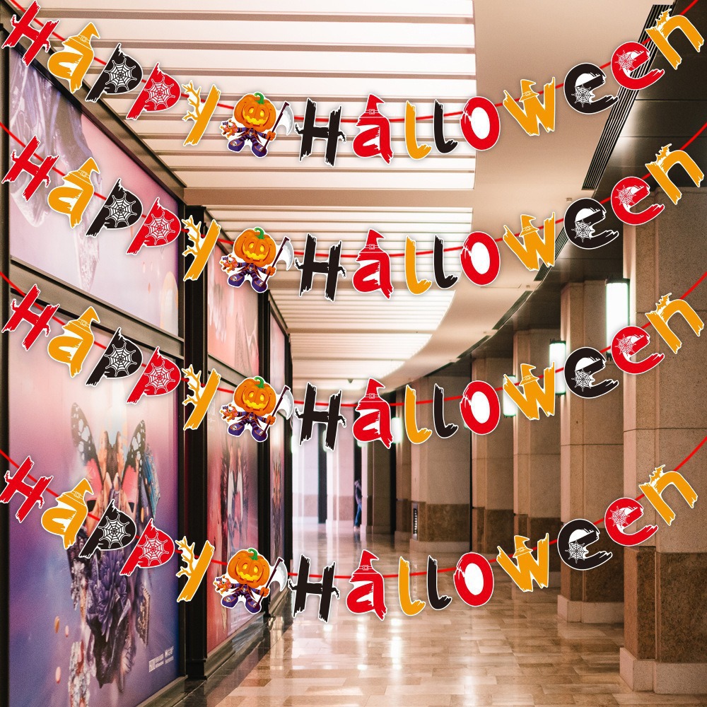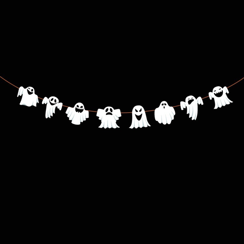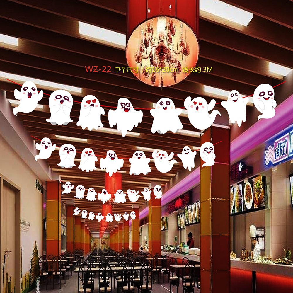 万圣节装饰卡通拉旗横幅派对场景布置南瓜幽灵纸质三角旗字母彩旗