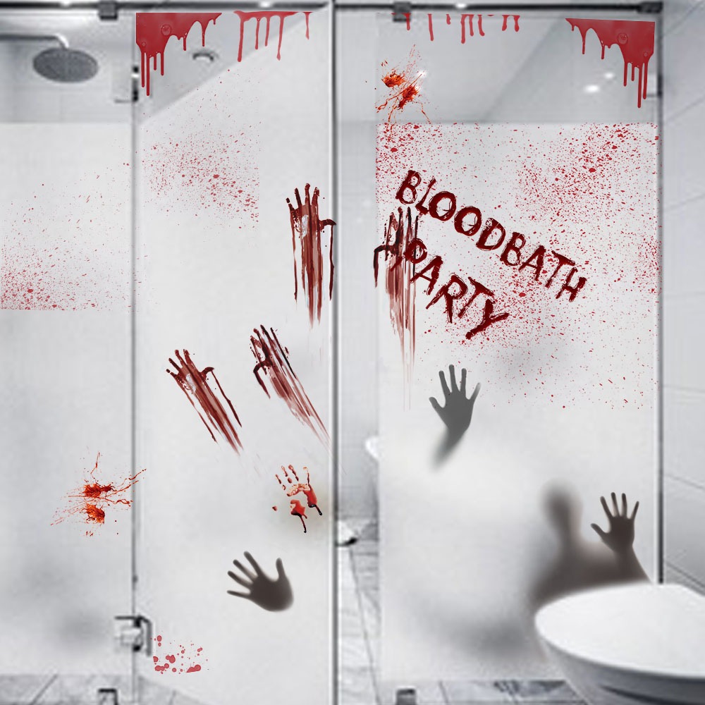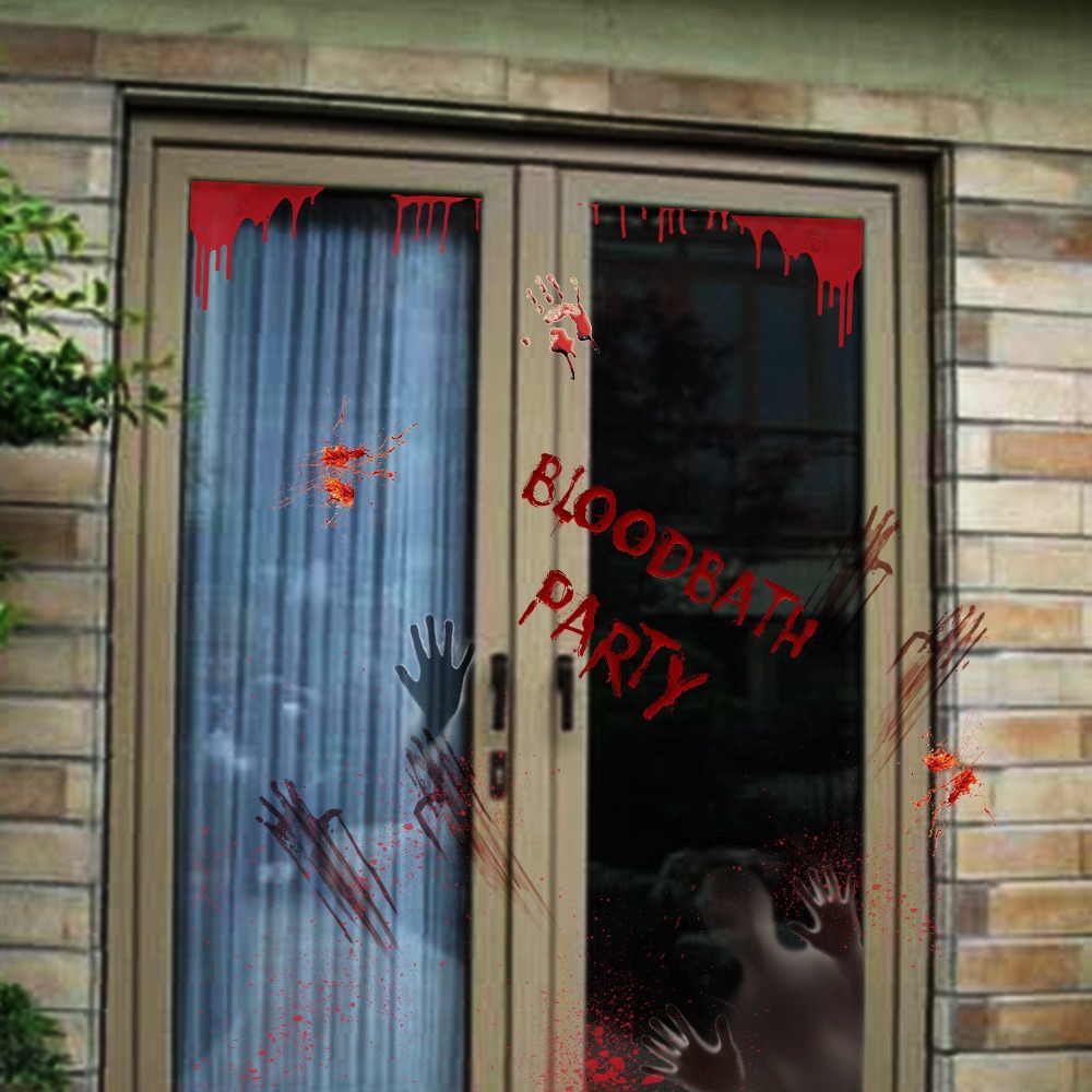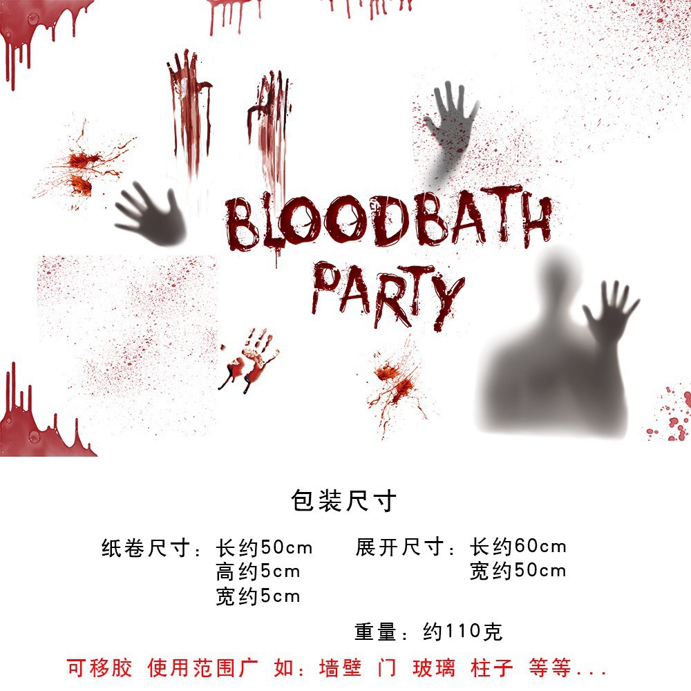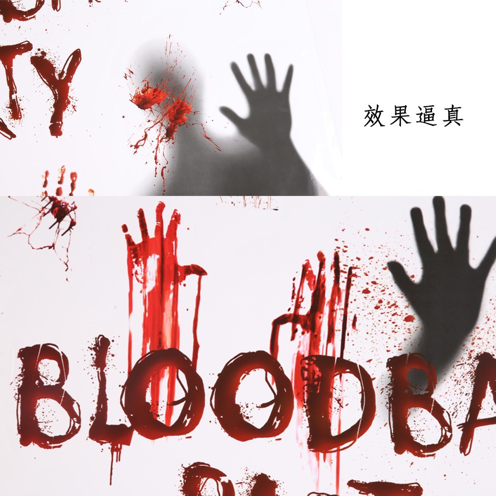 万圣节血手印窗贴静电贴鬼屋场景布置装饰墙贴蜘蛛网骷髅门贴贴纸