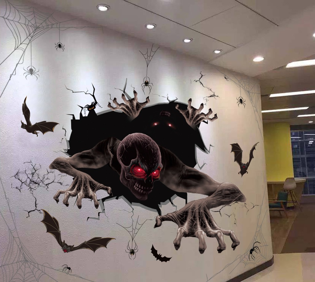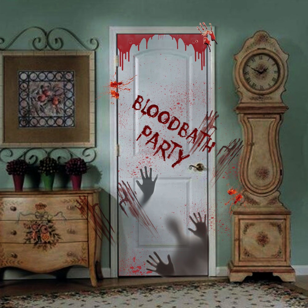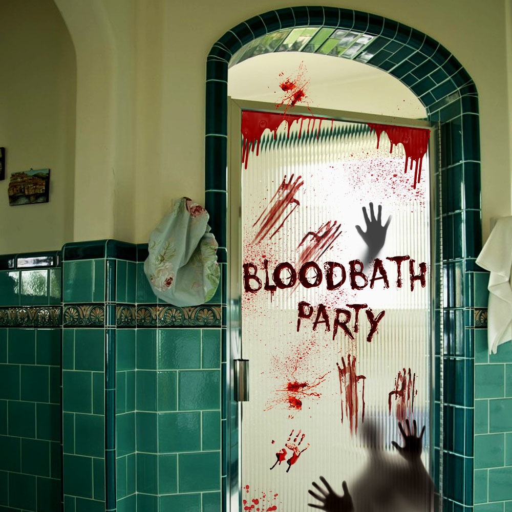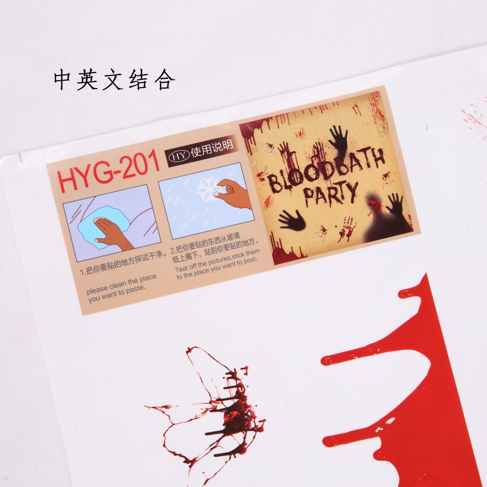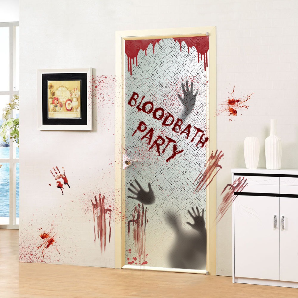 万圣节血手印窗贴静电贴鬼屋场景布置装饰墙贴蜘蛛网骷髅门贴贴纸