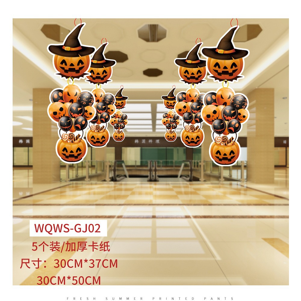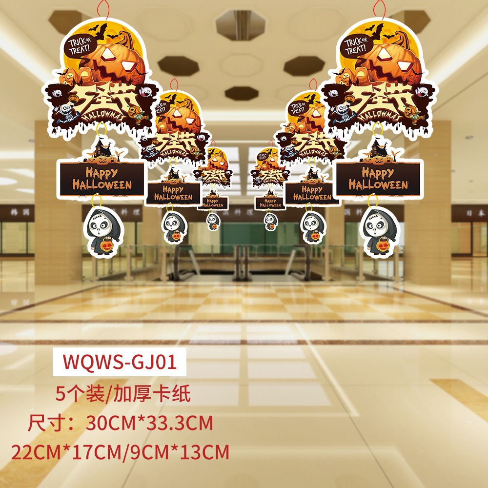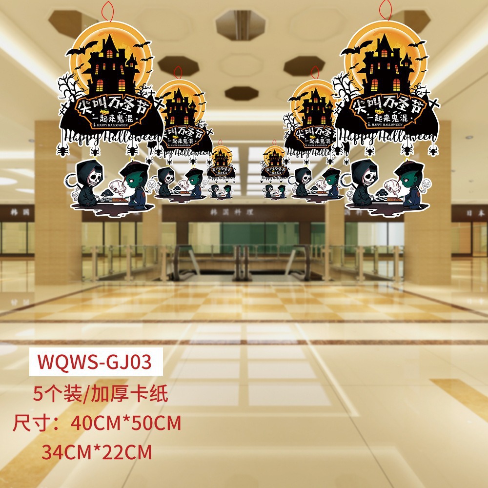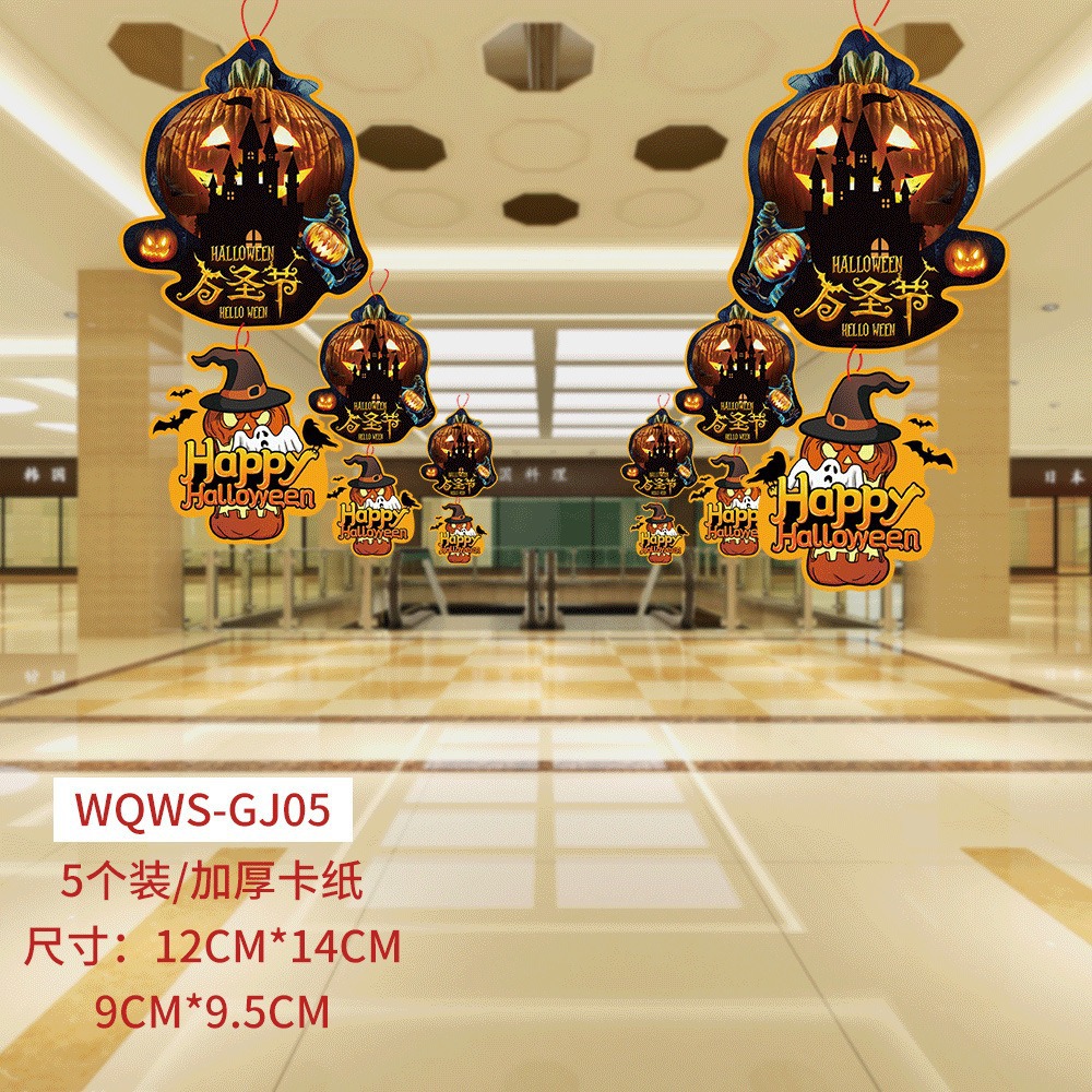 纸质卡通万圣节南瓜挂件吊饰商场橱窗氛围场景布置道具幽灵挂饰