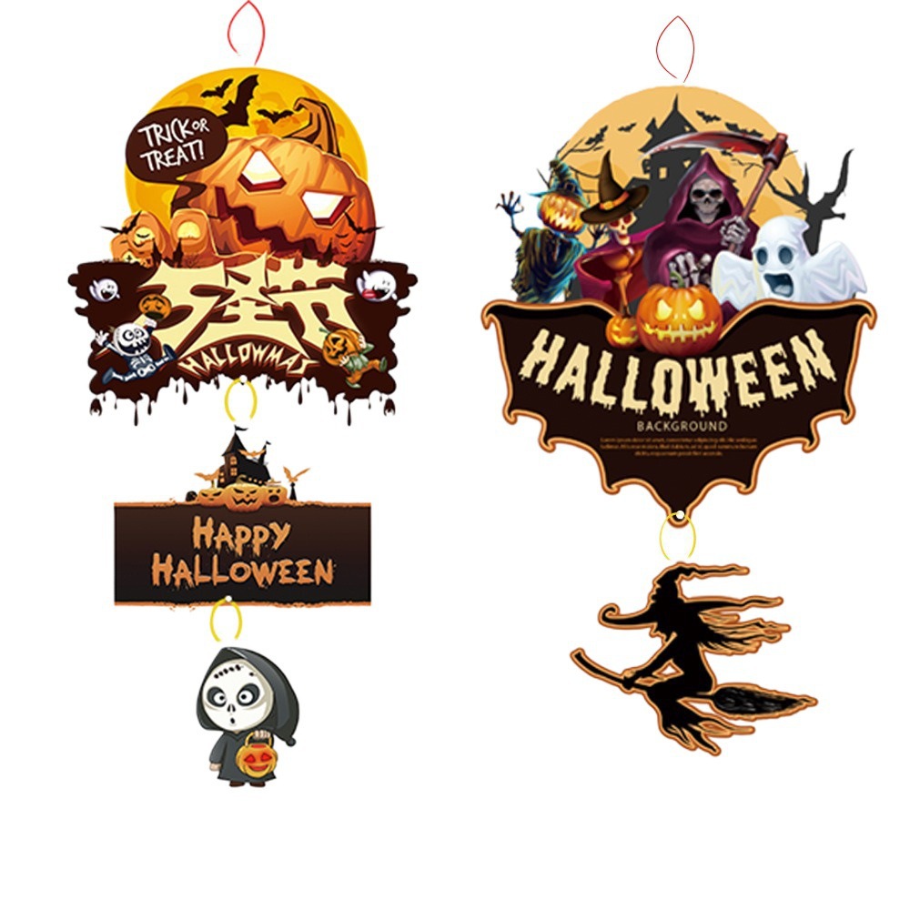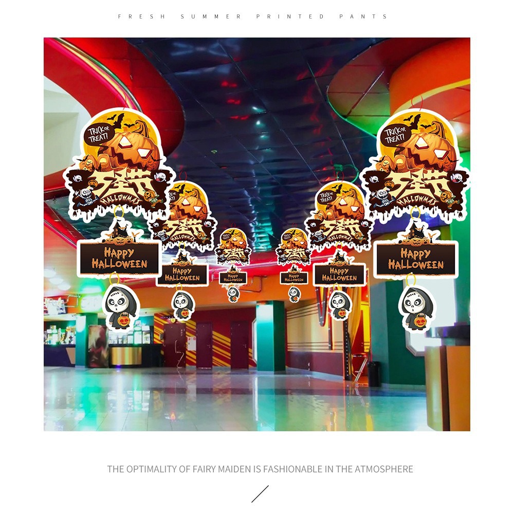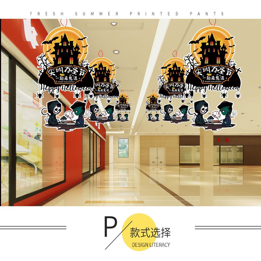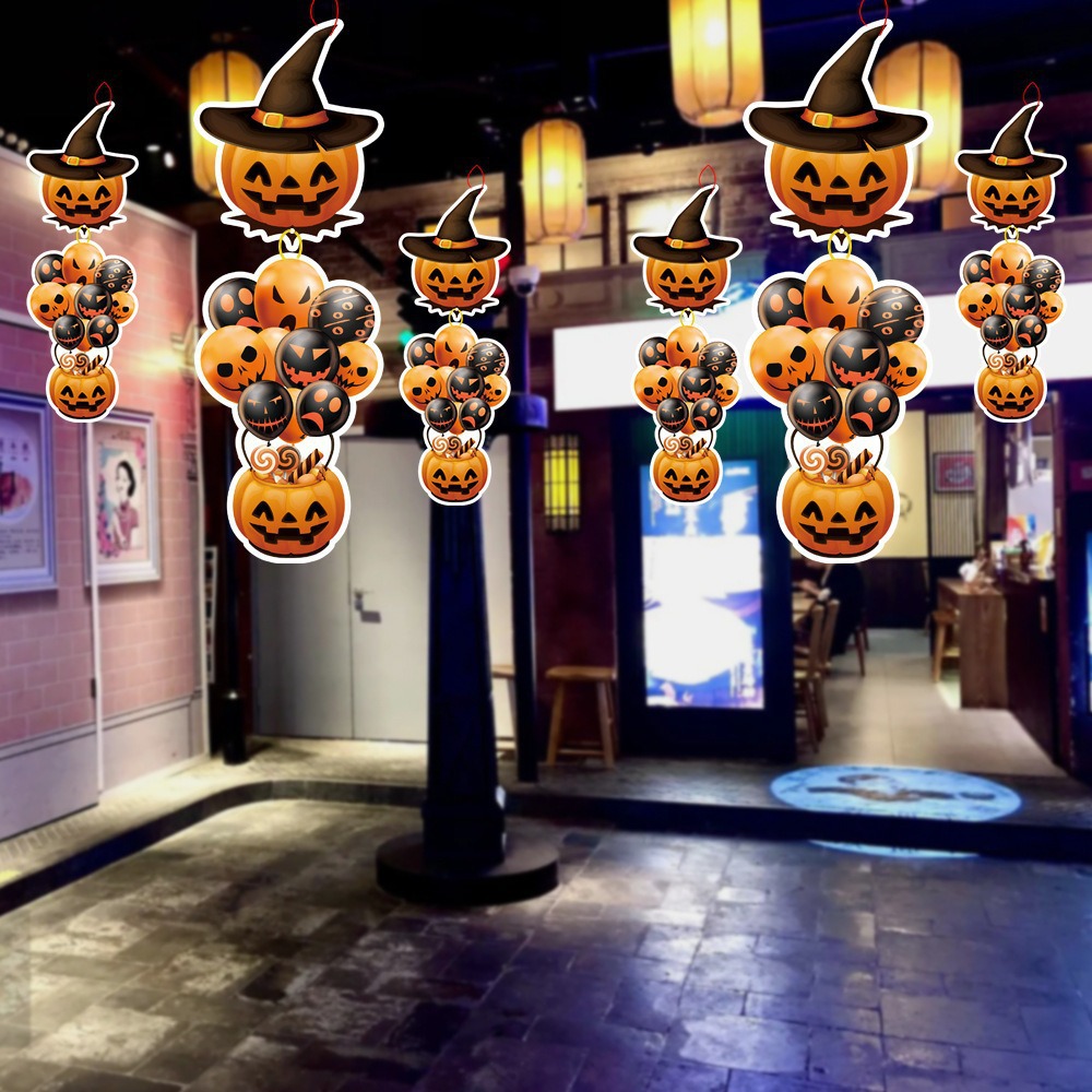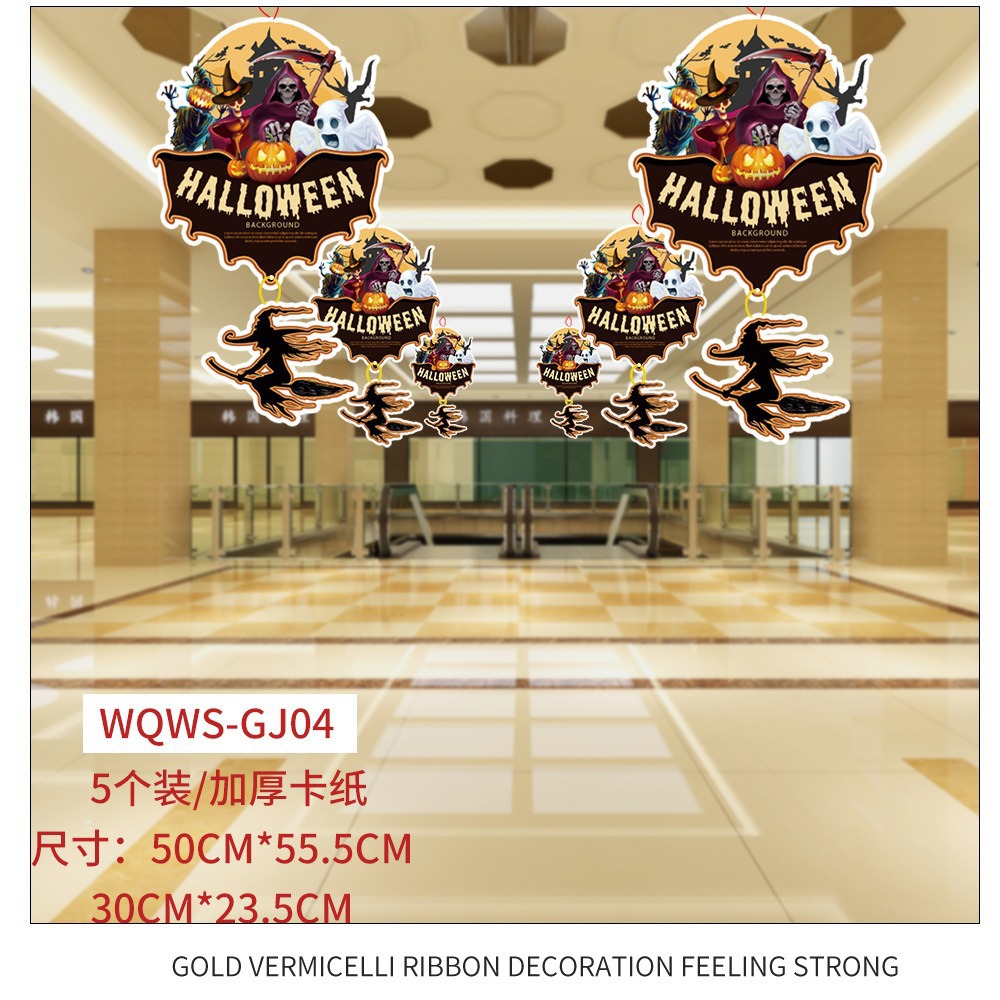 纸质卡通万圣节南瓜挂件吊饰商场橱窗氛围场景布置道具幽灵挂饰