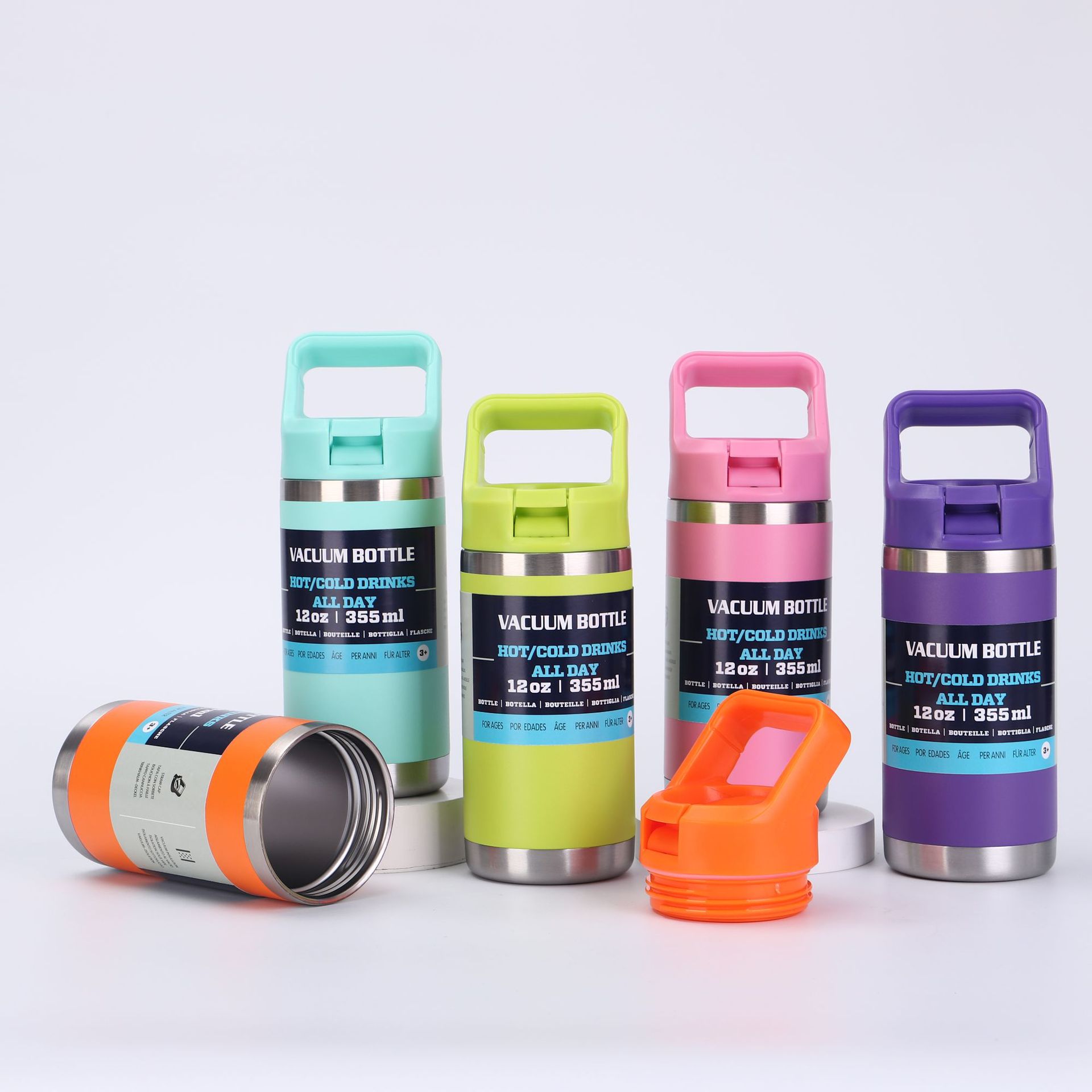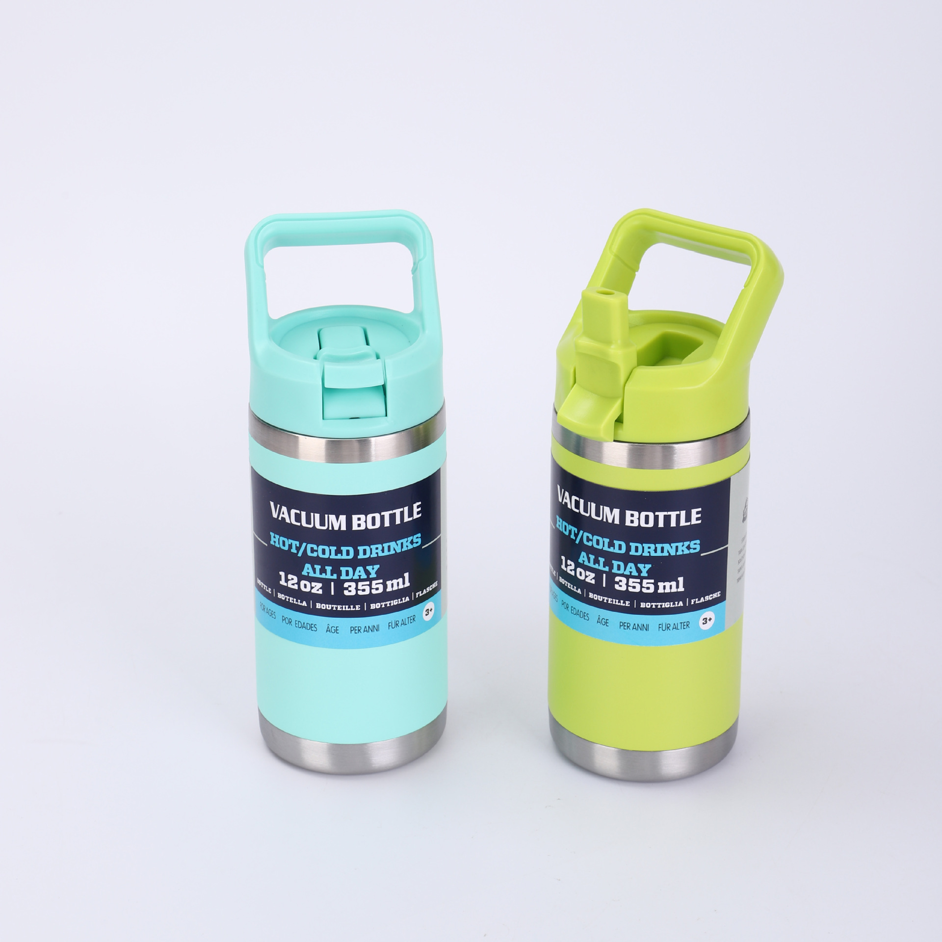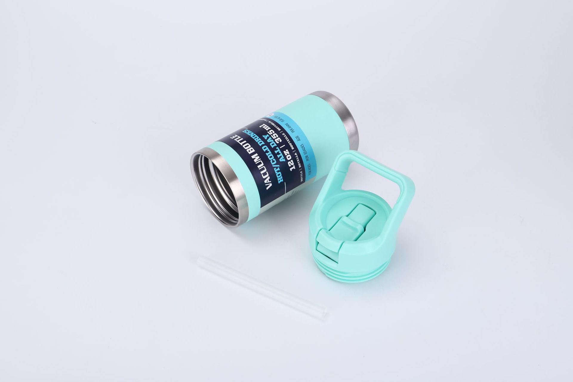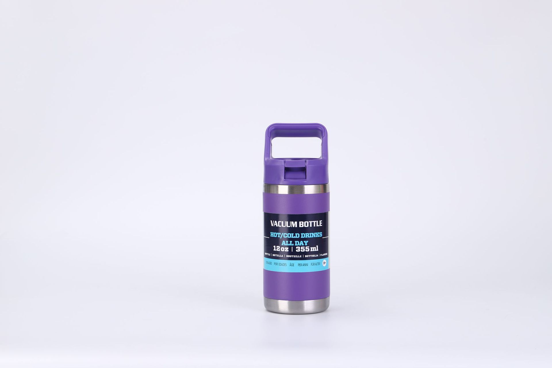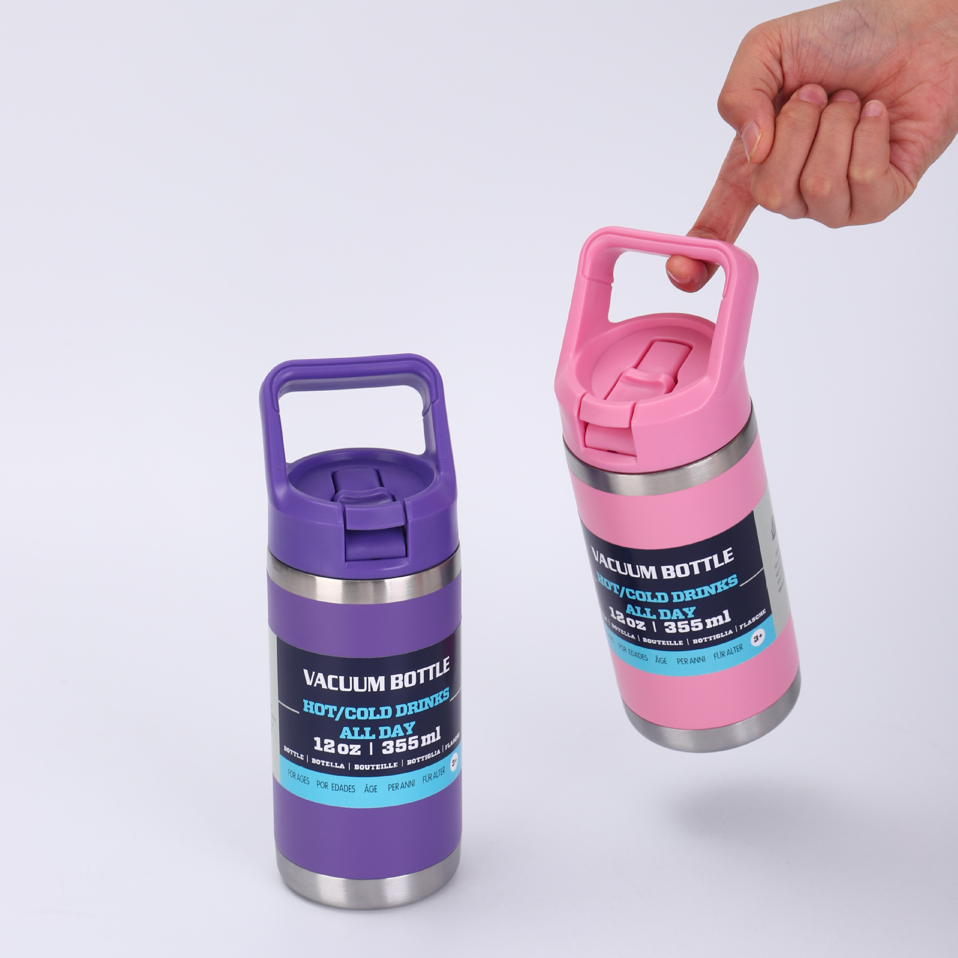 跨境12oz提手保温壶304不锈钢真空双饮户外运动水壶手提盖汽车杯
