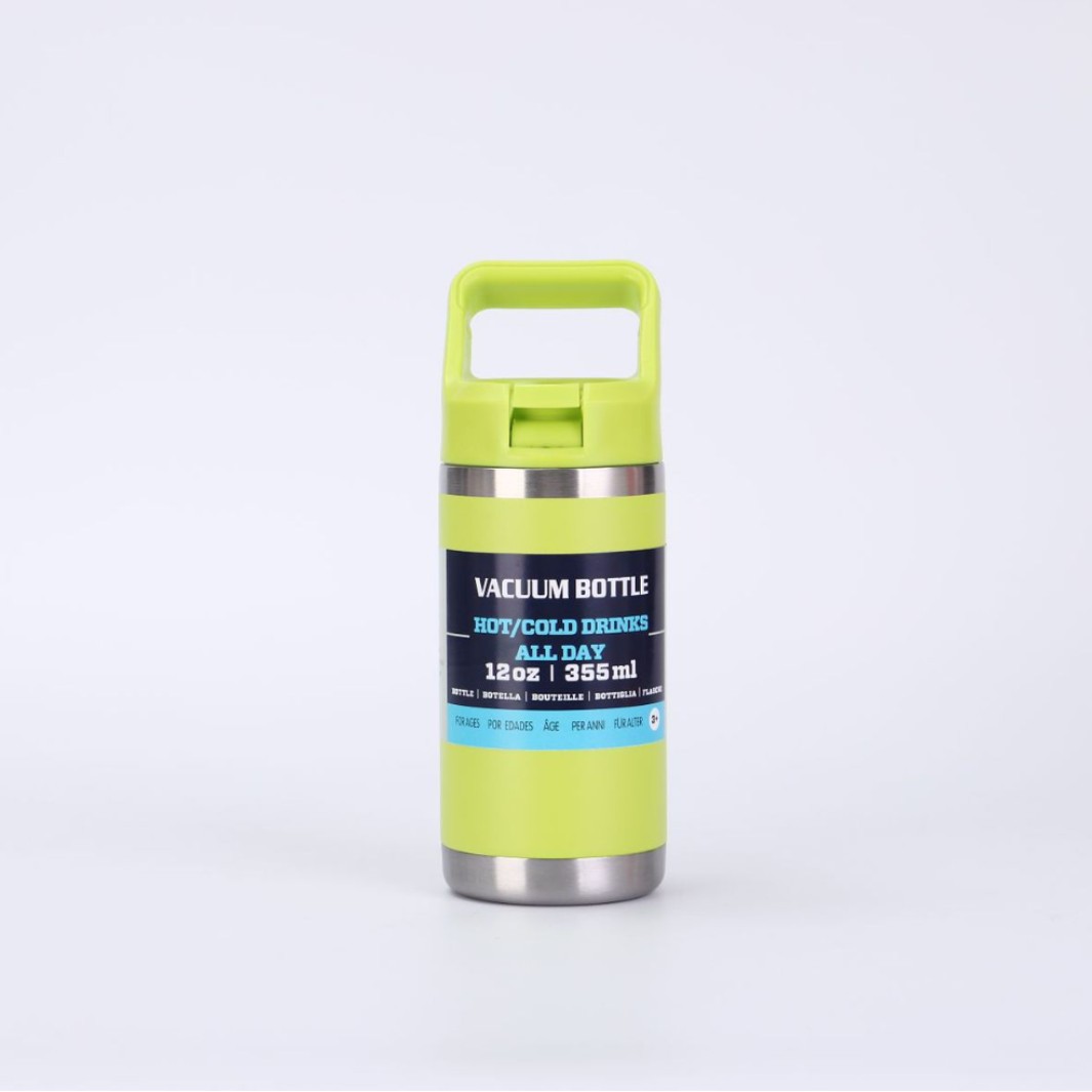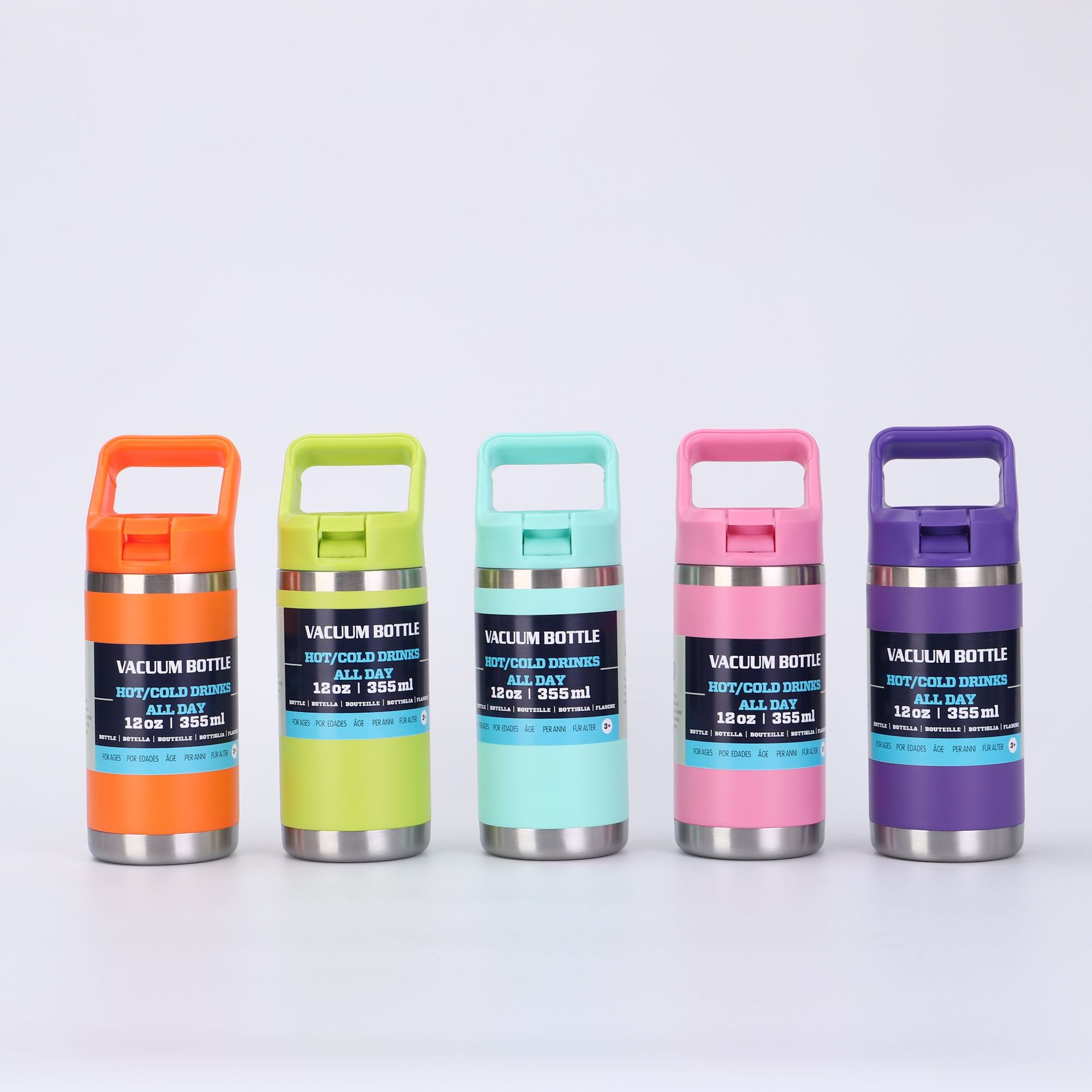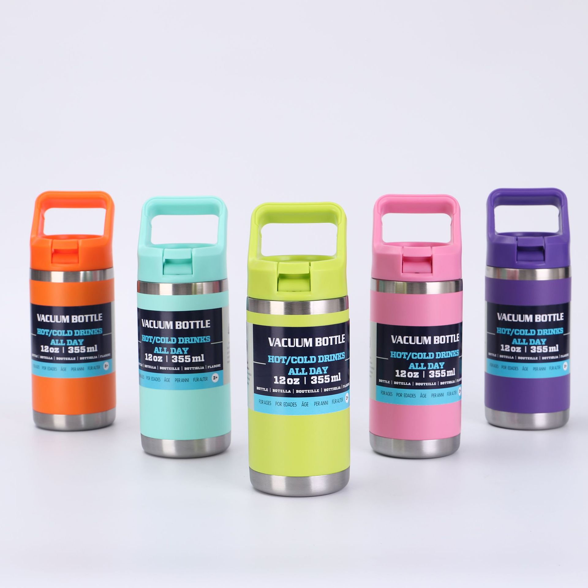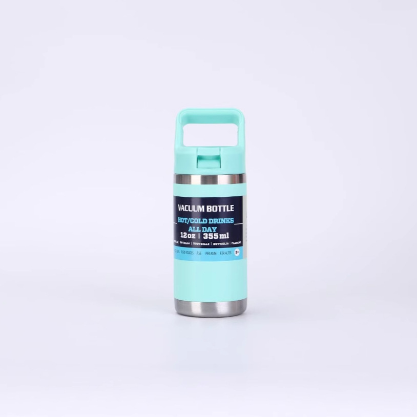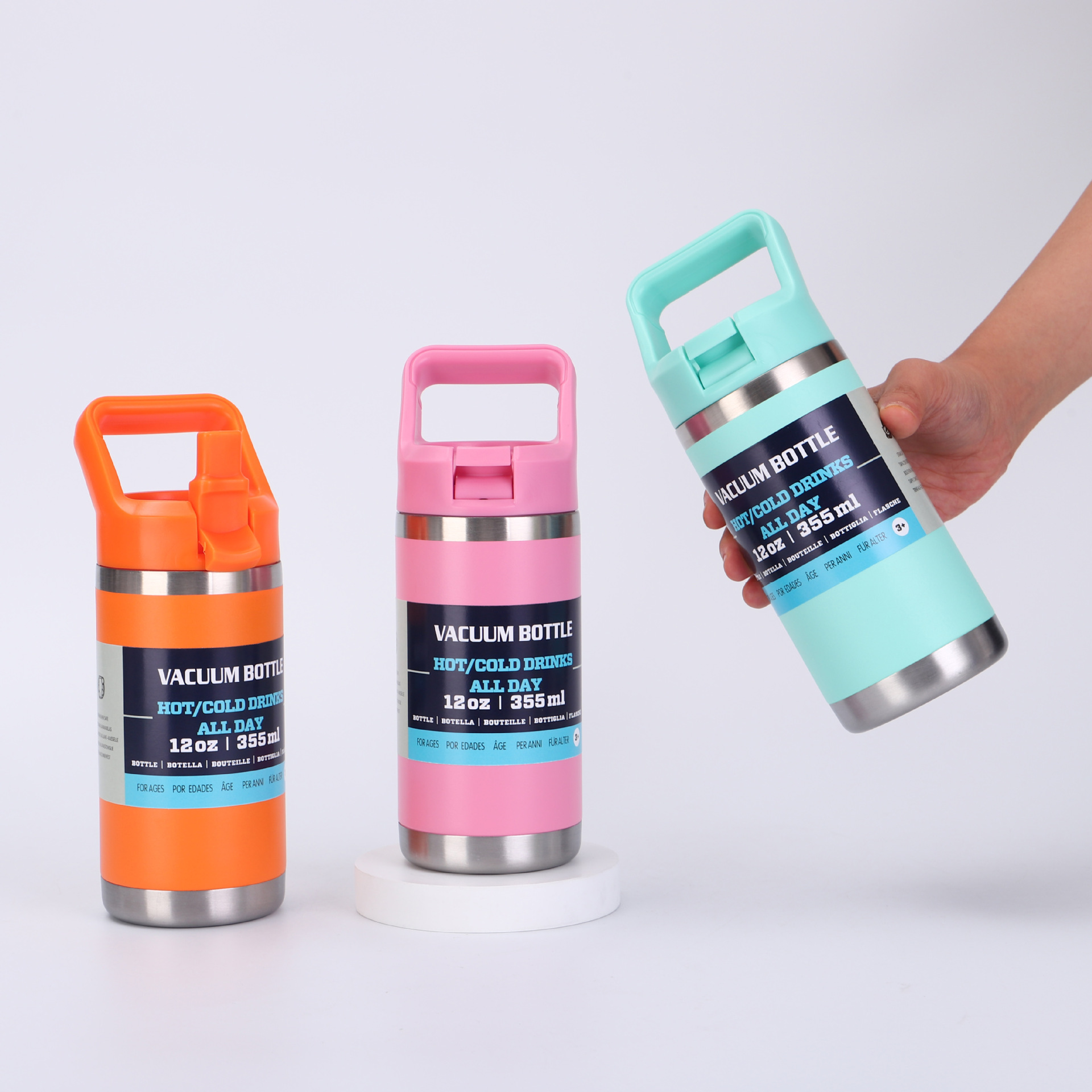 跨境12oz提手保温壶304不锈钢真空双饮户外运动水壶手提盖汽车杯