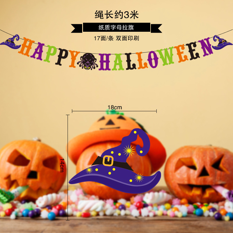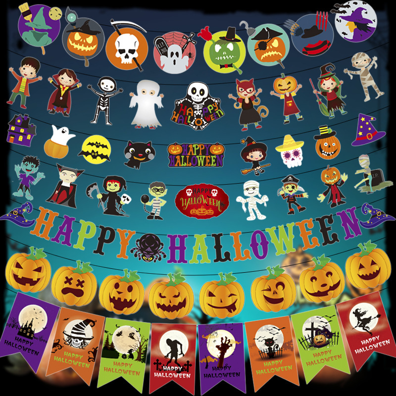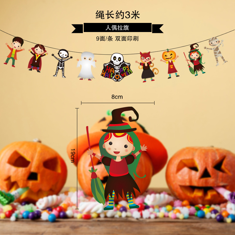 万圣节DIY纸质拉花批发 万圣派对鬼节装饰橱窗门店挂件道具批发