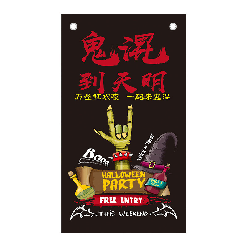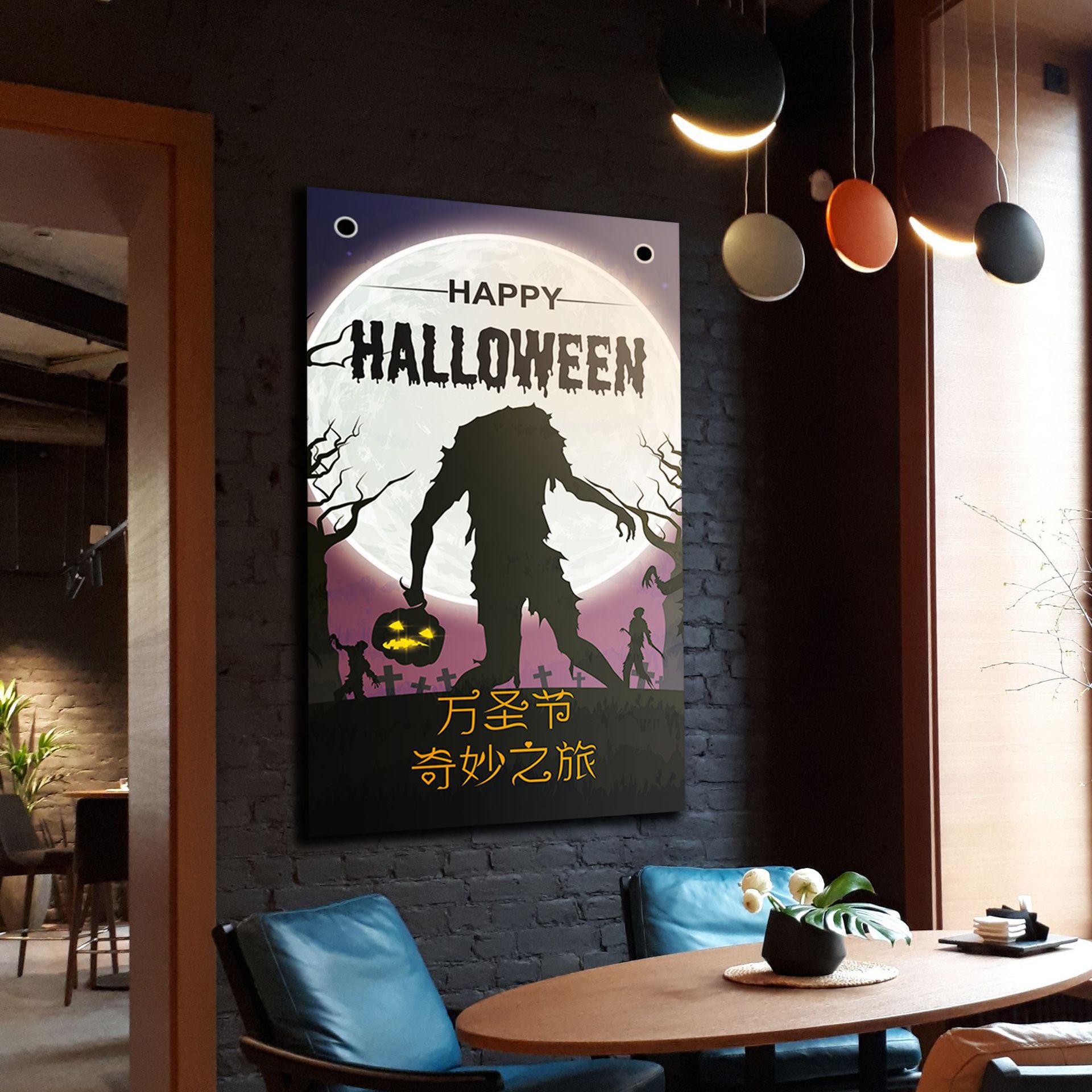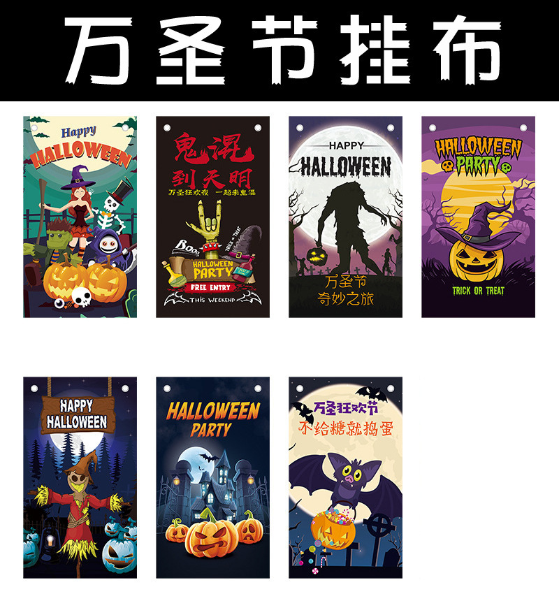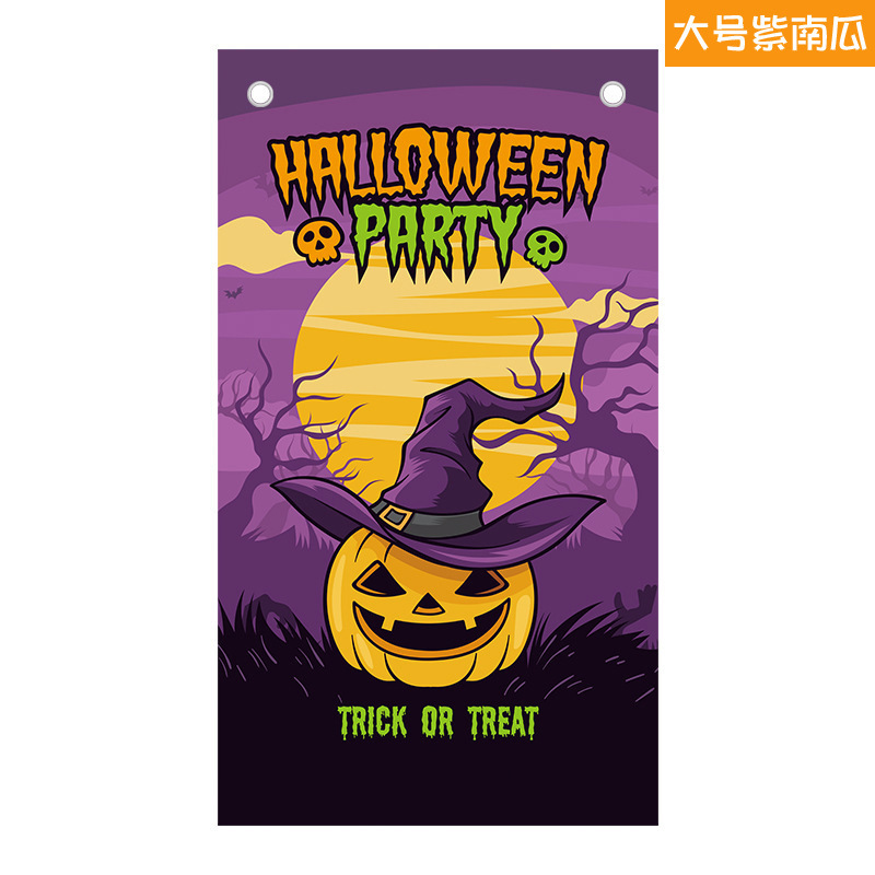 万圣节爆款装饰女巫南瓜电影院海报大挂布橱窗餐厅酒吧氛围装饰