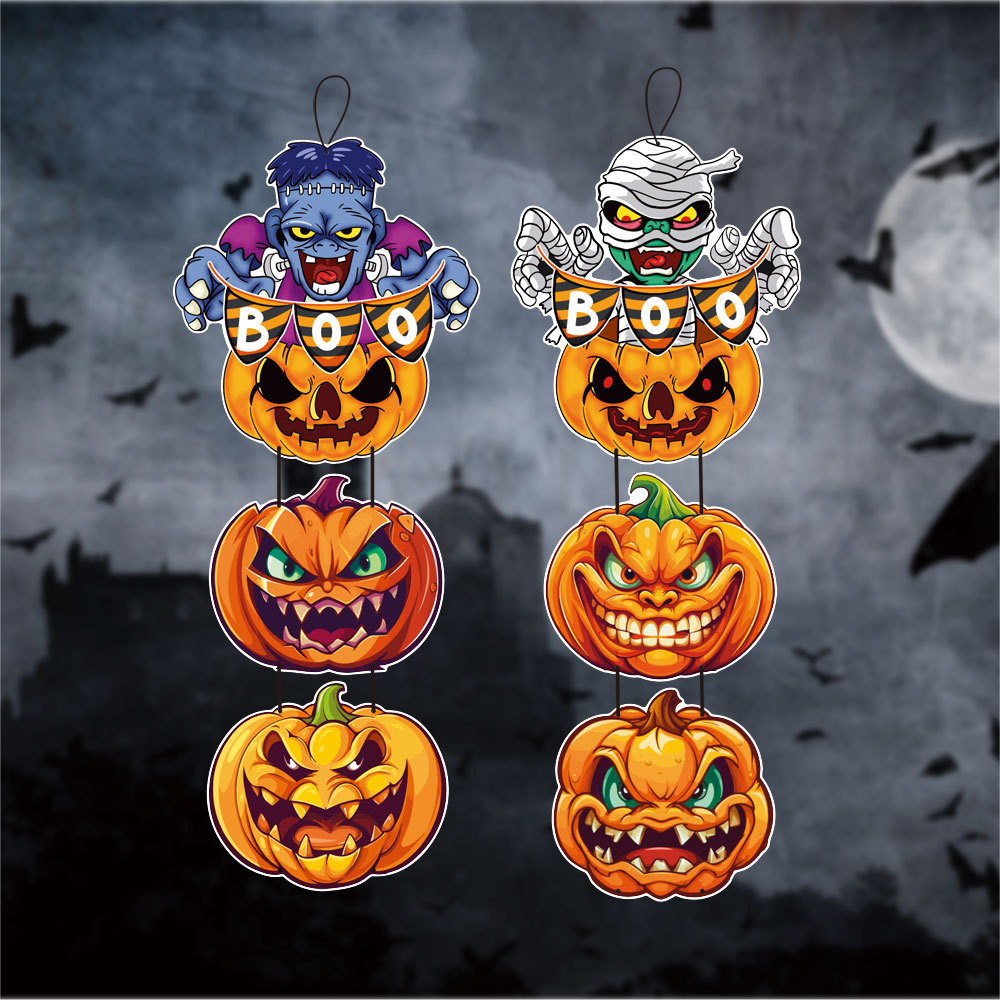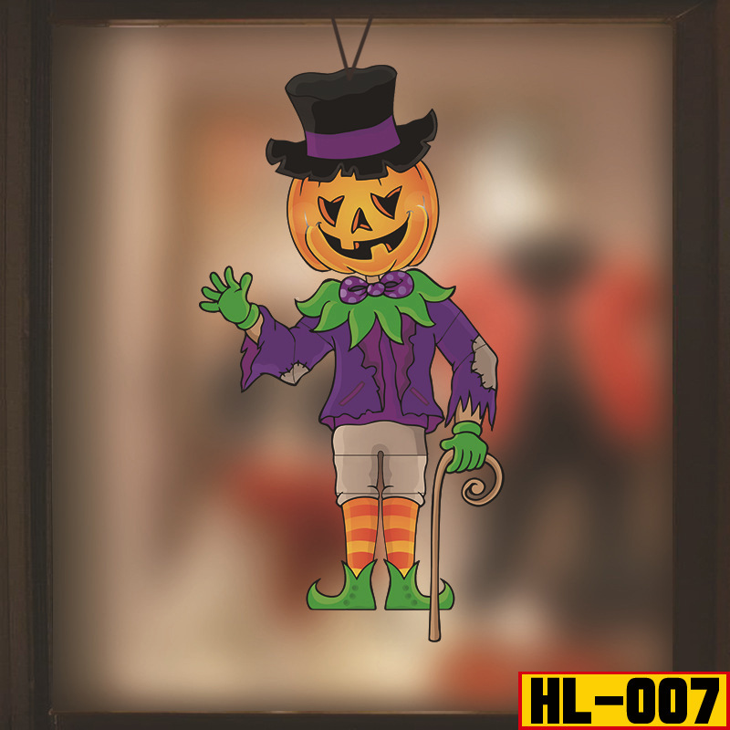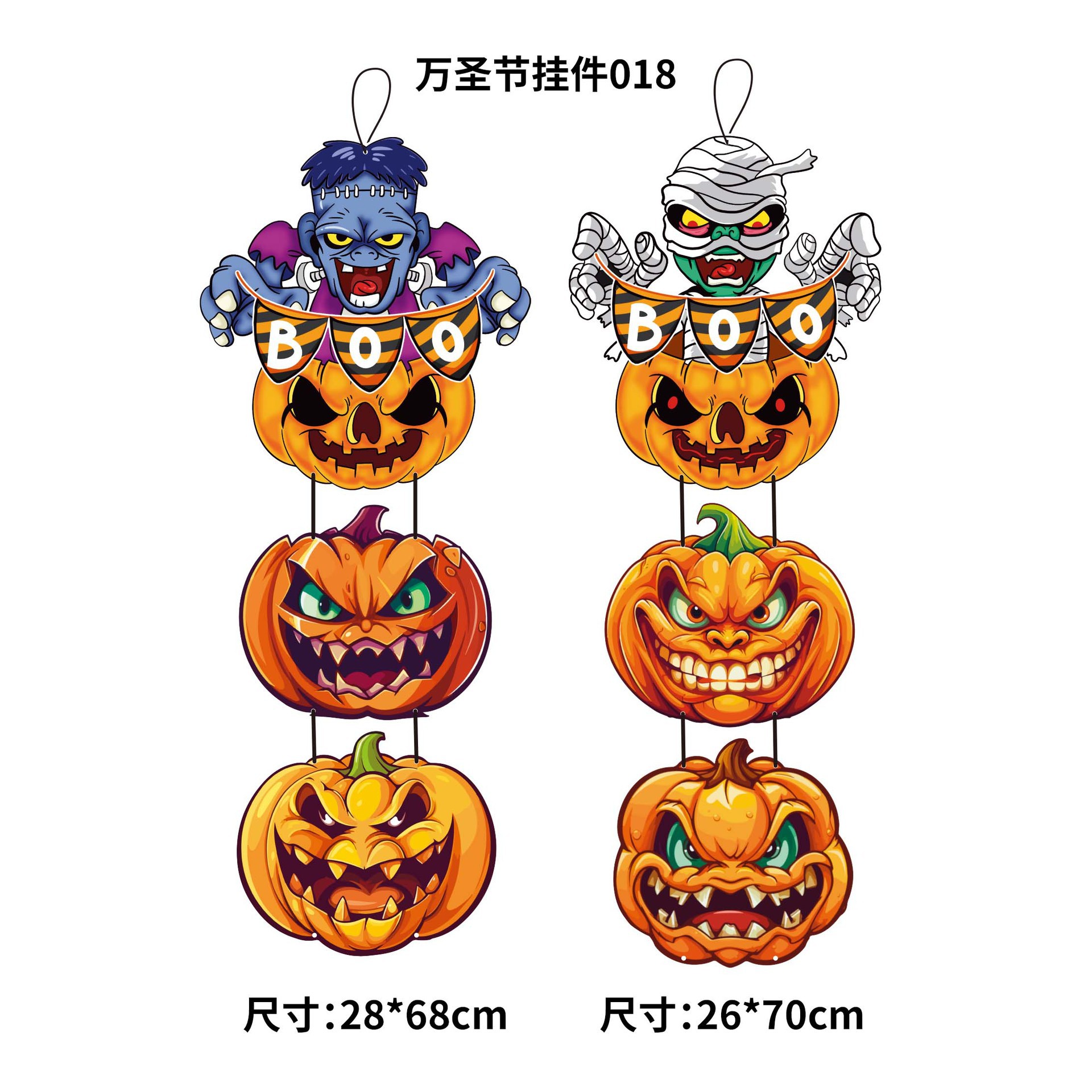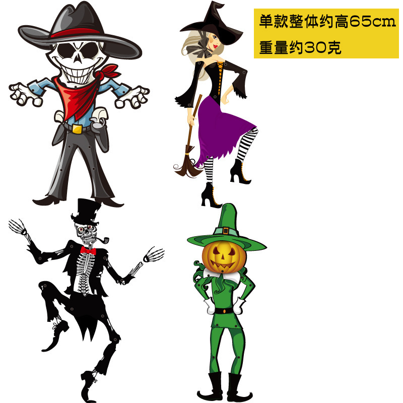 跨境万圣节装饰女巫南瓜人骷髅纸质挂件酒吧商场场景布置道具挂饰