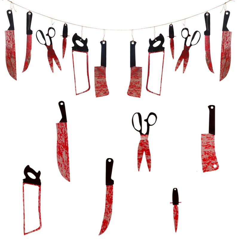 万圣节恐怖装饰恶搞防真12片挂件拉旗酒吧鬼屋血刀串吊饰整蛊道具