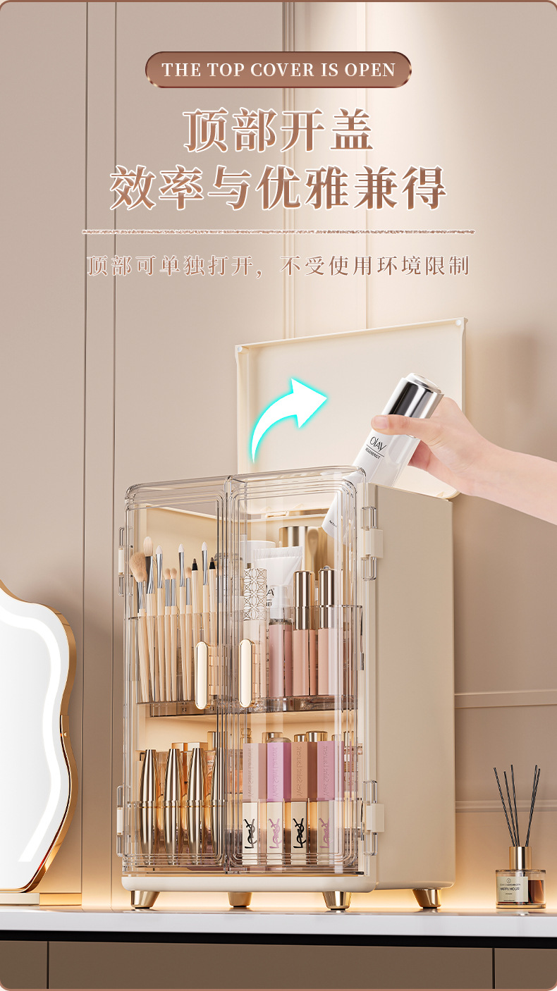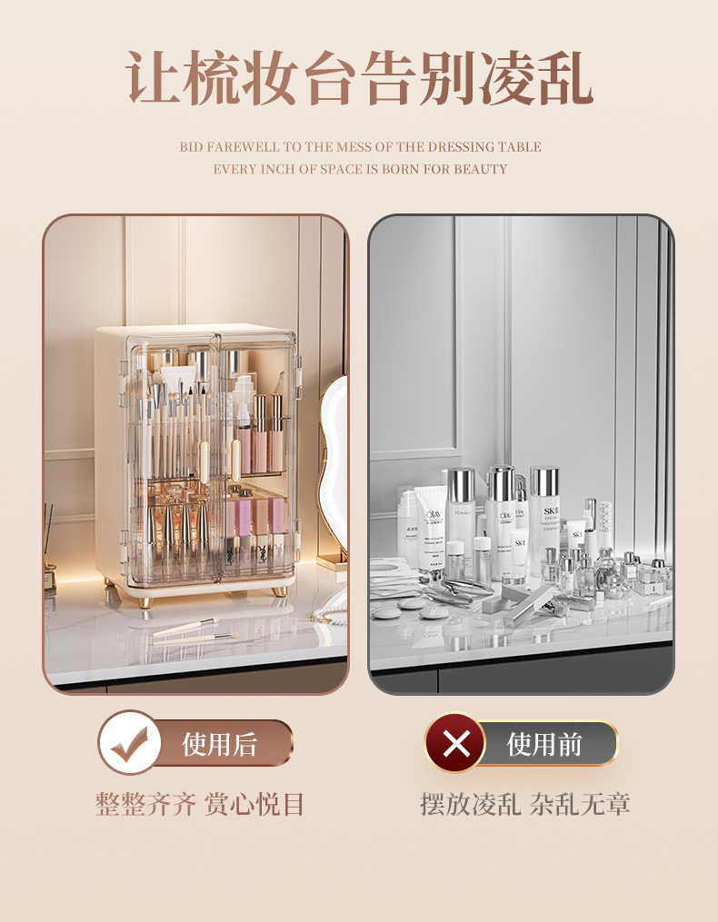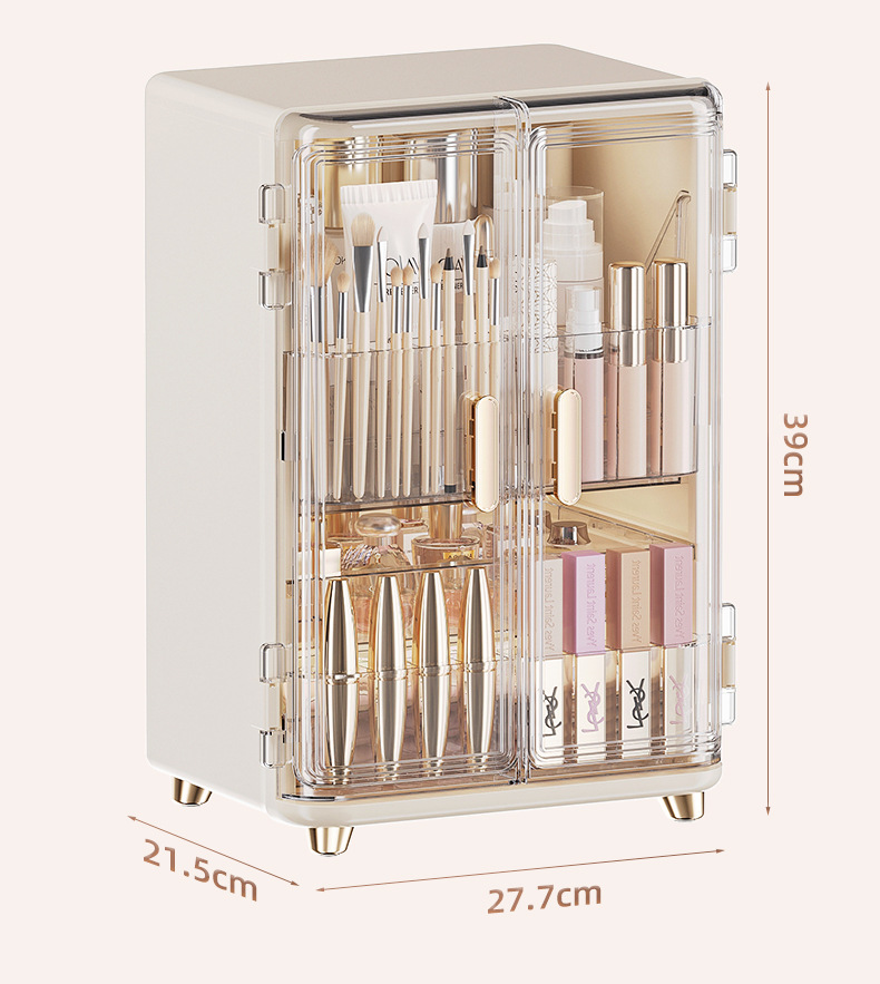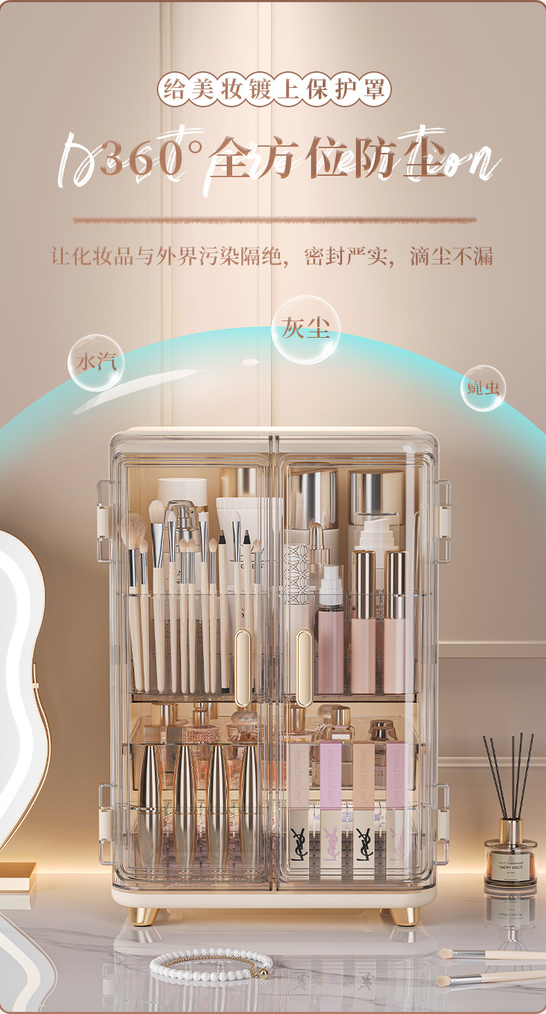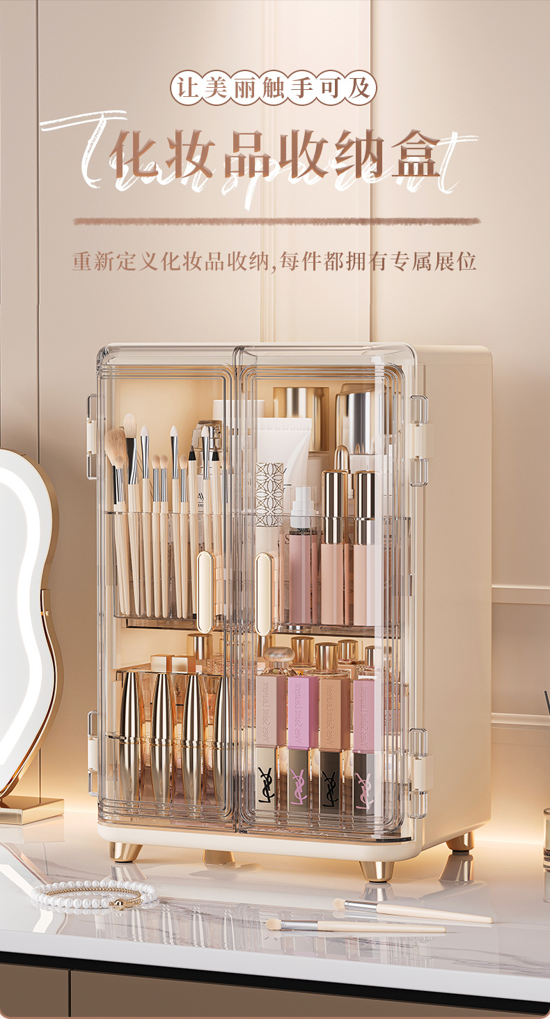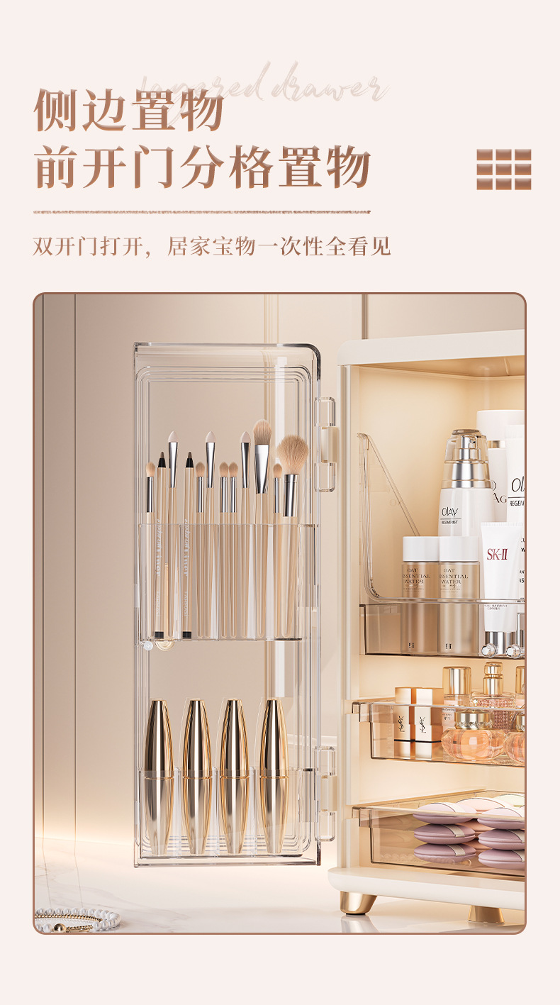 化妆品收纳盒免安装双开门化妆品收纳柜口红面霜精华液收纳置物架