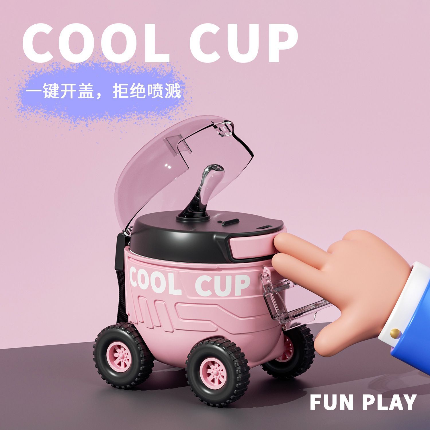 新款网红卡通儿童学生趣味火星车塑料杯户外便携弹跳吸管水杯批发