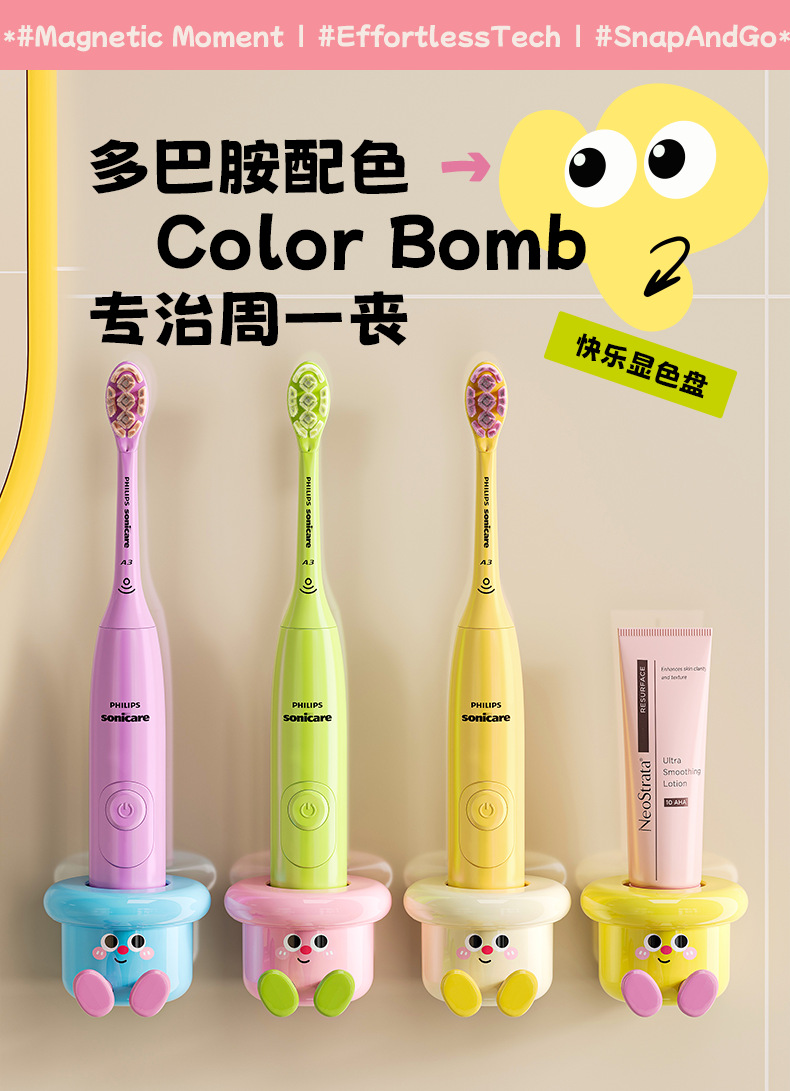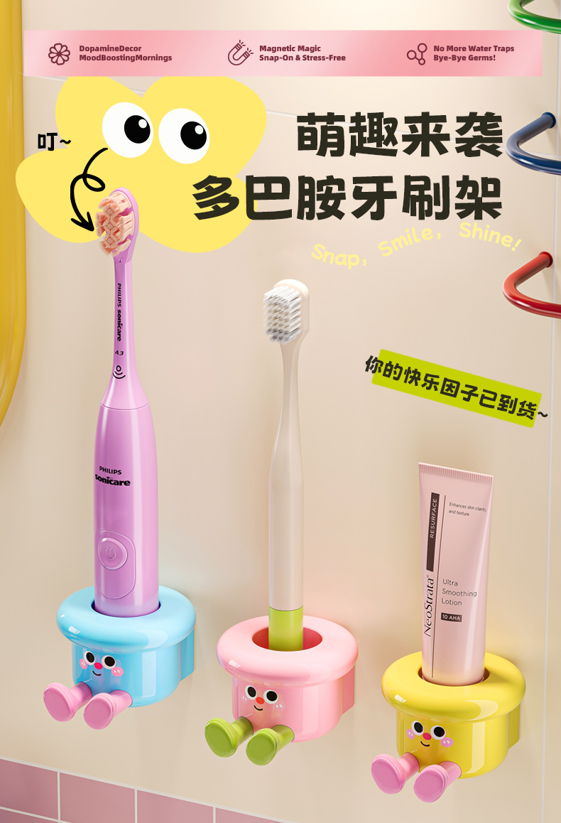 多巴胺牙刷置物架家用免打孔壁挂式卫生间墙上电动牙刷牙膏收纳架