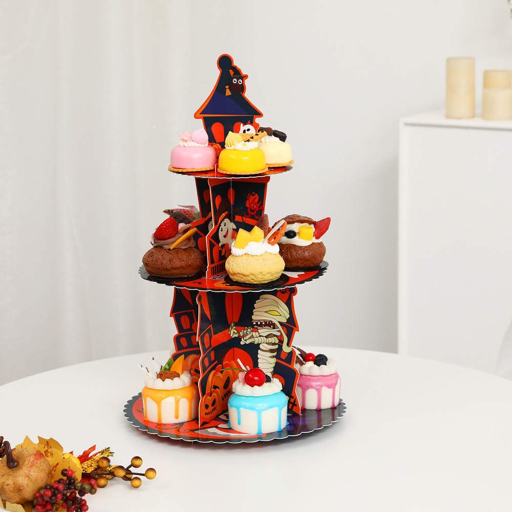 万圣手工折叠拼装蛋糕托架3层小蛋糕蛋糕展示架布置道具