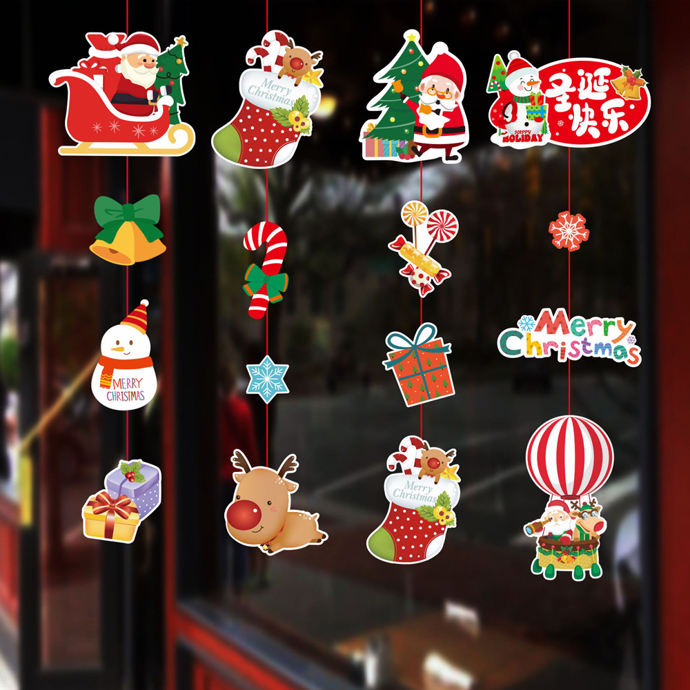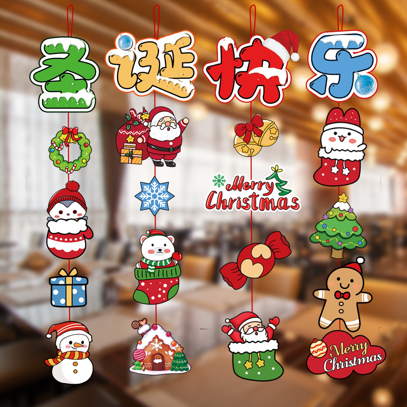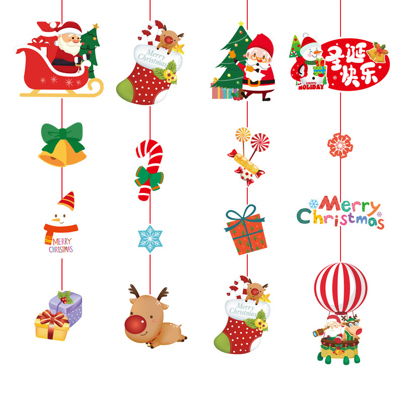 2024圣诞节装饰用品圣诞创意卡通纸质挂件商场场景氛围布置挂饰