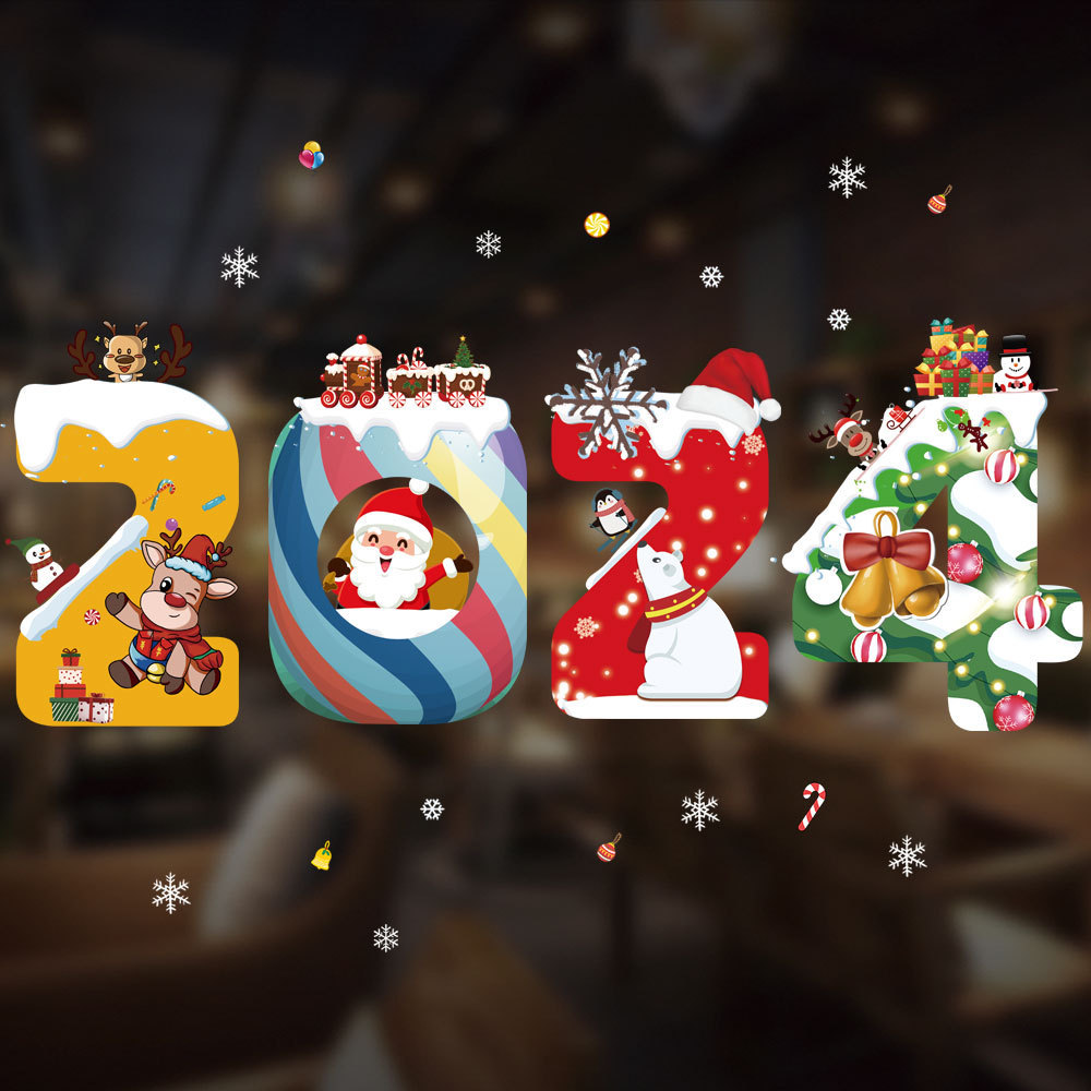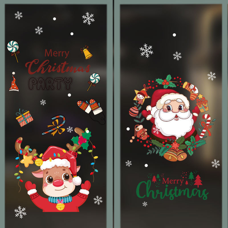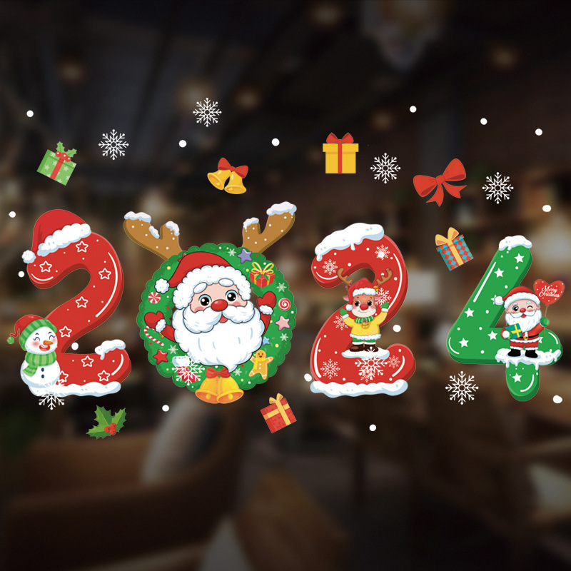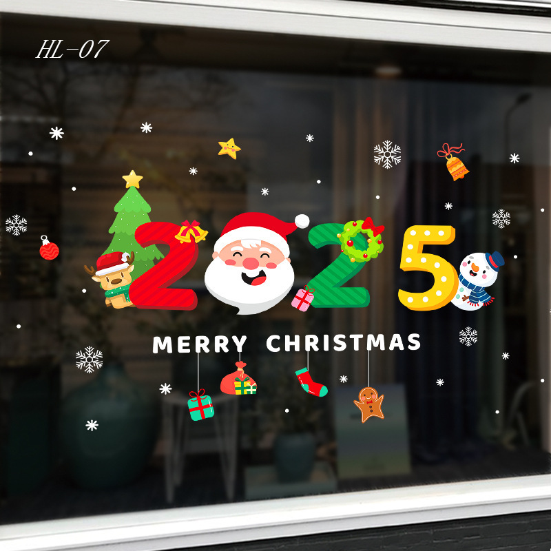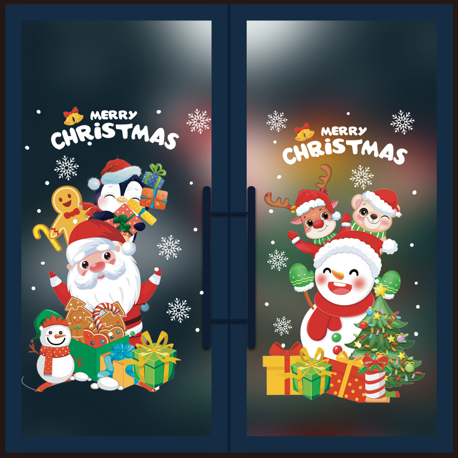 2025年新款圣诞静电贴橱窗玻璃贴圣诞老人雪人圣诞贴纸氛围布置